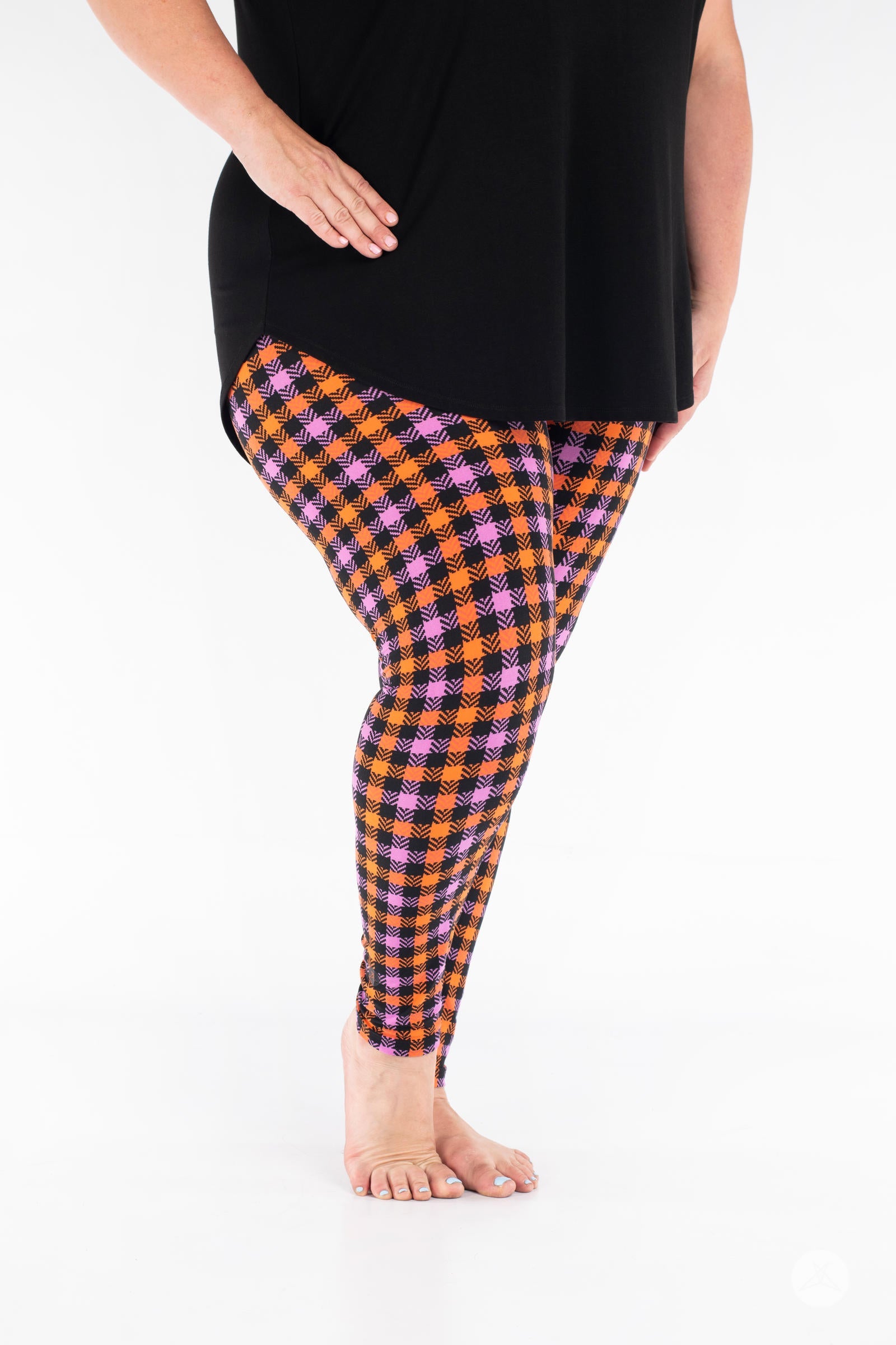 Conservez le glamour de votre sorcière intérieure avec ce motif à carreaux violet, orange et noir.