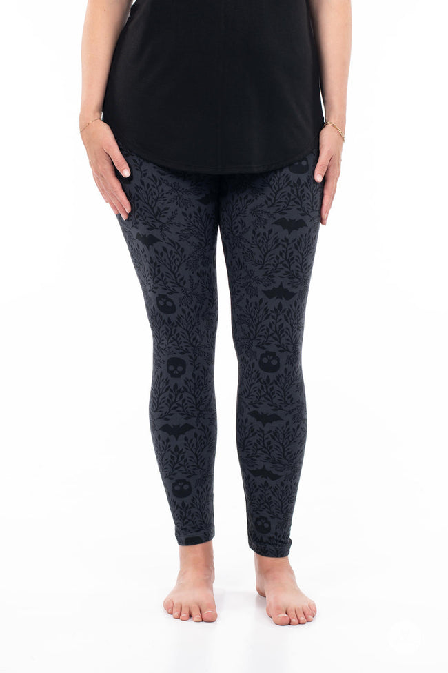 The Gothic Charmers patterned leggings will get you in the spooky spirit. They feature a subtle design of skulls and bats amongst foliage in black. They will pair perfectly with any outfit during the Halloween season.