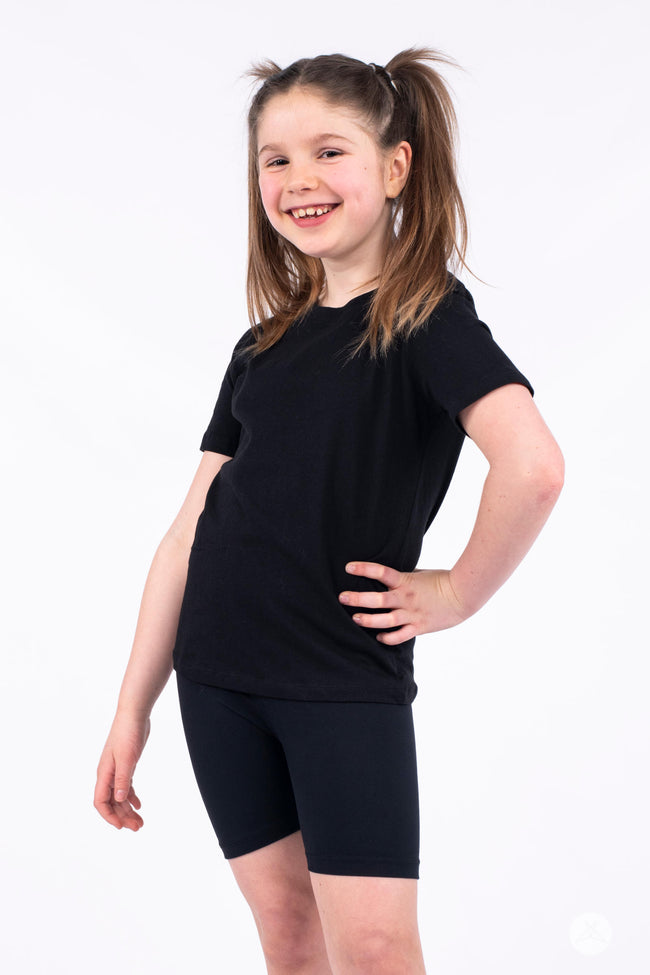Bring comfort to every adventure with Black Kids Biker Shorts from SweetLegs. These soft, buttery biker shorts feature the same signature fit you love, with a shorter inseam that hits above the knee - perfect for active play, warm weather days, or layering under dresses and tees. Made from stretchy, breathable fabric, they move with kids through every jump, run, and spin.