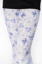 Darling Blue is a beautiful multi-tonal blue floral pattern on a dove grey background.