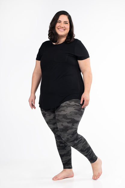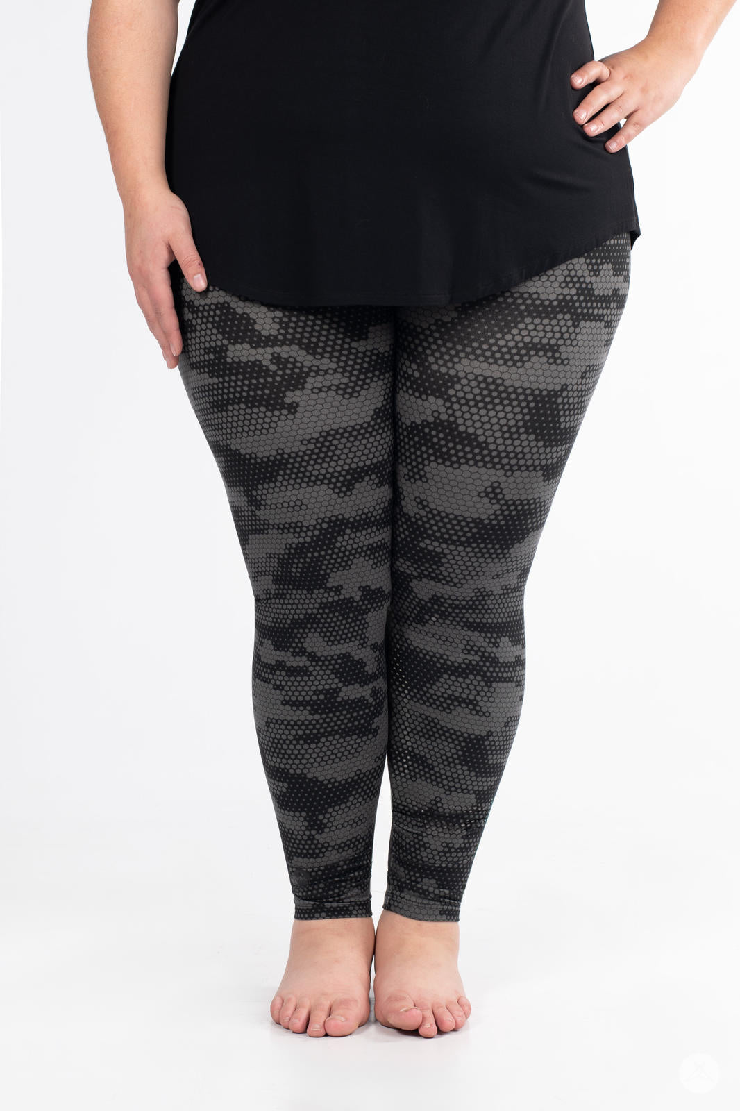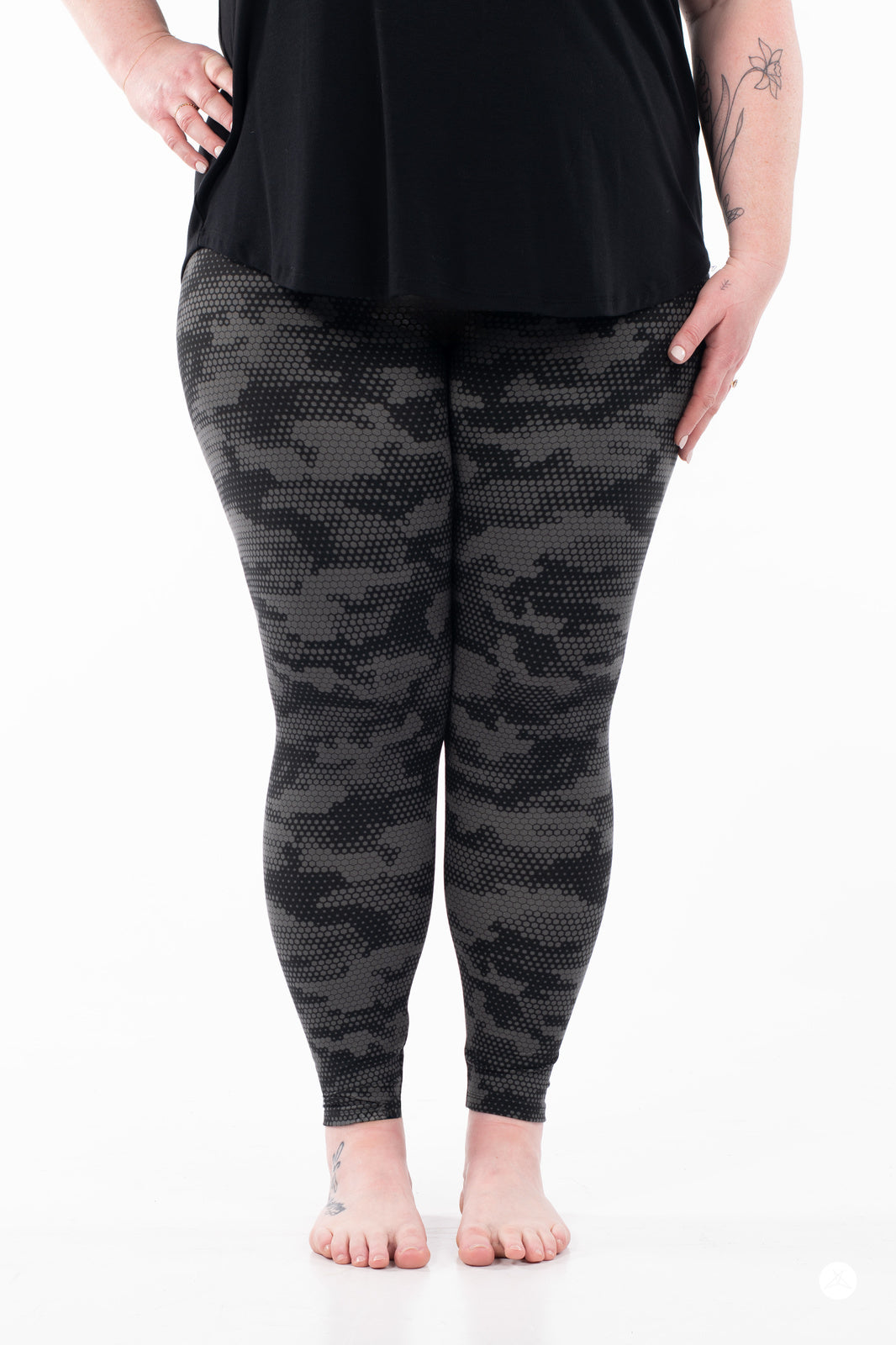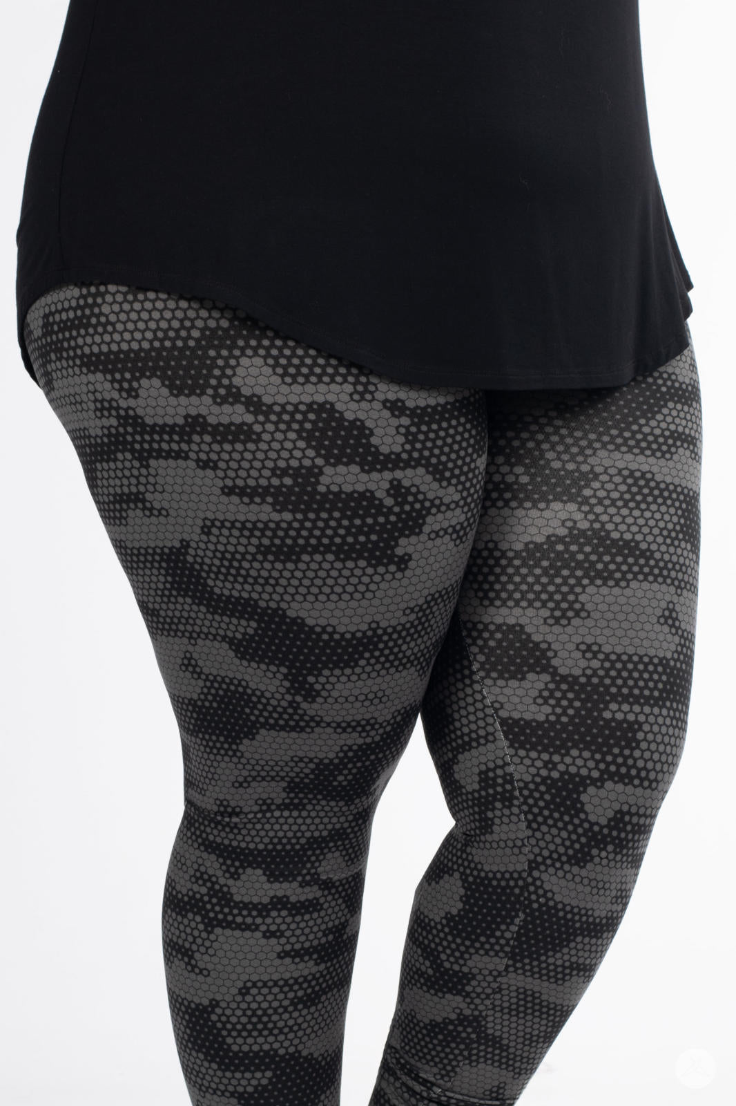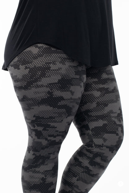 Meet the Hive Mind leggings – a style everyone will be buzzing about! Featuring a sleek honeycomb-inspired pattern in sophisticated black and grey, these leggings have a chic modern look that fit perfectly into your everyday wardrobe.