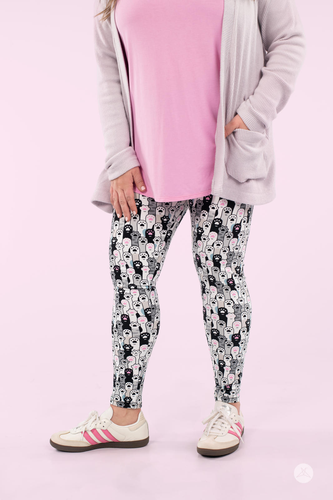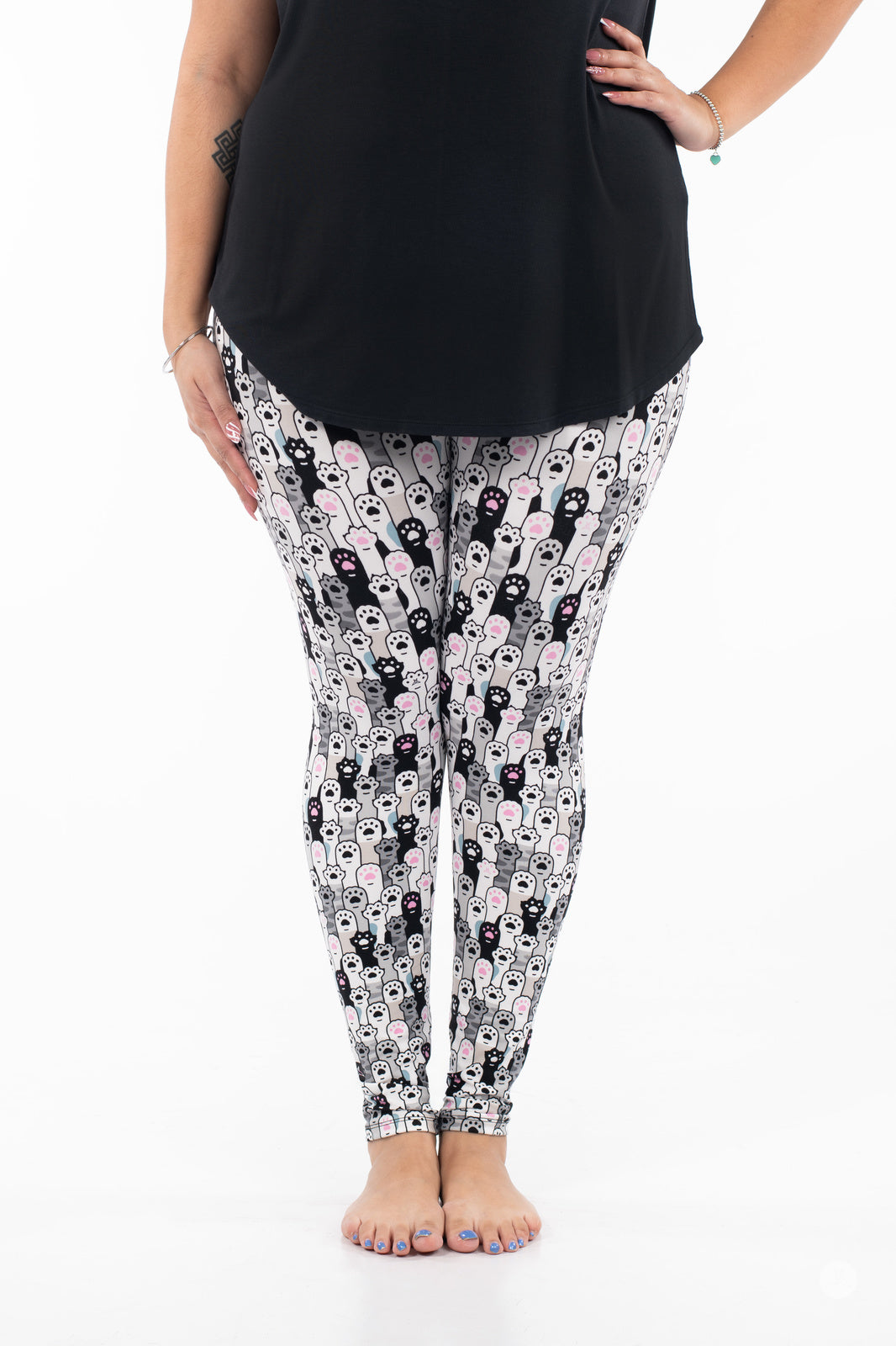 Cat lovers, this one’s for you! Raise your hands or (paws) if you’re obsessed with all things feline! The Paw-some Parade leggings are a playful tribute to your love of cats, featuring an all-over cat paw print that’s as cute as a kitten.
