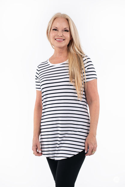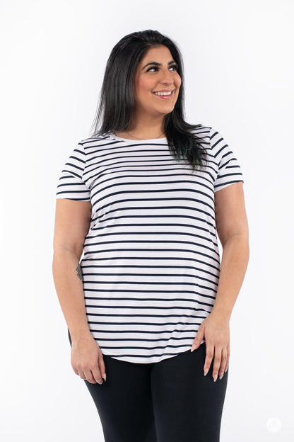 Basics never get old and neither does a classic striped tee like this one. With a timeless design, it is a go-to layer of comfort that makes you feel instantly polished. Pairs easily with your favourite sweaters, cardigans, and of course, SweetLegs.