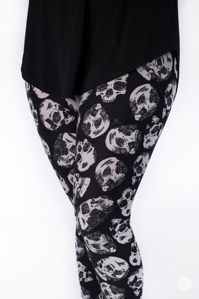 We love rocking out in these skull print black cropped leggings and pairing them with a SweetTops Classic Tee in White.