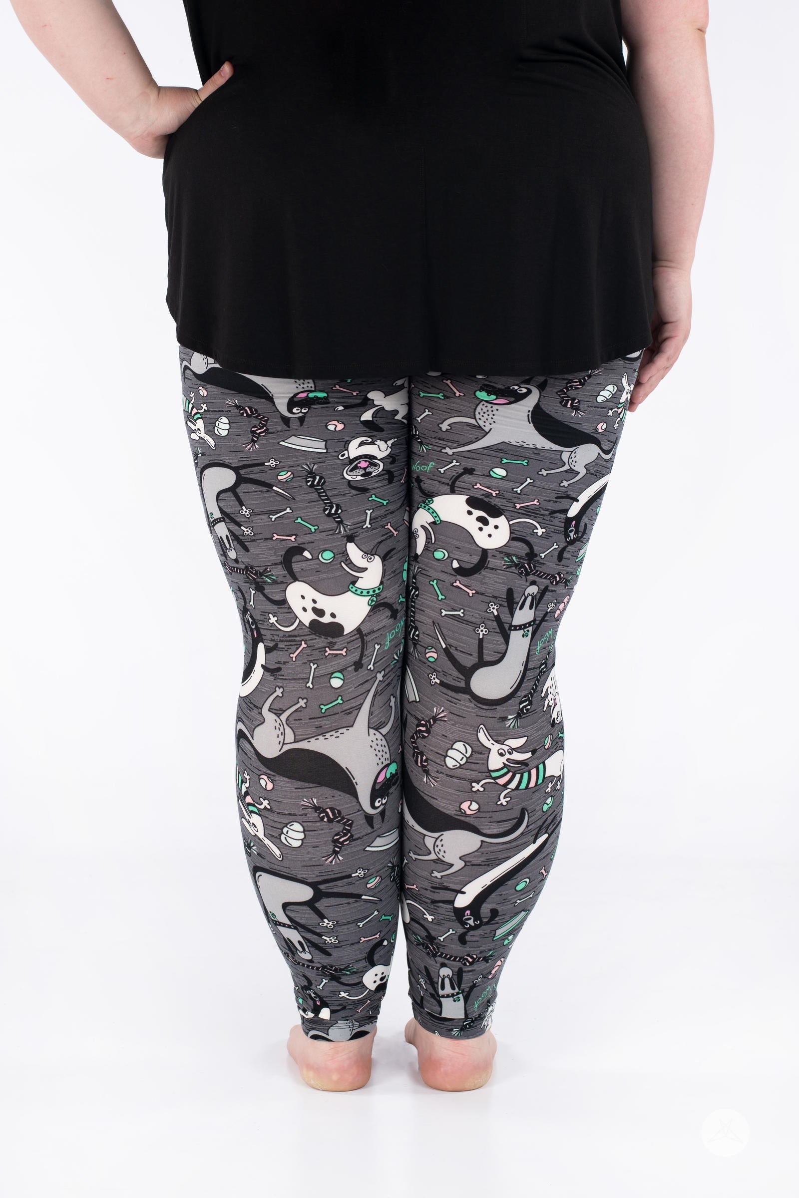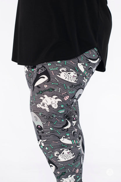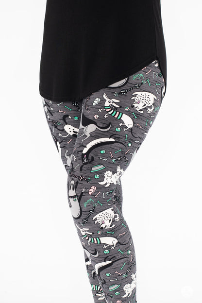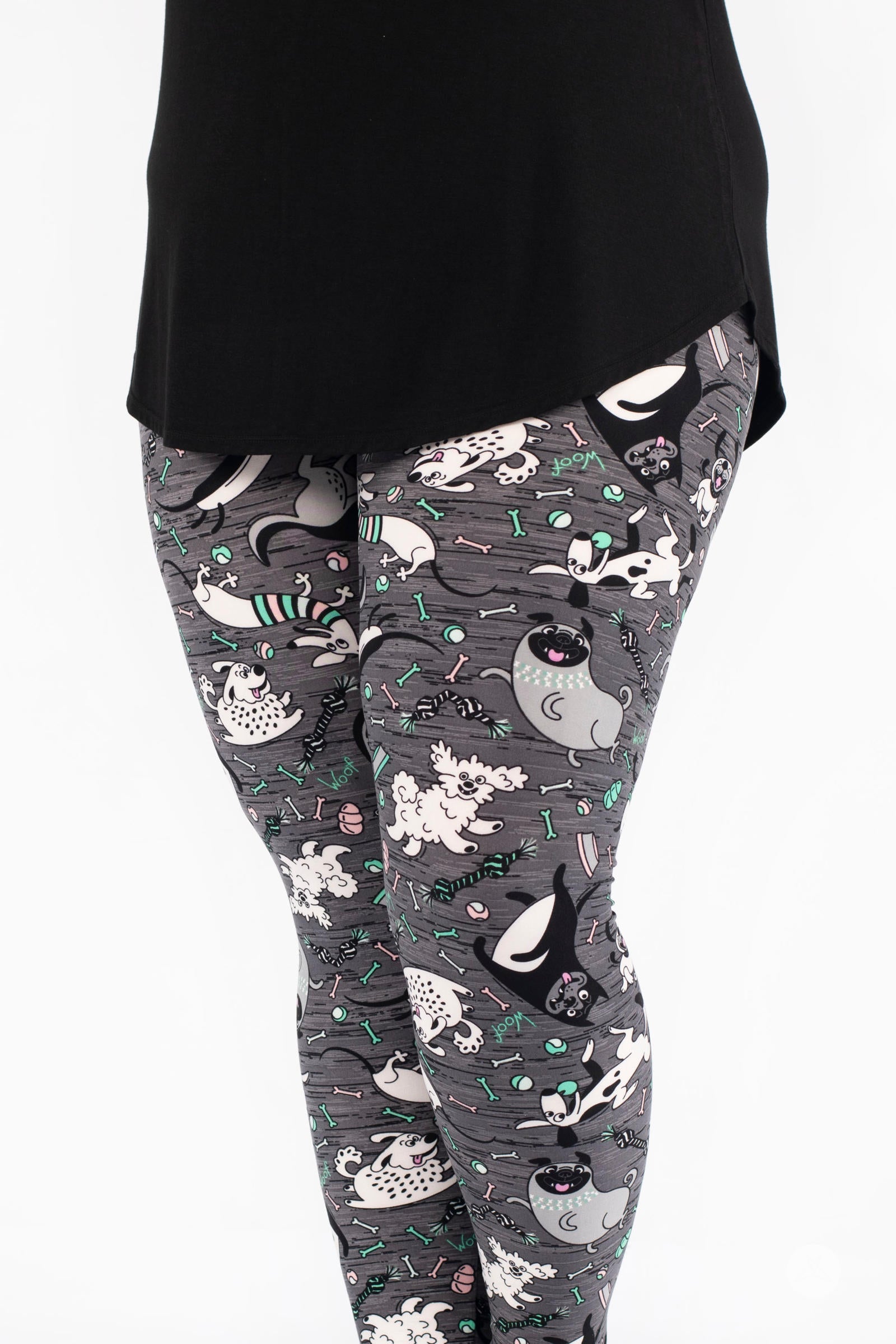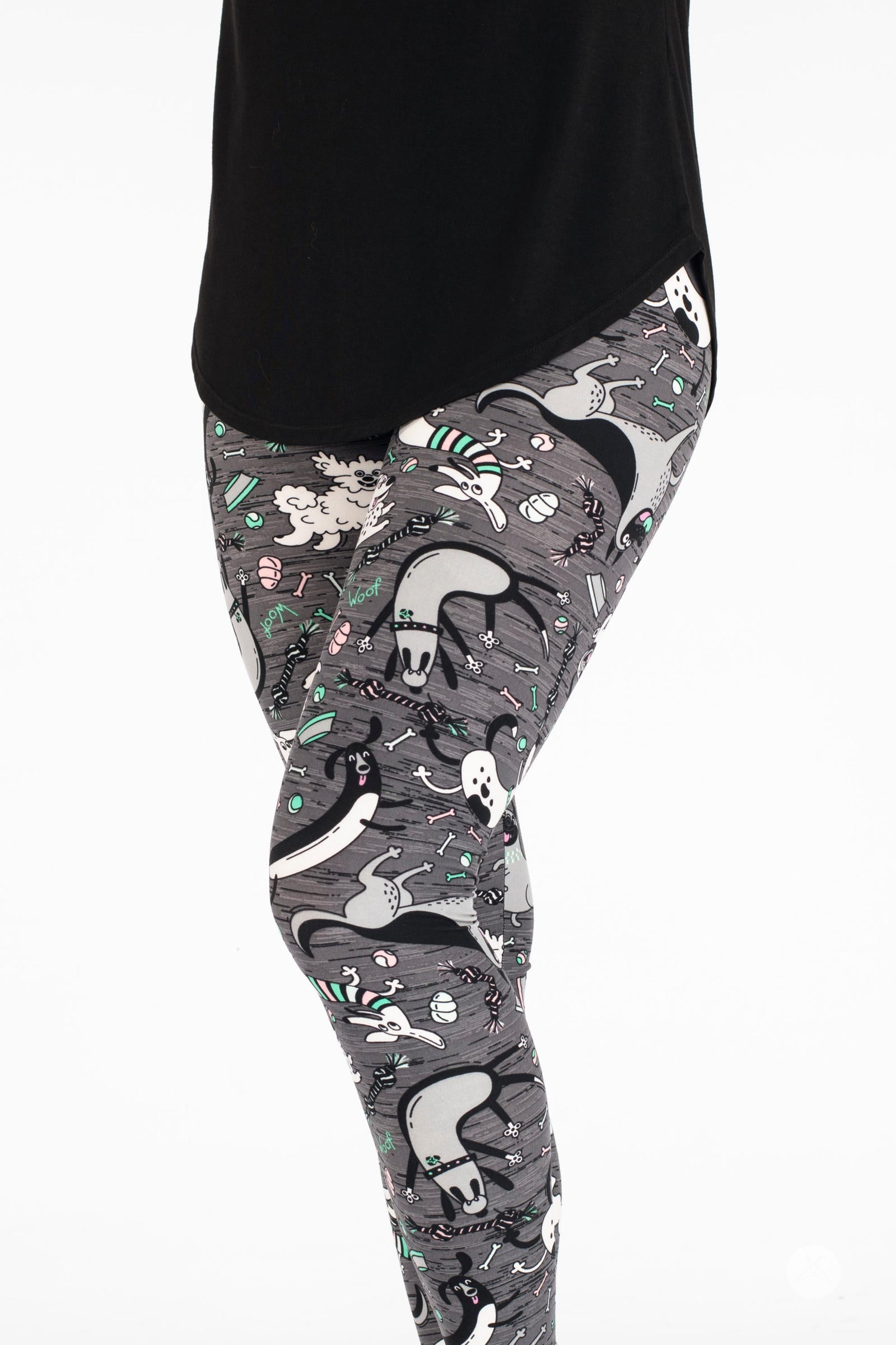 Friends Furever is a prominently grey print with hints of teal, pink and black. It features a darling display of dogs prancing across a graphite variegated background. It’s fun and playful and perfect for the dog-lover in your life.