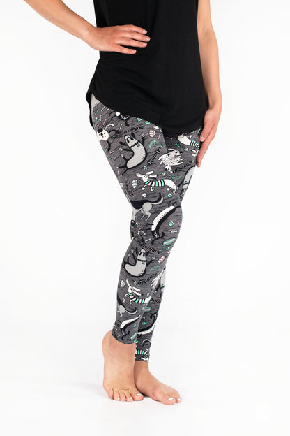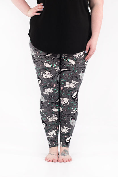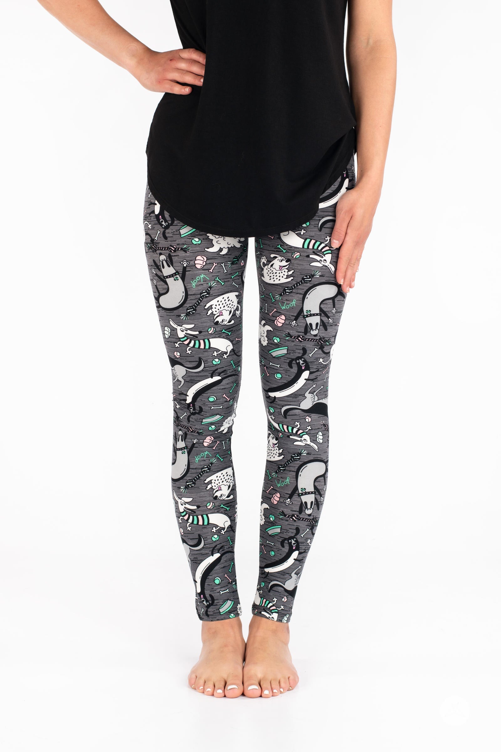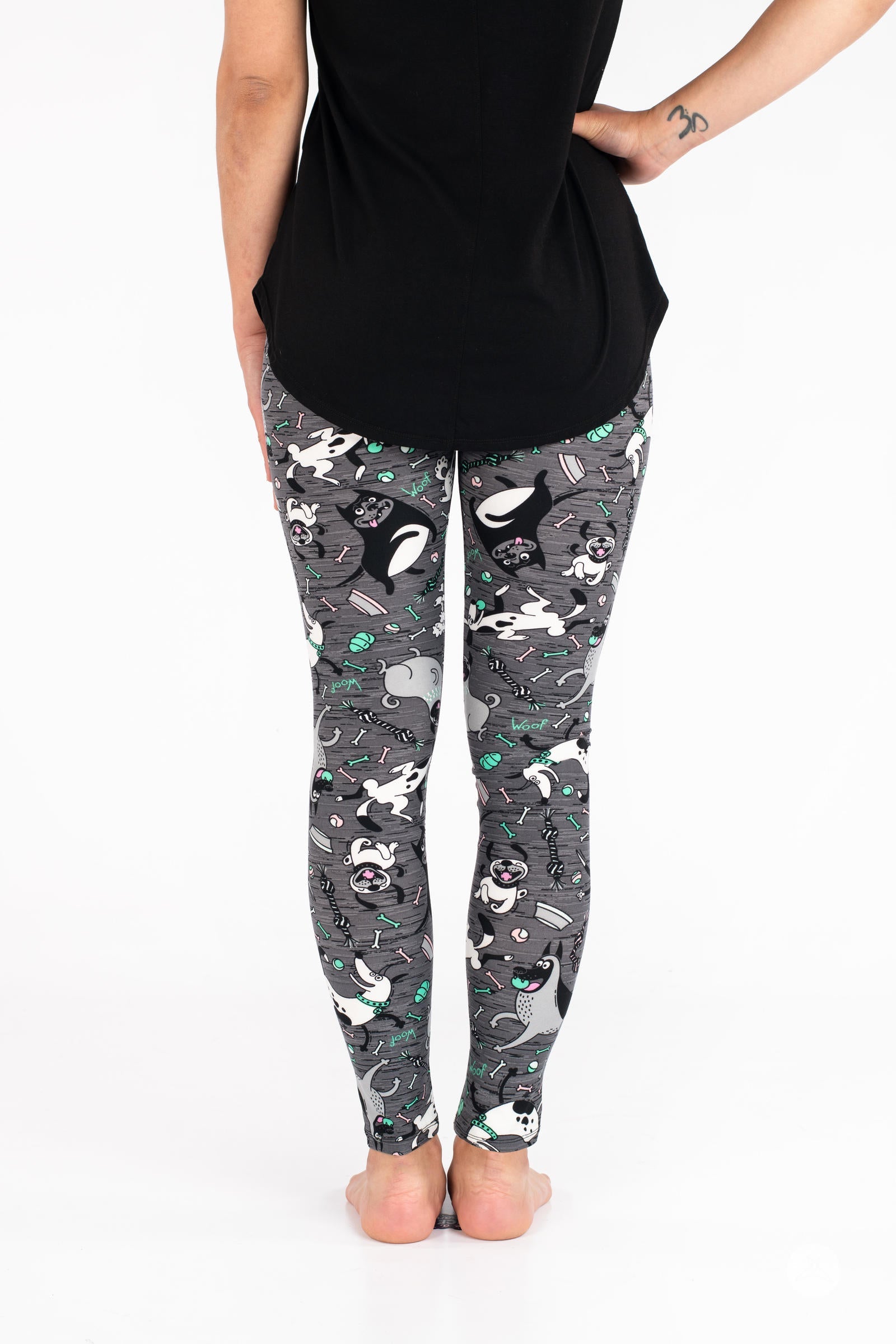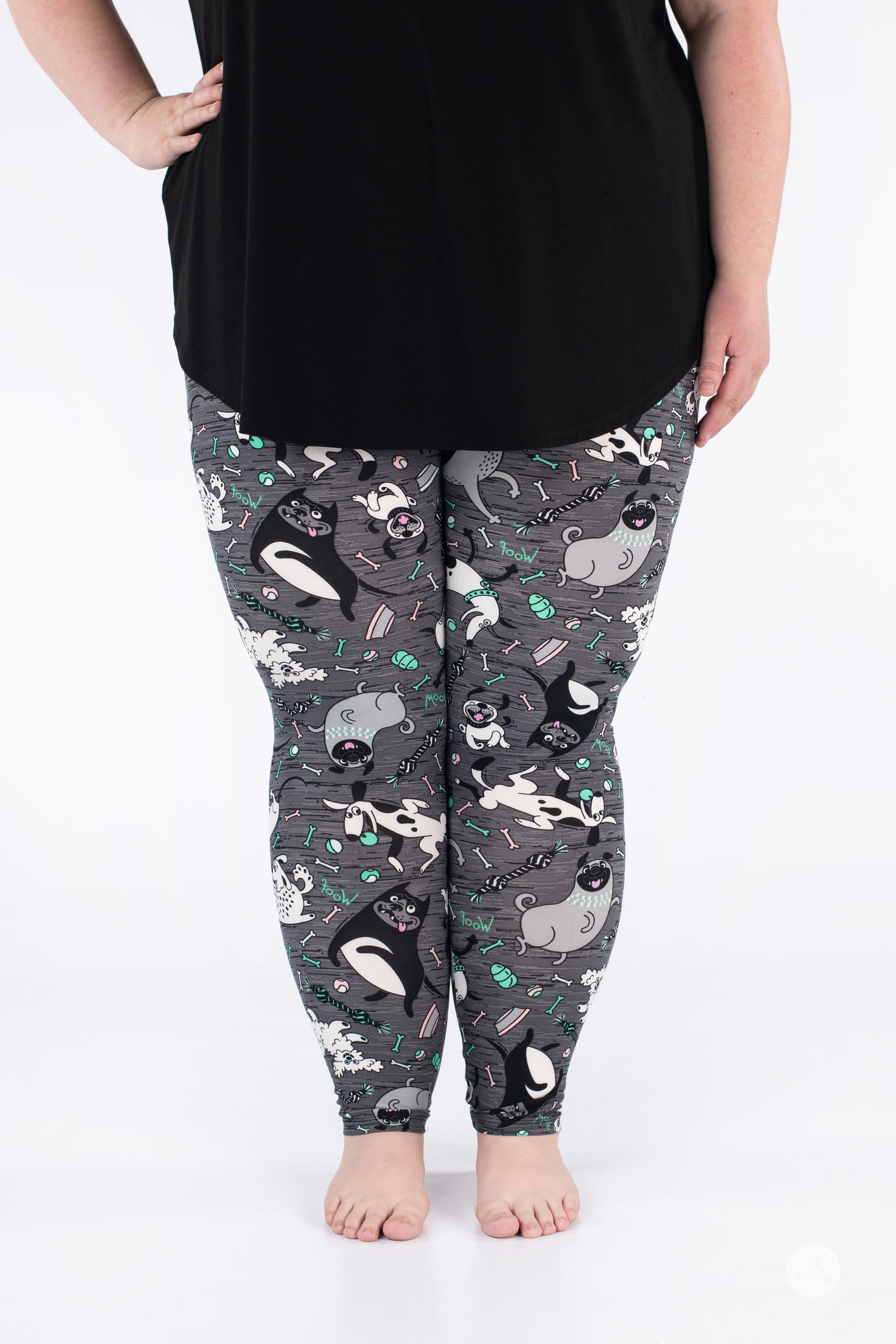 Friends Furever is a prominently grey print with hints of teal, pink and black. It features a darling display of dogs prancing across a graphite variegated background. It’s fun and playful and perfect for the dog-lover in your life.
