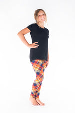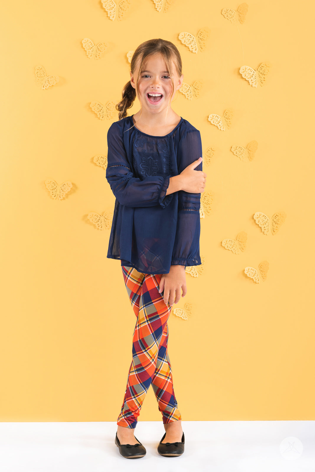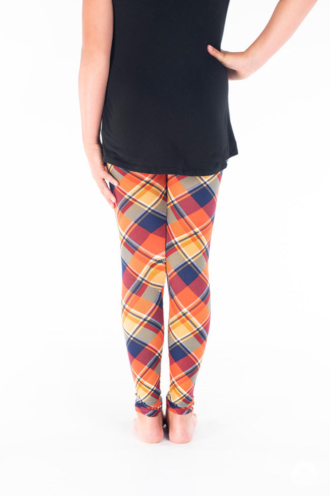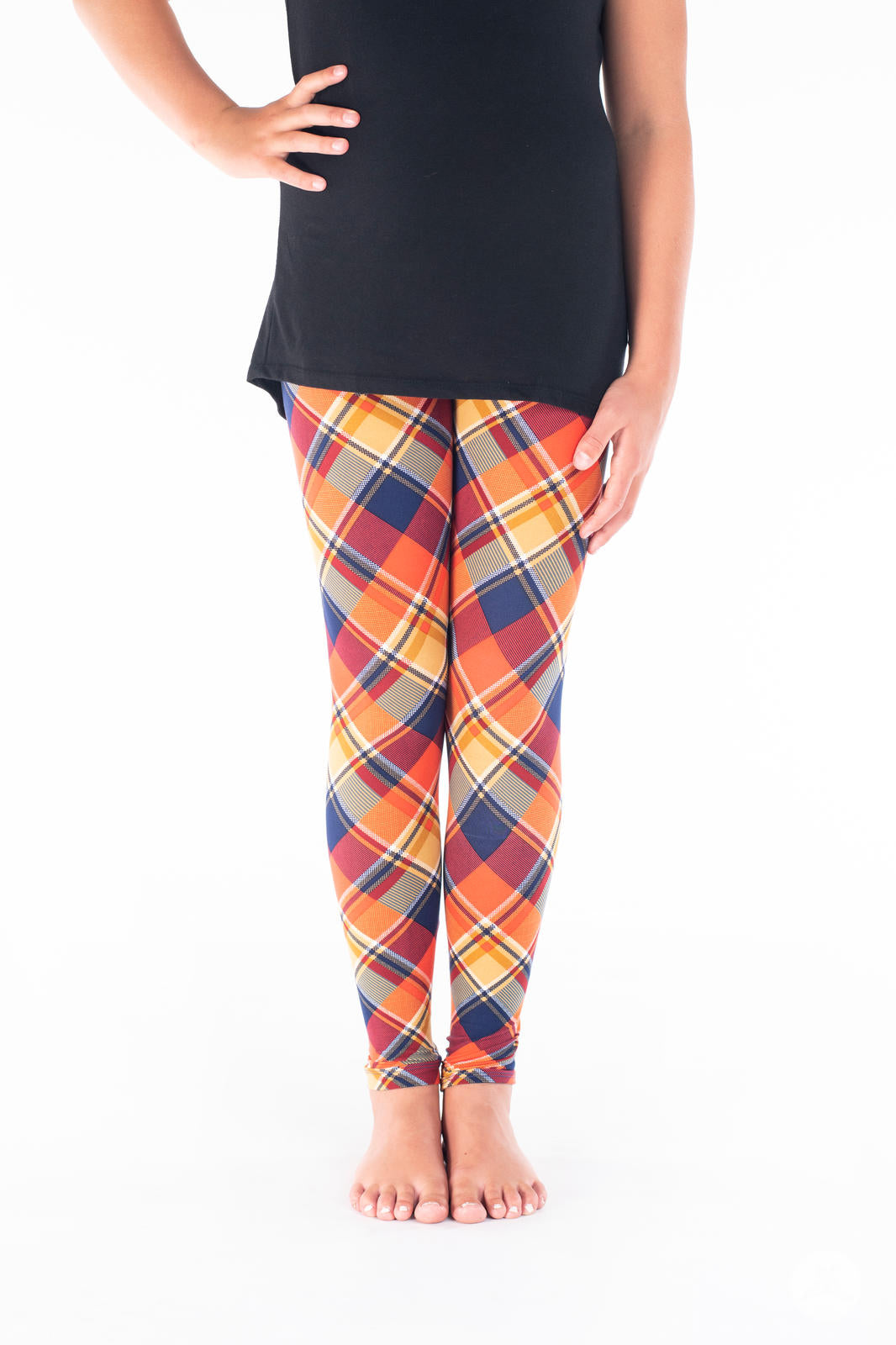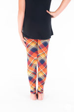 This gorgeous plaid screams fall with orange, navy, yellow, mustard, and burgundy tones overlaid in a criss-cross pattern that pairs perfectly with jewel tones and gold accessories.