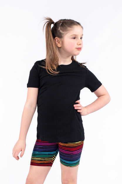 Bring fun and comfort to every adventure with Colurful Connection Biker Shorts from SweetLegs. These soft, buttery biker shorts feature the same signature fit you love, with a shorter inseam that hits above the knee - perfect for active play, warm weather days, or layering under dresses and tees. Made from stretchy, breathable fabric, they move with kids through every jump, run, and spin.