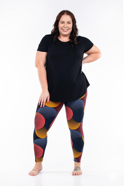 Sonic Swirls est conçu avec des cercles concentriques et une palette de couleurs vibrantes, créant une sensation captivante de mouvement et de profondeur. Portez ce motif moderne et presque psychédélique comme une expression audacieuse et ludique de votre individualité !