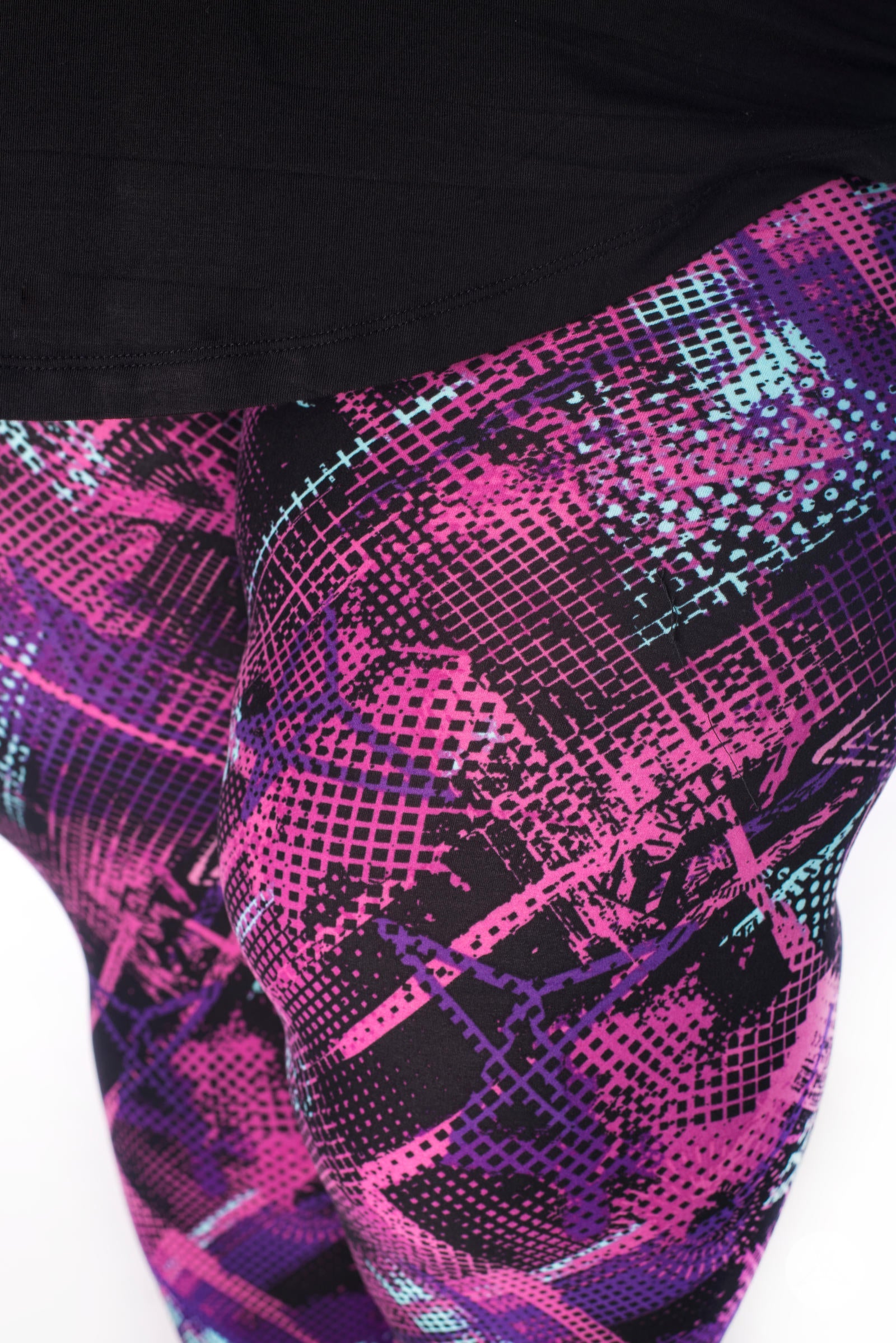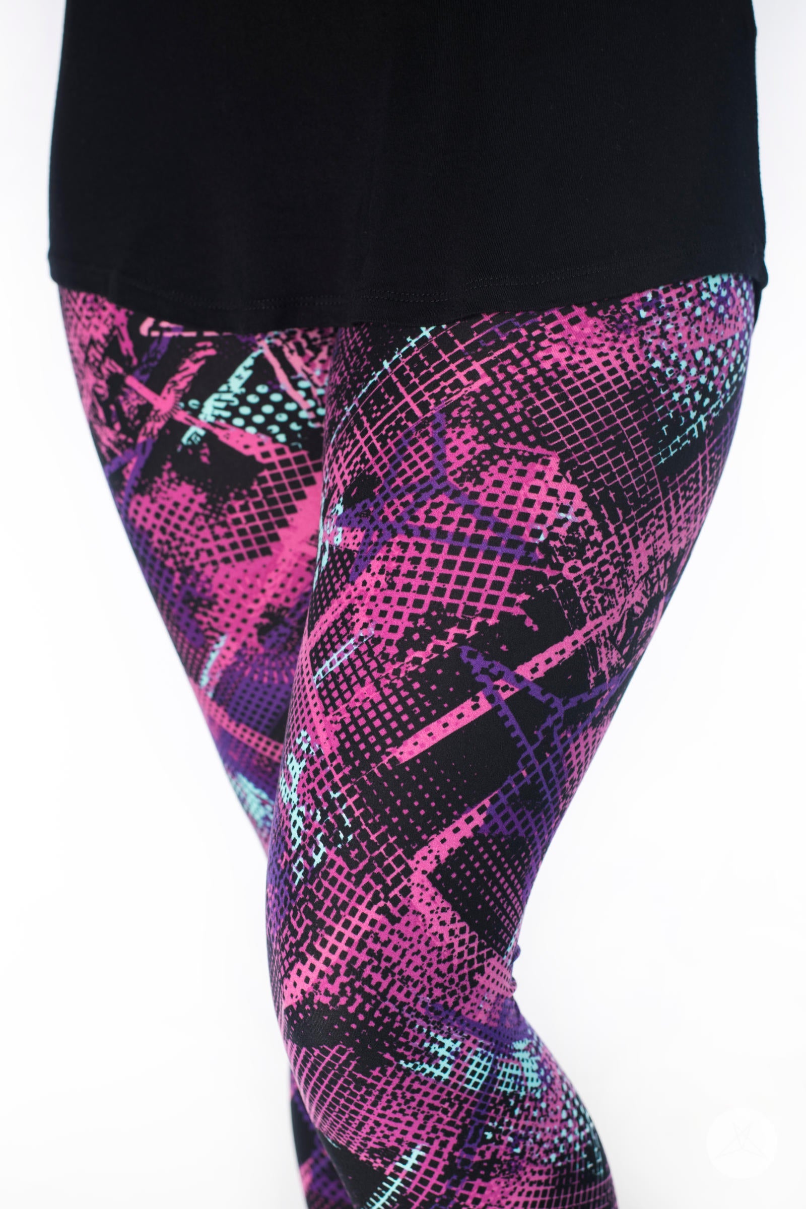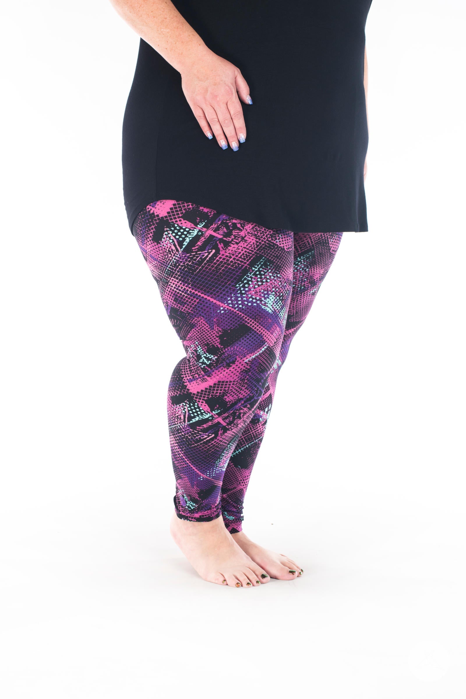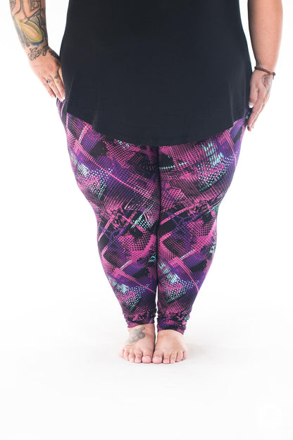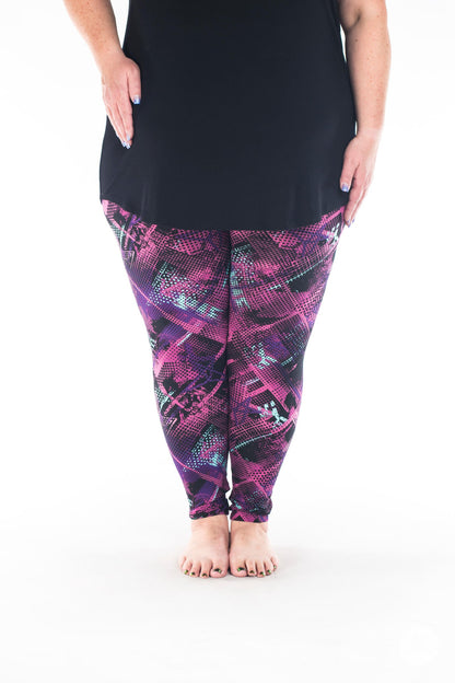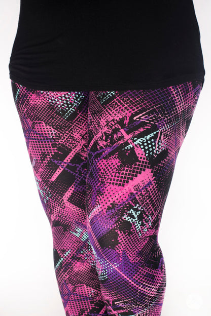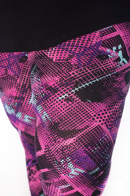 This black-based graffiti-inspired print features an abstract pattern in shades of mint, purple, and pink that makes Bodacious an unforgettable addition to your SweetLegs collection!