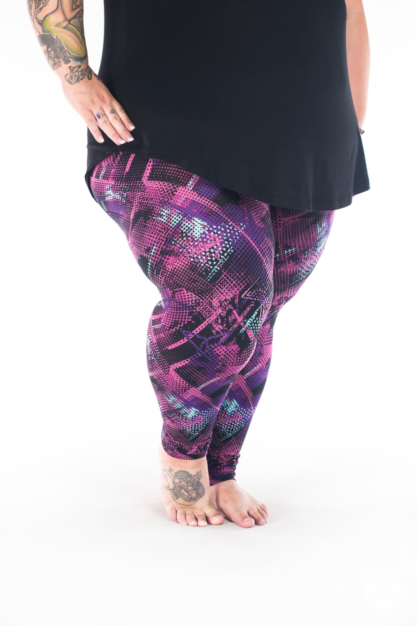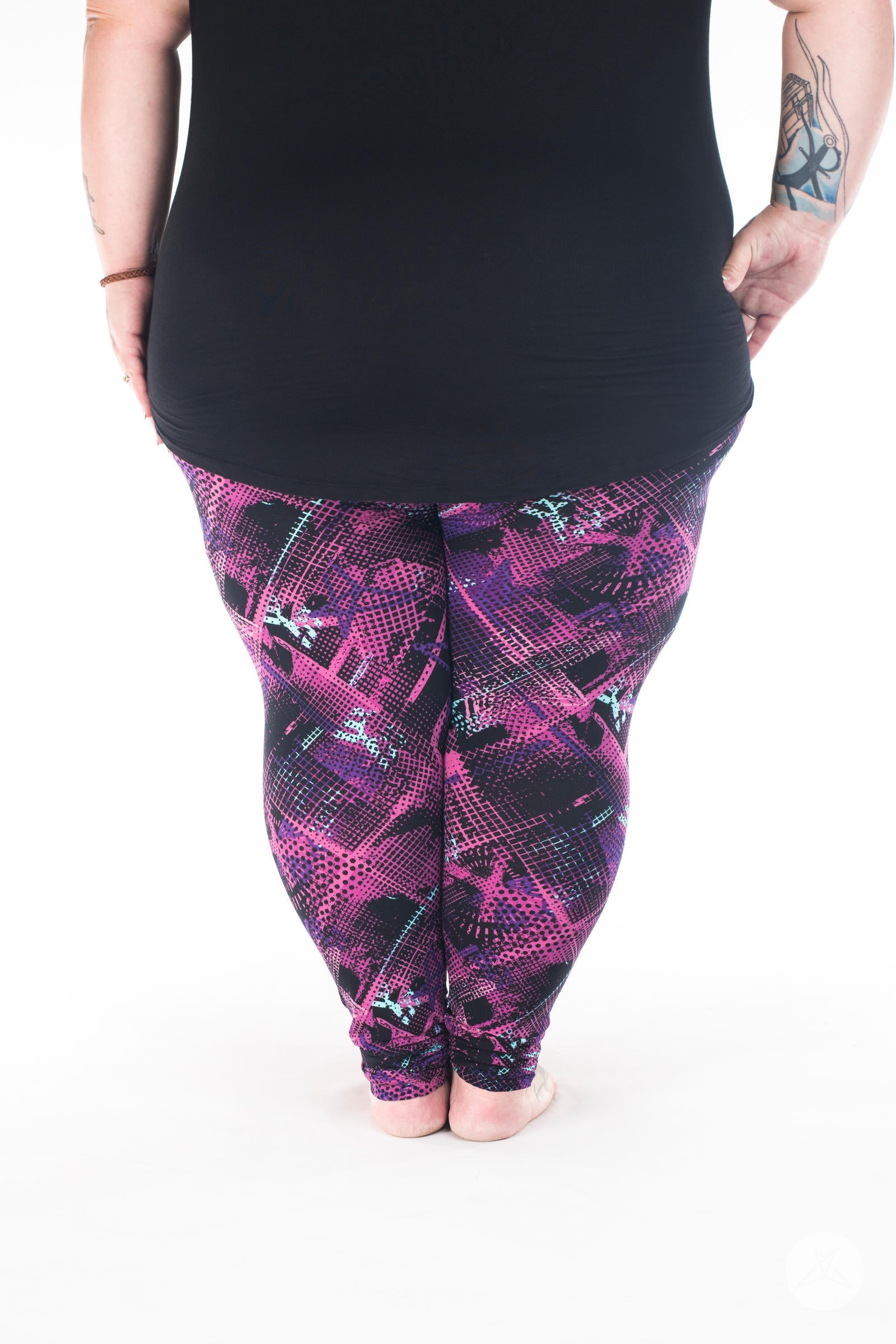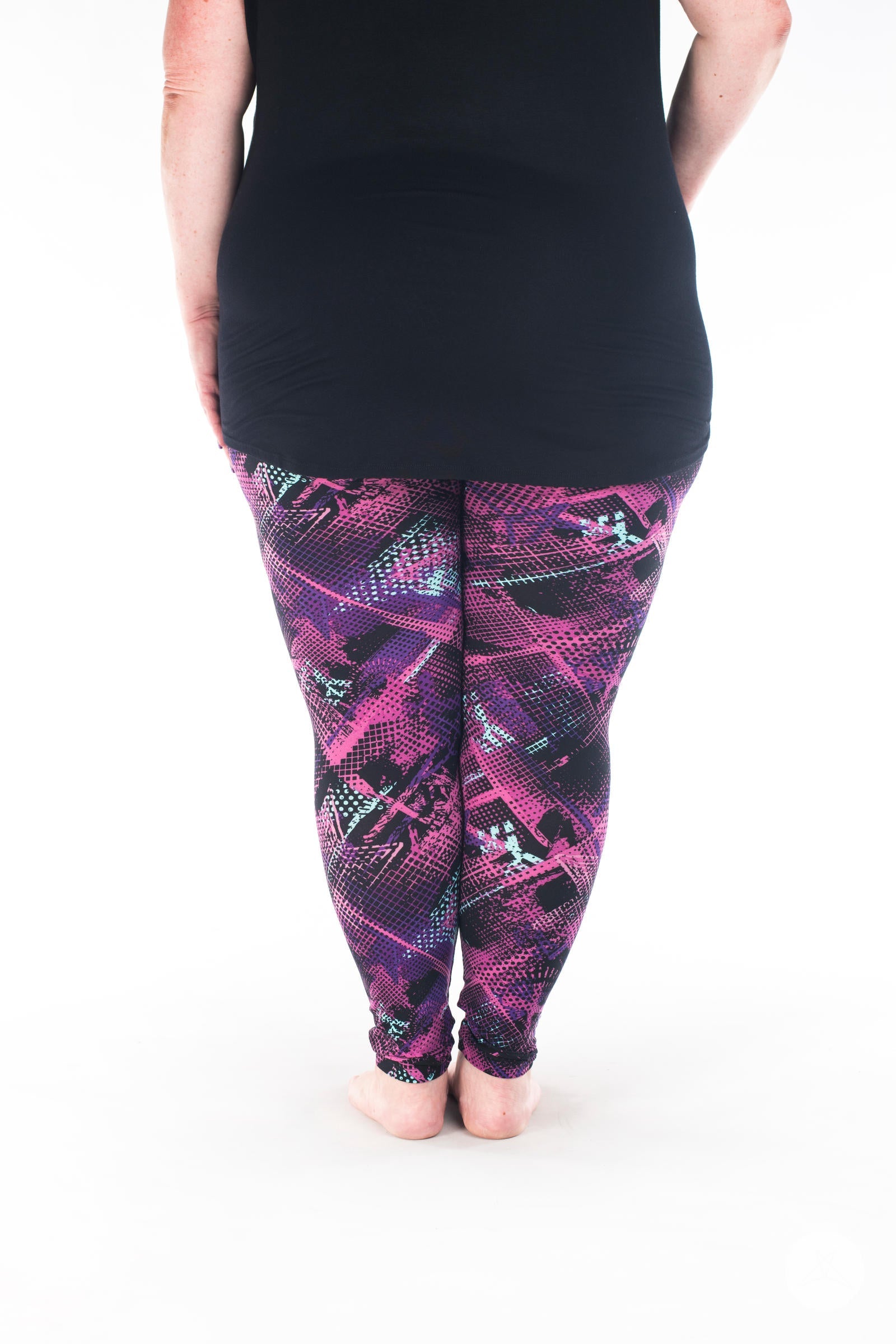 This black-based graffiti-inspired print features an abstract pattern in shades of mint, purple, and pink that makes Bodacious an unforgettable addition to your SweetLegs collection!
