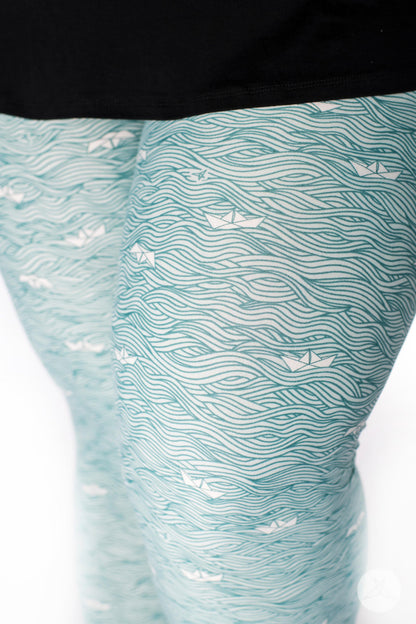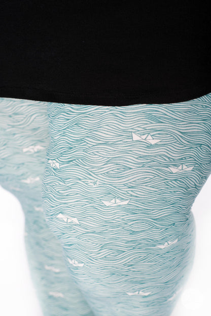 Make Waves features white paper boats sailing on a teal and mint coloured waves, making them the perfect print to float directly into your spring wardrobe!
