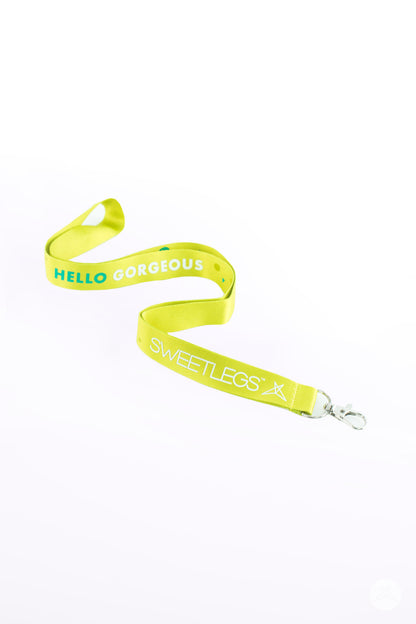 Our trendy SweetLegs-branded lanyards come in fun colours and feature the hashtag #HELLOGORGEOUS.
