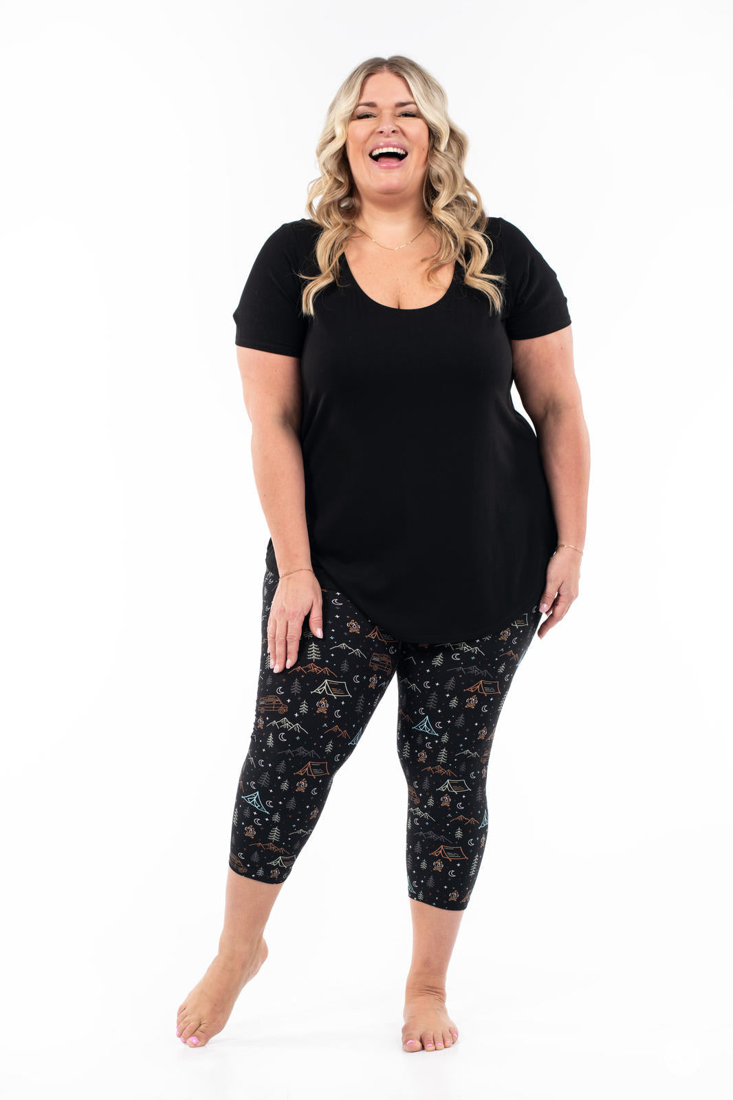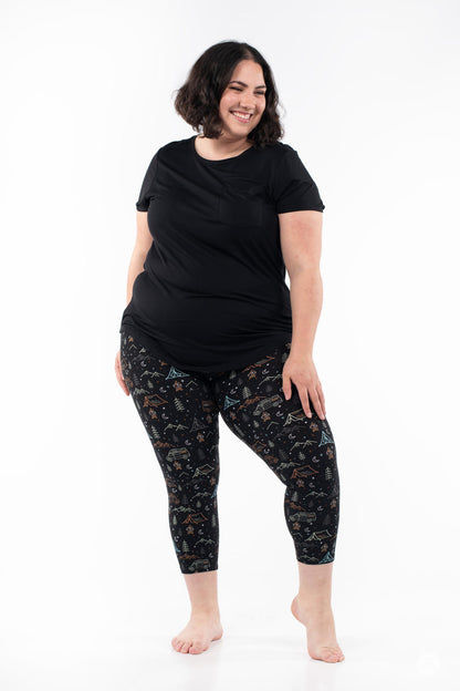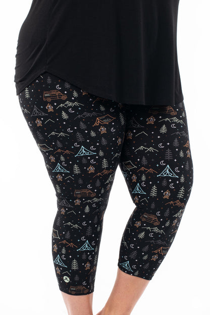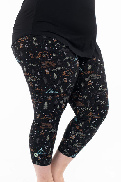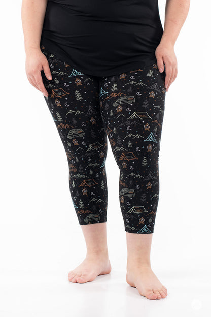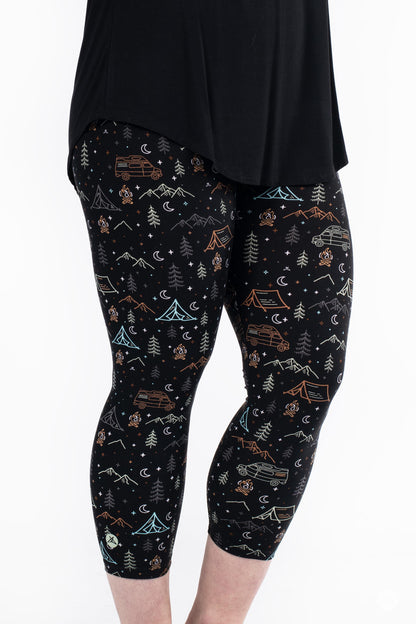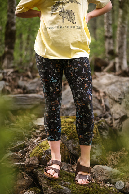 L’imprimé pour les campeurs, les glampers et tout le monde entre les deux ! Avec des montagnes, des feux de joie et des camping-cars, ce sont les leggings à porter dans les bois lors de votre prochaine aventure en plein air, ou pour vous amener les bois dans le confort de votre propre maison.
