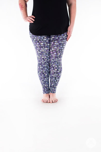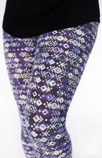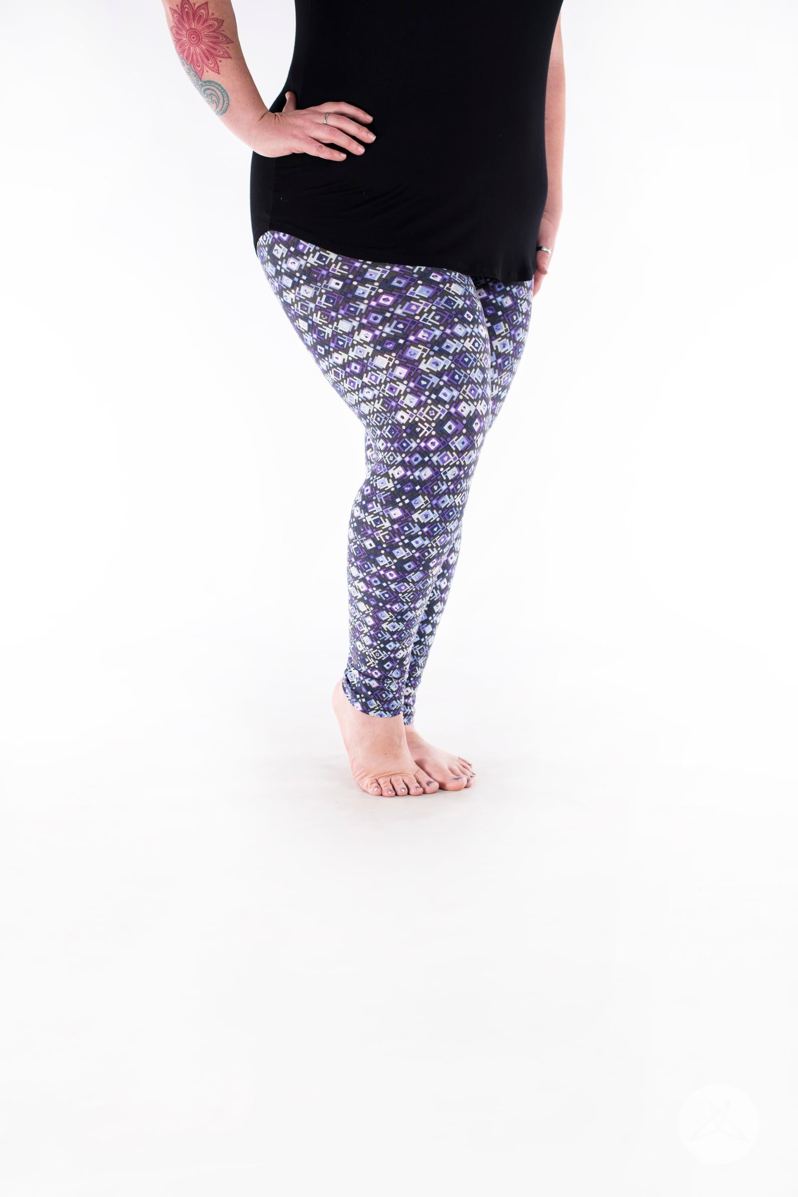 Stay cool in style with Cold Snap SweetLegs! This fun and abstract design blends shades of purple, periwinkle, pink, and blue, all set against a sleek charcoal grey background. Whether you're lounging or out and about, this print brings a frosty burst of color to your wardrobe!" ❄️💜