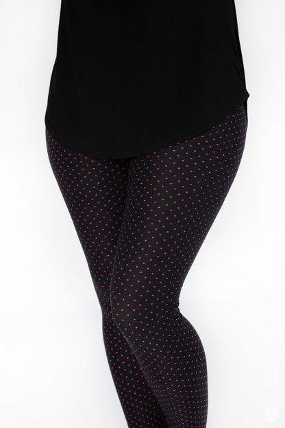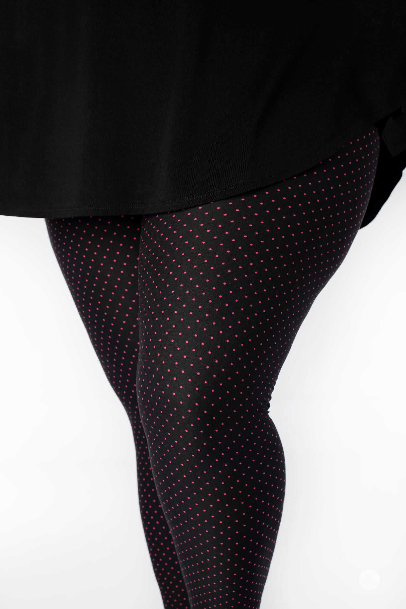 Cet imprimé polyvalent est parfait pour toutes les occasions avec des pois rose vif sur un véritable fond noir.
