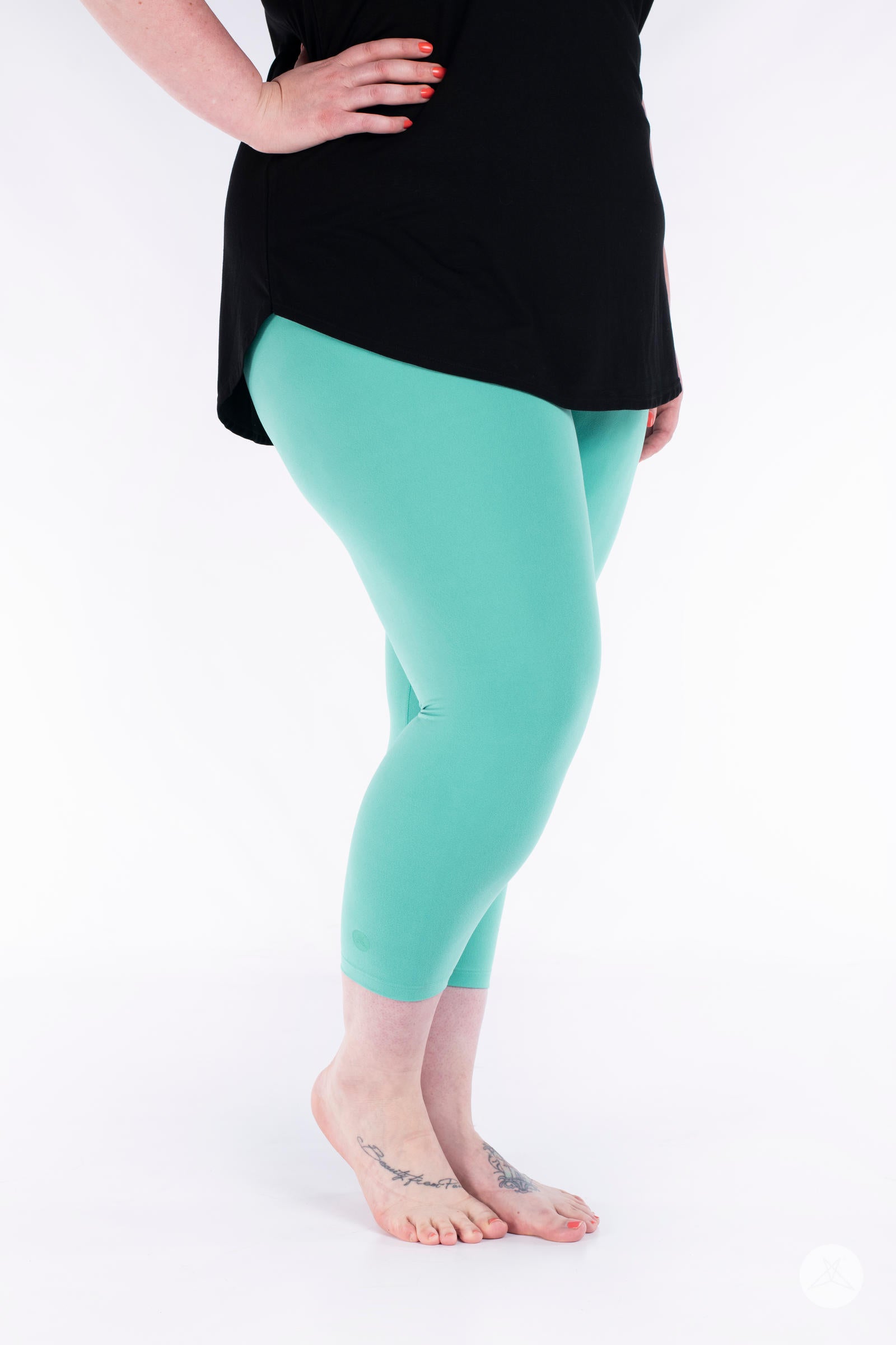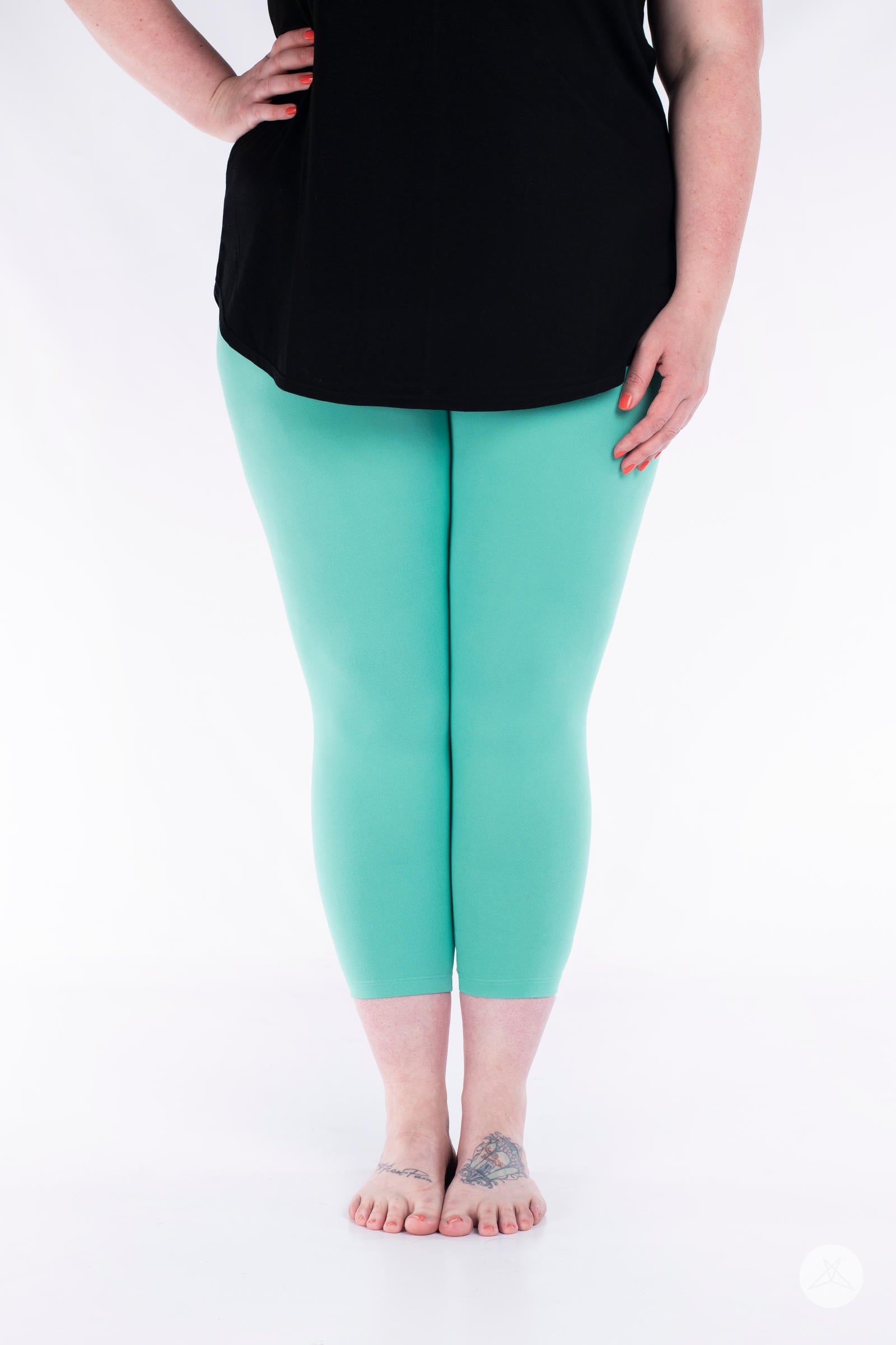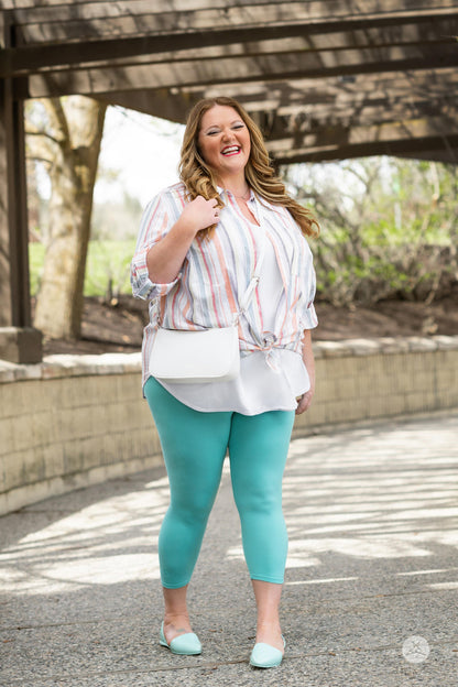 Gardez-le aéré avec Aquamarine Crops et portez-le avec un SweetTops blancT-shirt classique, une chemise boutonnée en chambray bleu, des tongs blanches sportives et unChouchou aigue-marine.