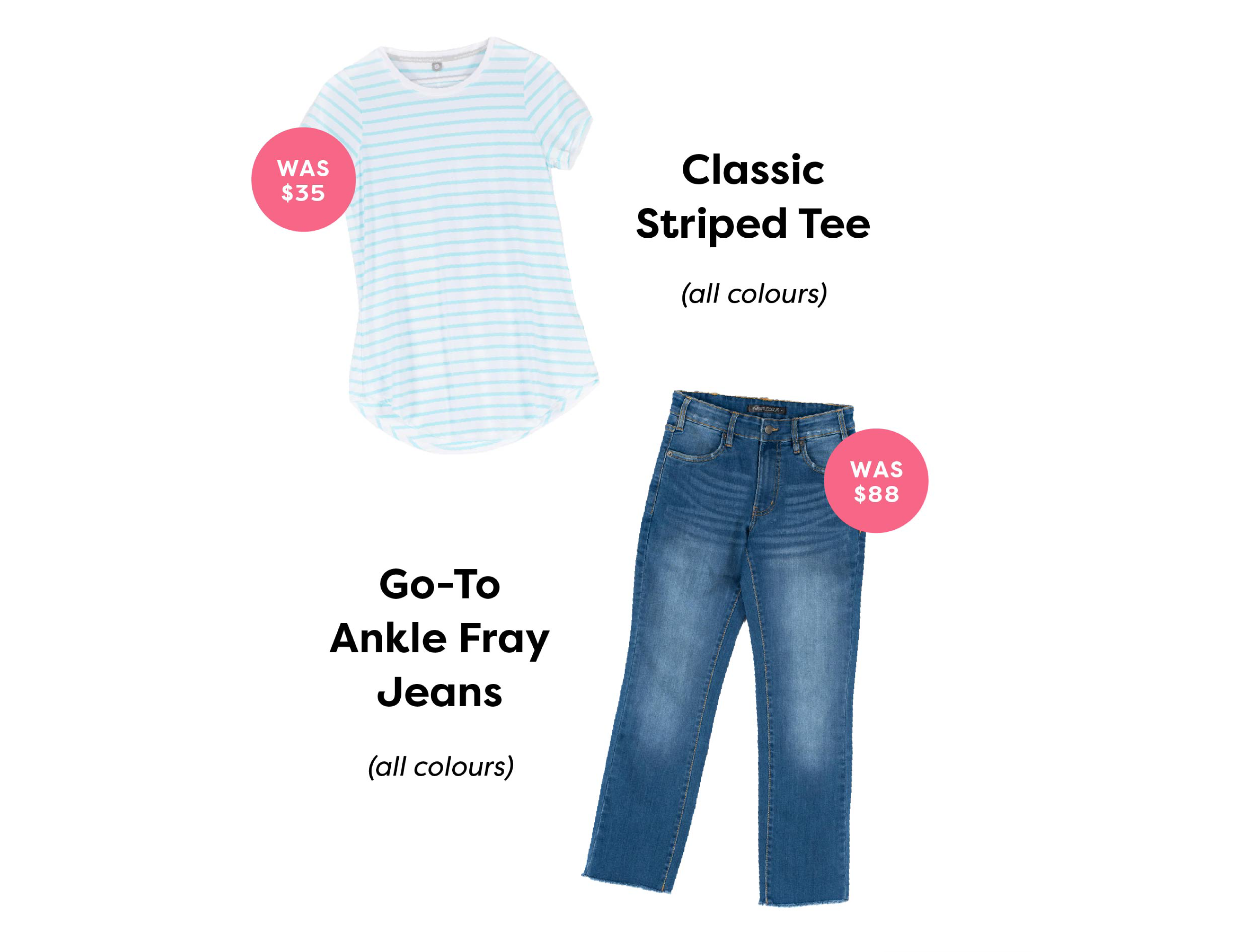Get the Classic Striped Tee + Go-To Ankle Fray Jeans for just $68 (regularly $123).