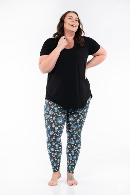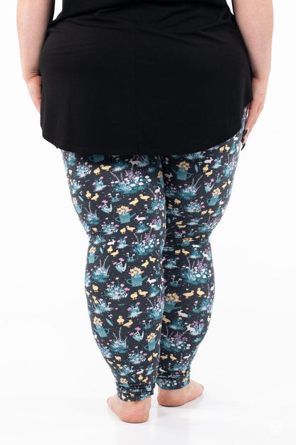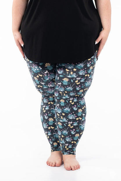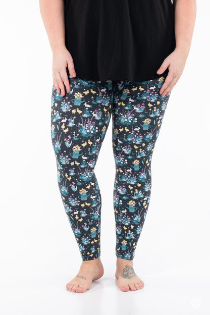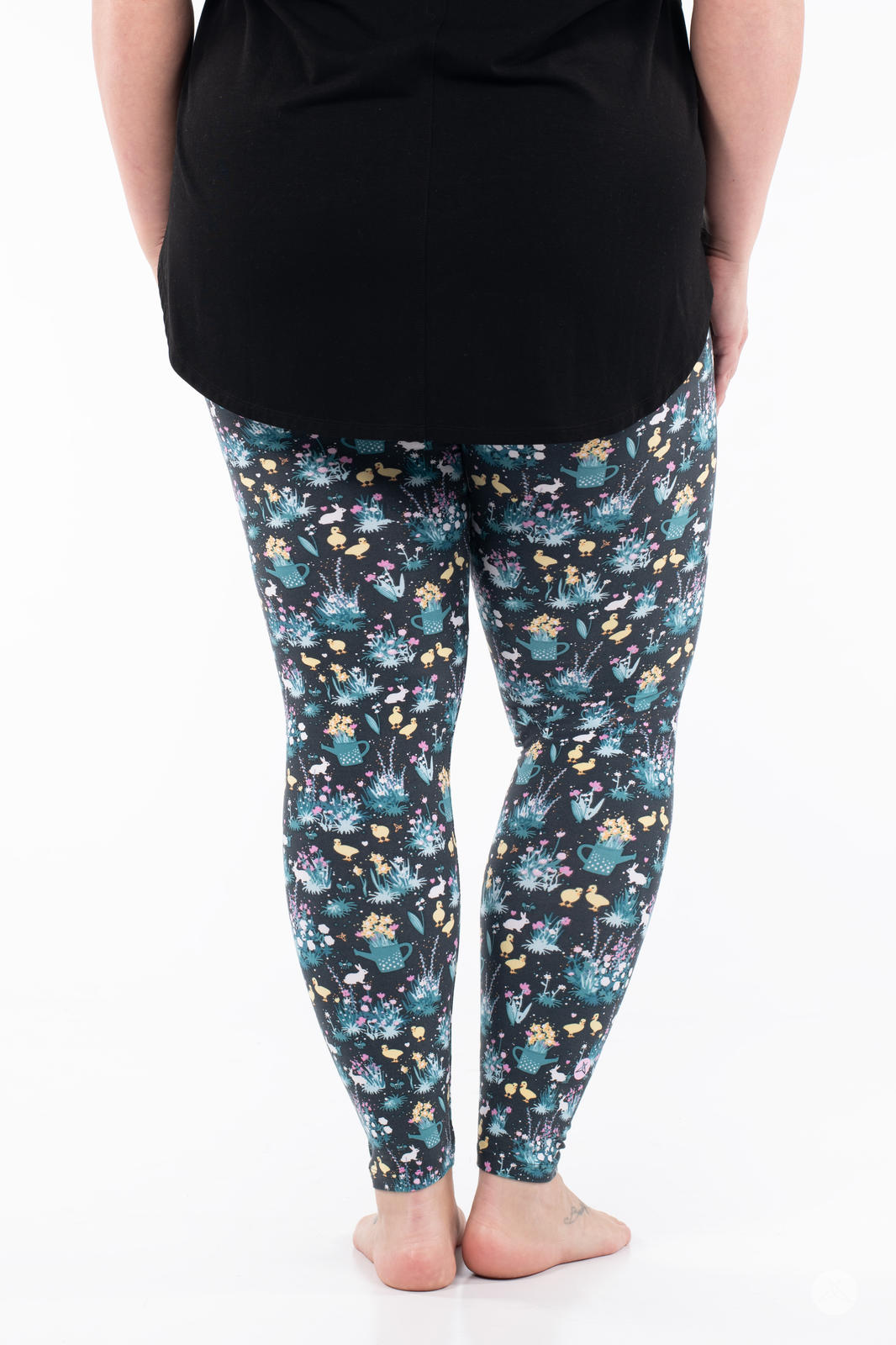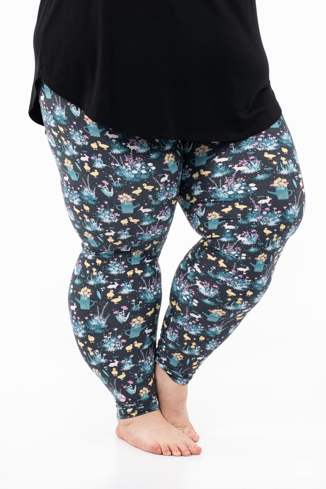 Profitez du confort avec ces leggings ludiques ! Spring Meadow présente la flore et la faune luxuriantes de la saison : des canards pimpants aux charmants lapins blancs et buissons fleuris.