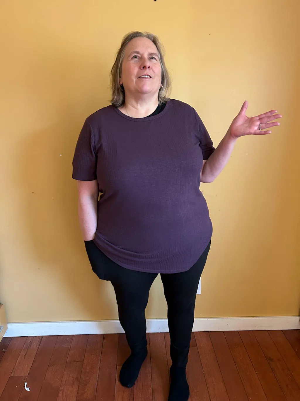 I love my sweet legs tops. They don’t stick to my tum & it’s just long enough.
