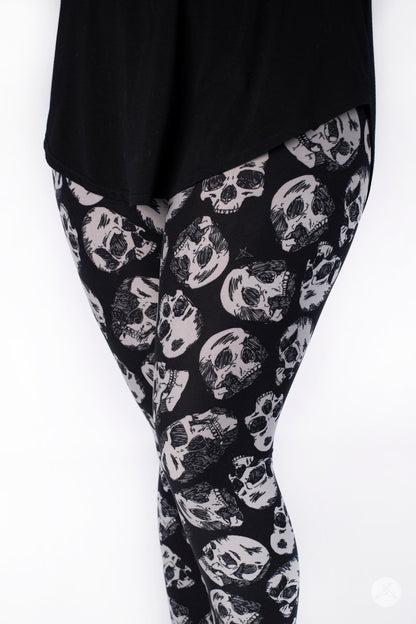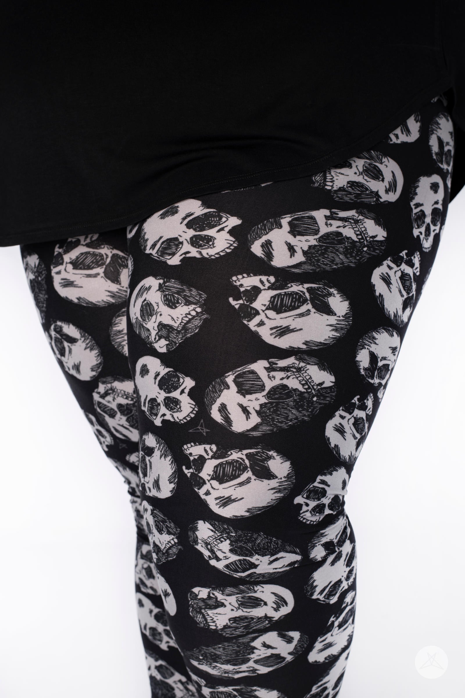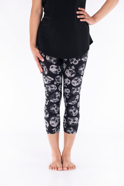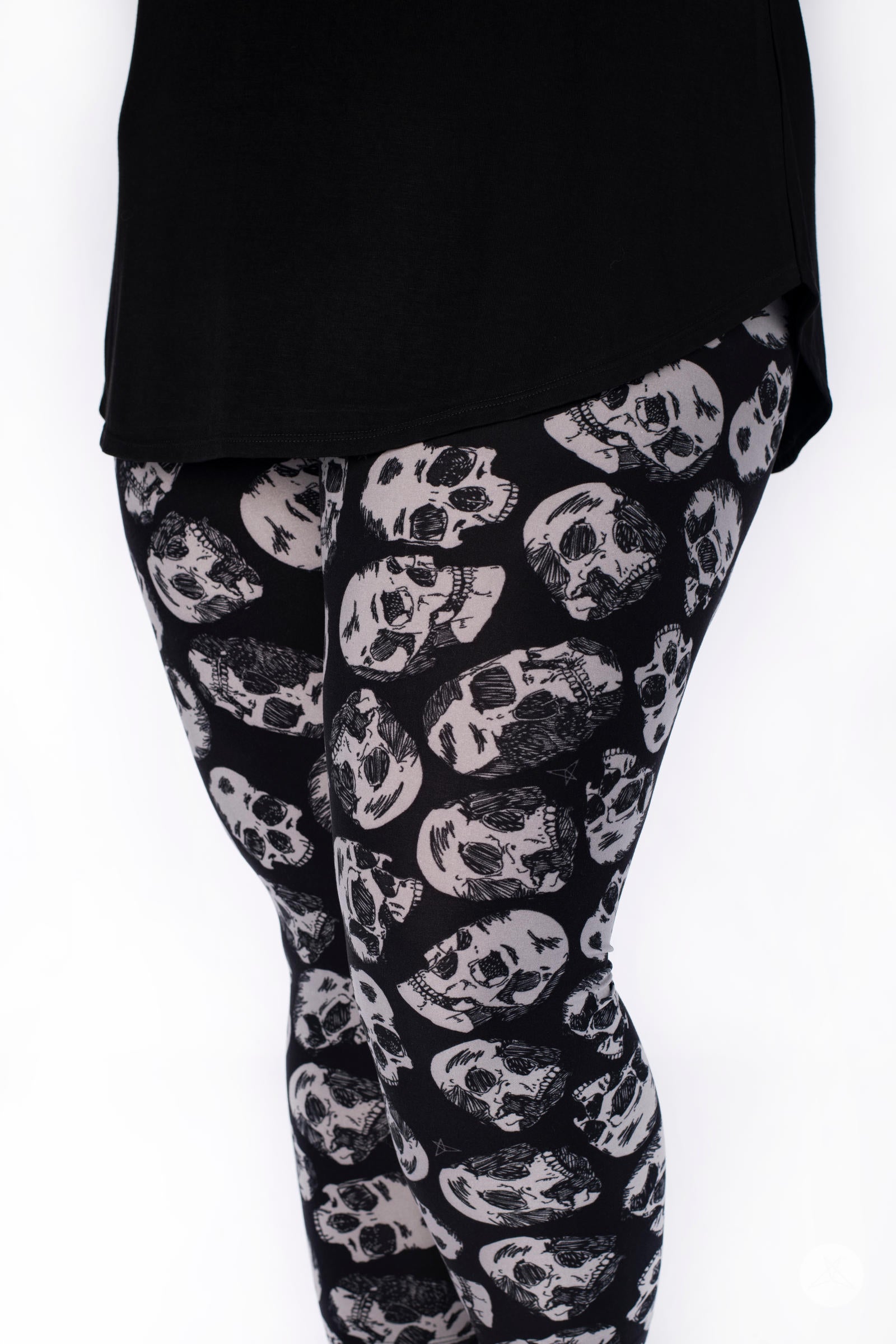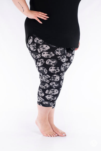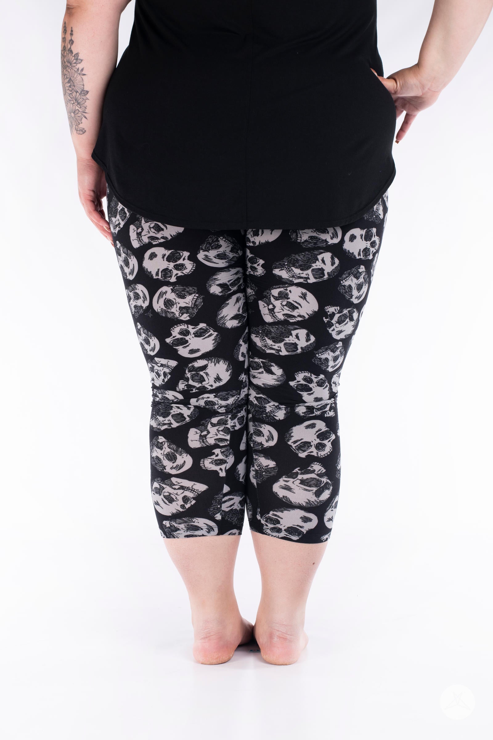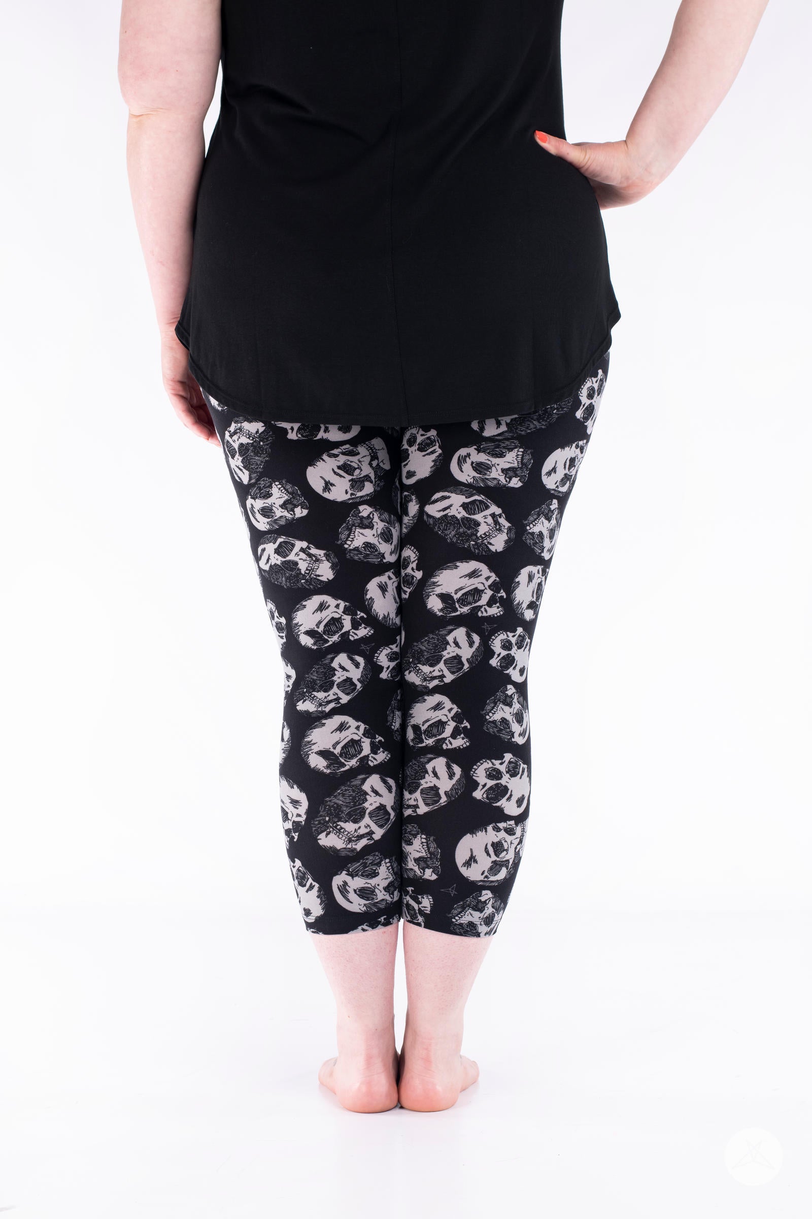 Nous adorons nous balancer dans ces leggings courts noirs à imprimé tête de mort et les associer à un SweetTops.T-shirt classiqueen blanc.