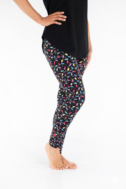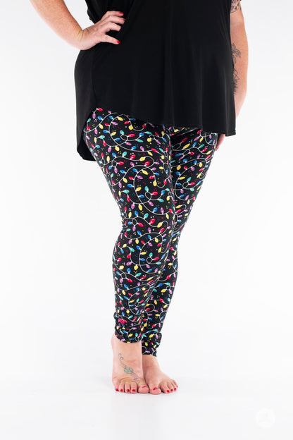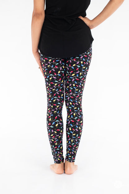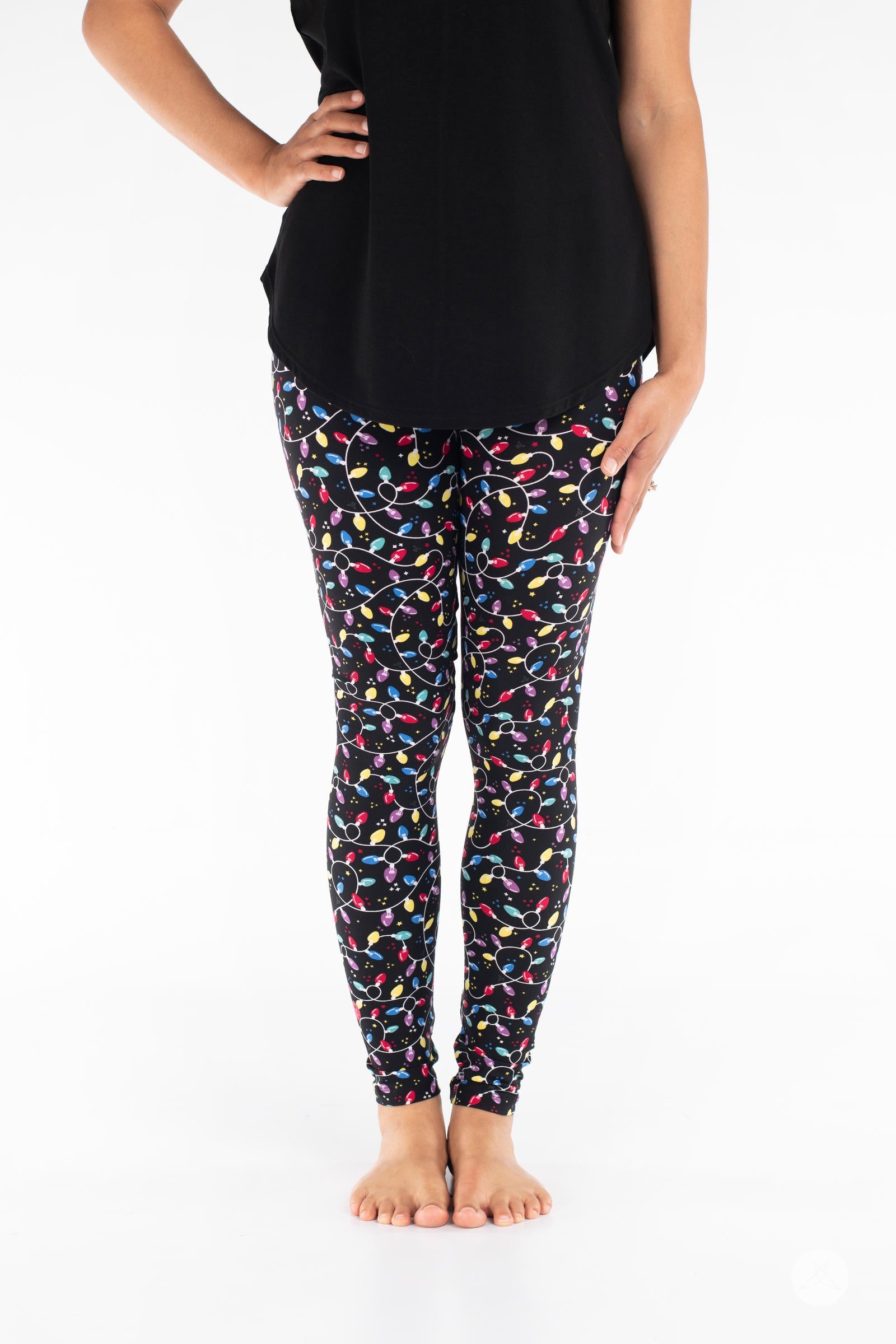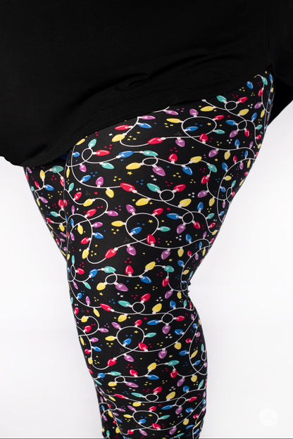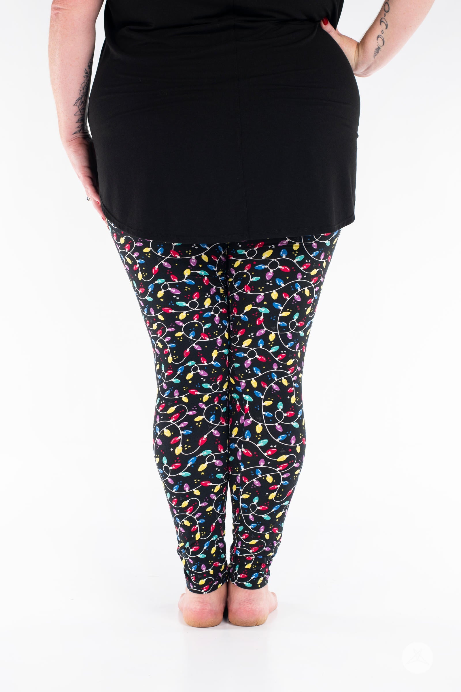 Light up your life in De-Lightful SweetLegs, a bright addition to our limited edition 2021 holiday leggings collection! This extra fun print features sparkly purple, yellow, red, teal, and blue tree lights on a jet black background and will turn heads this holiday season wherever you go!