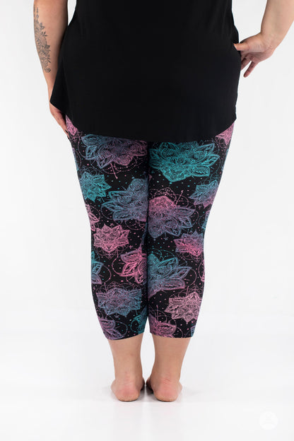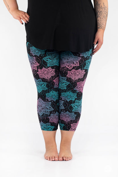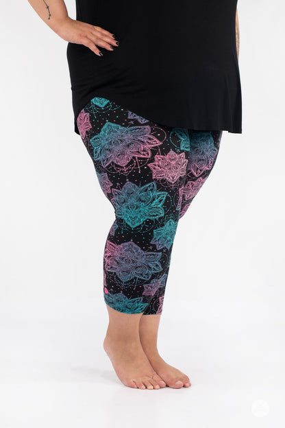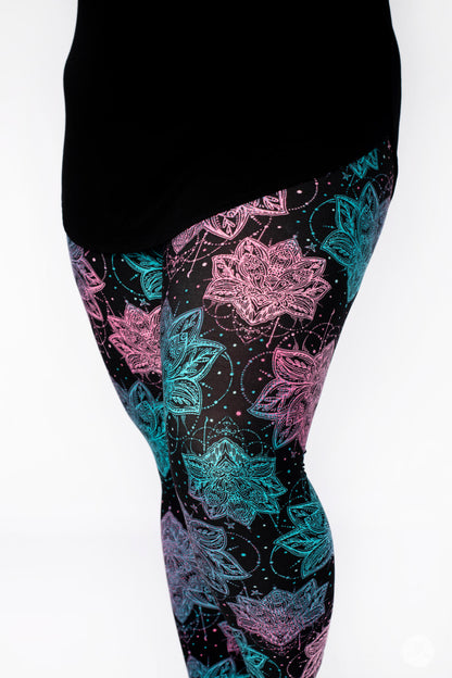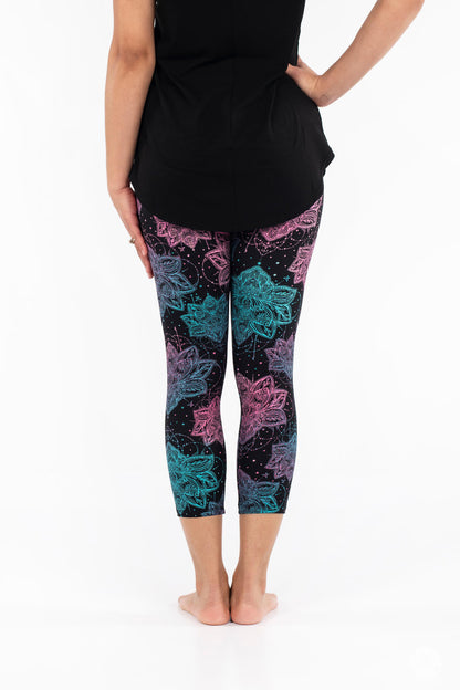 Everafter présente un imprimé lotus magnifique et complexe dans des tons roses vifs et bleu sarcelle sur un véritable fond noir. Nous adorons Everafter associé à notre débardeur Swing en verre de mer pour une tenue aérée et magnifique. Magnifique et audacieux, tout comme vous !