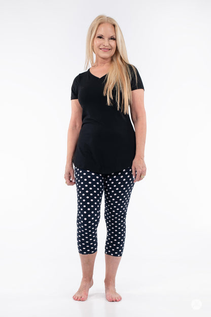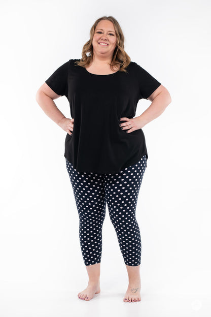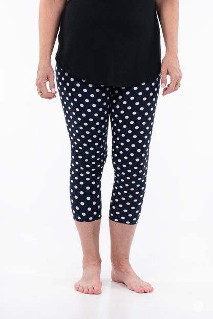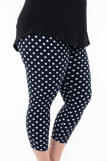 Lorsqu'un motif intemporel et nos SweetLegs classiques se réunissent, préparez-vous à vous faire repérer. Faites vibrer les pois avec nos tout nouveaux leggings à pois bleu marine et blancs !