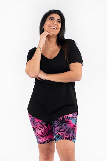 Le short de motard SweetLegs présente la même coupe de legging emblématique que vous aimez, mais avec un entrejambe plus court qui est coupé au-dessus du genou.
