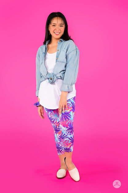 Tropical Burst propose des étoiles de violets, de roses et de bleus vibrants, le tout sur un fond blanc.
