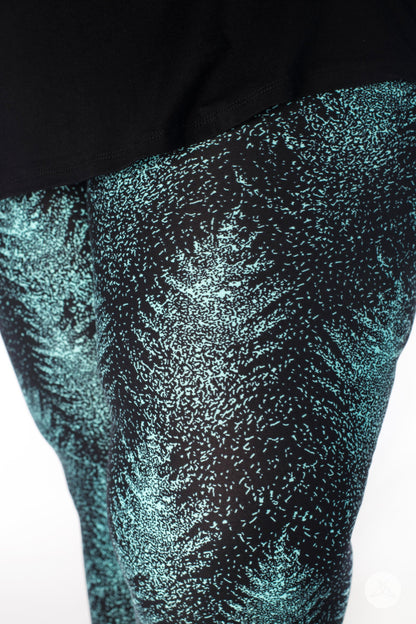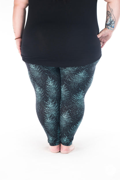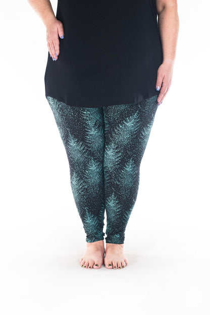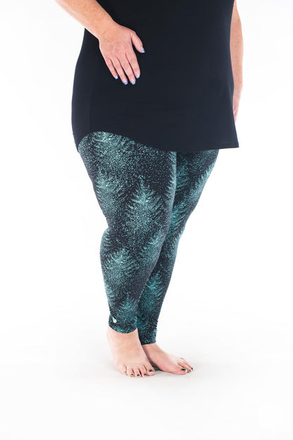 Gorgeous frosted trees are the focus of this elegant mint and black winter print that will be a perfect addition to your cozy SweetLegs collection!