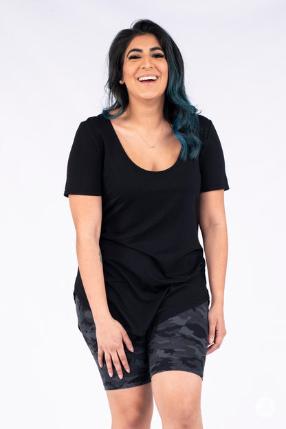Le short de motard SweetLegs présente la même coupe de legging emblématique que vous aimez, mais avec un entrejambe plus court qui est coupé au-dessus du genou.