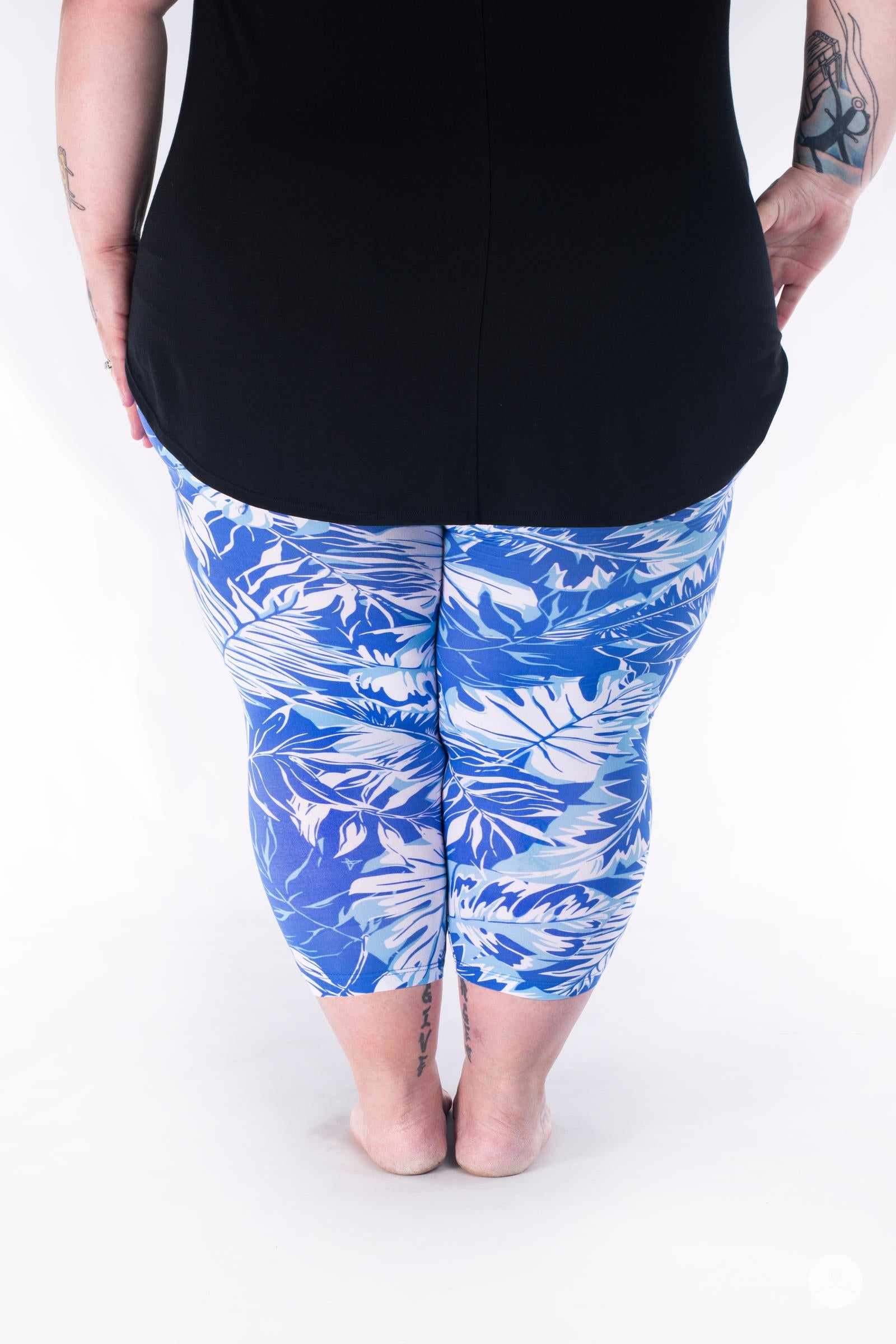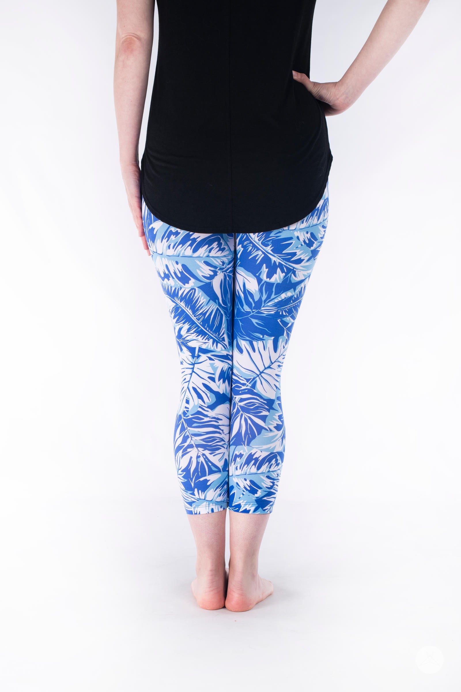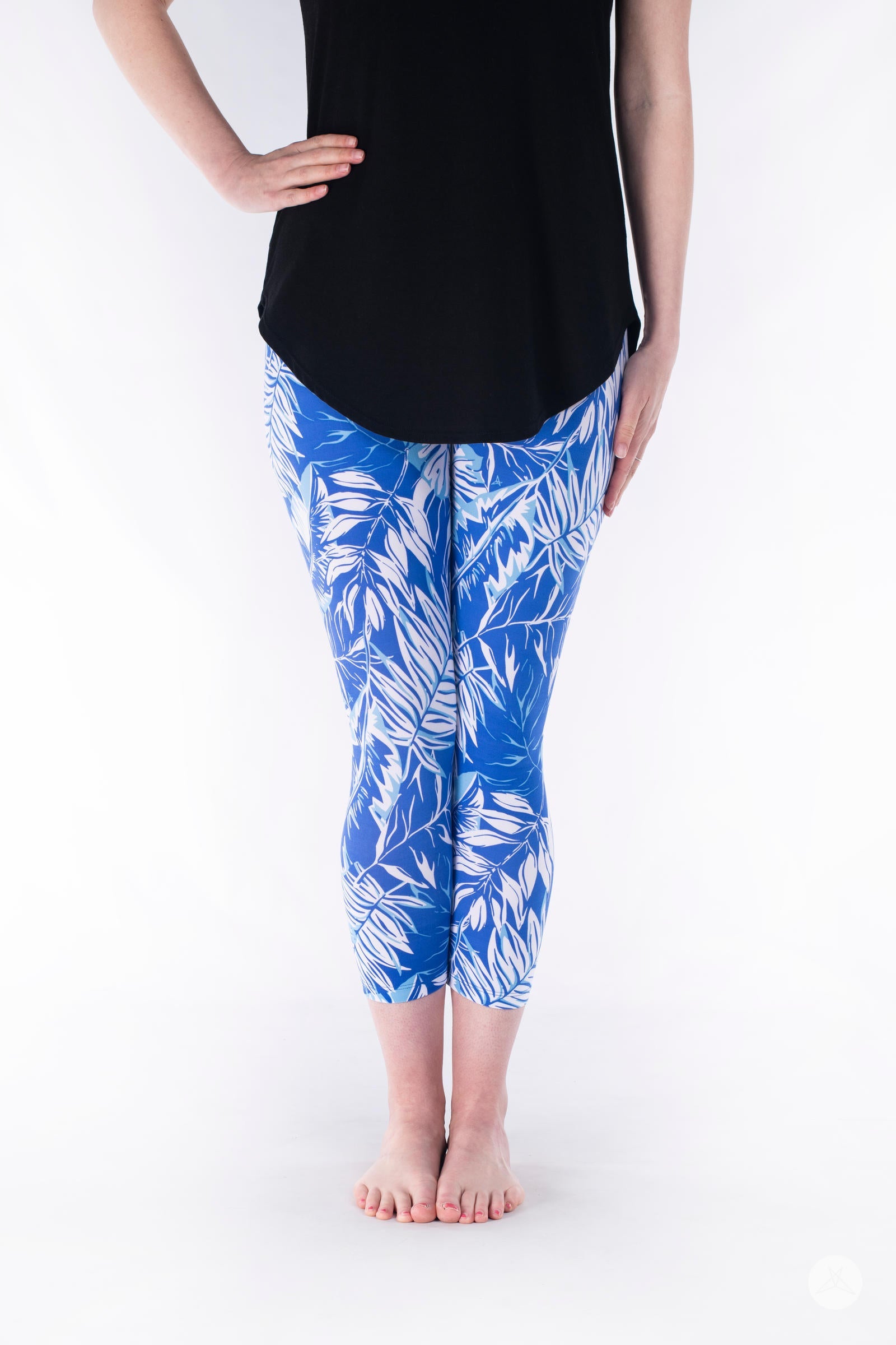 Blue Lagoon Crops are a fun twist on tropical palm leaves and pair perfectly with our layering tanks.