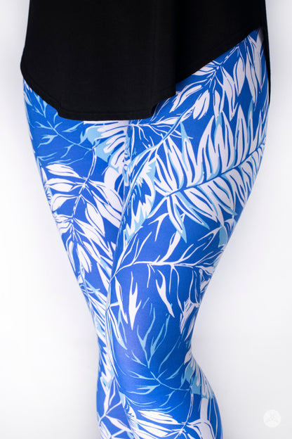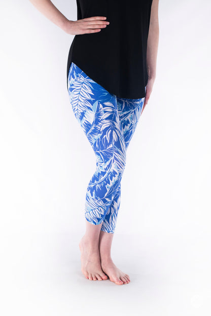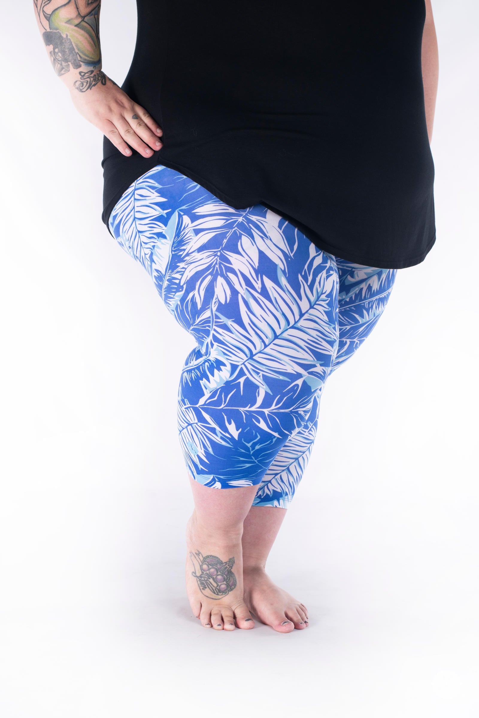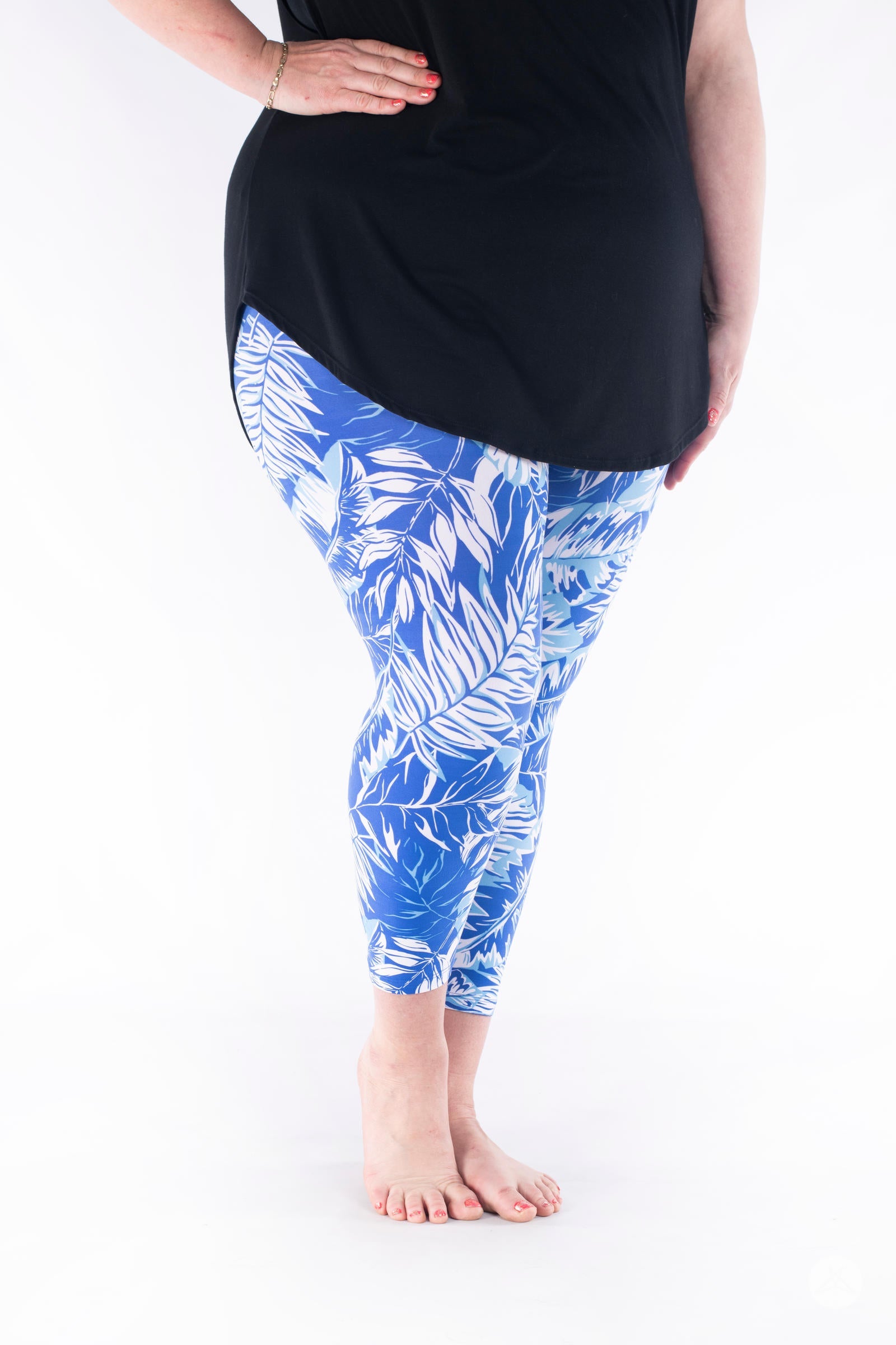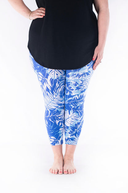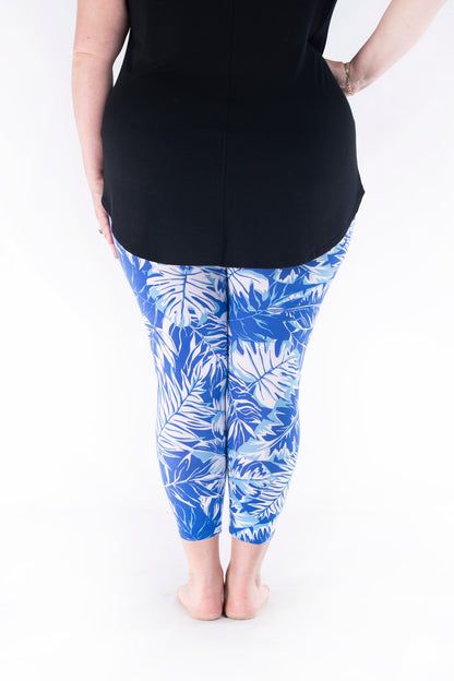 Blue Lagoon Crops are a fun twist on tropical palm leaves and pair perfectly with our layering tanks.