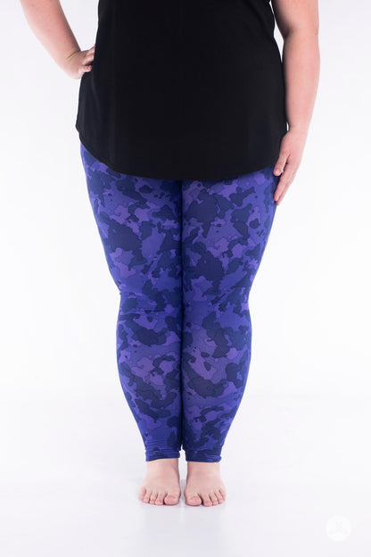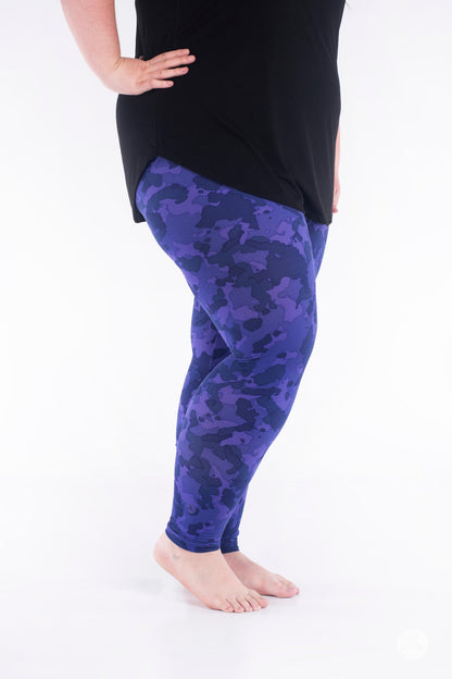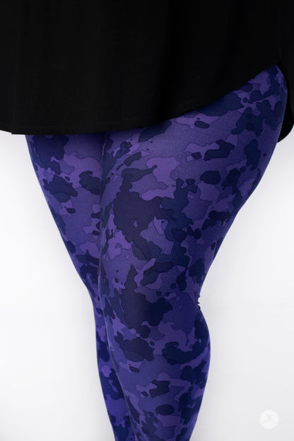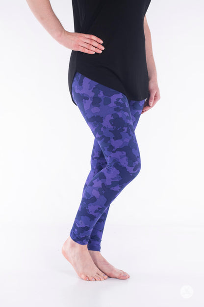 Ce legging ludique présente un motif camouflage violet, parfait pour ceux qui recherchent un look de jour comme de nuit.