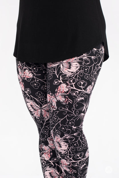 Butterfly Bliss 2.0 présente un motif papillon magnifique et fantaisiste dans des tons de rose sur fond noir.