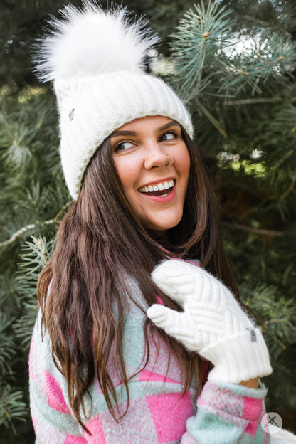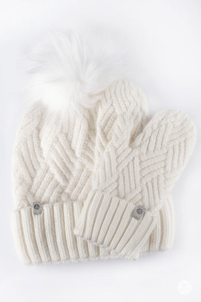 The Cozy Knit Duo is the essential mitten and toque set that you’ve been searching for. Designed to keep you fashionably warm, this super-soft duo is perfect for cold, blustery weather. The toque offers a removable pom, with the option of customization using the other available colours to perfectly express your unique personality and style.