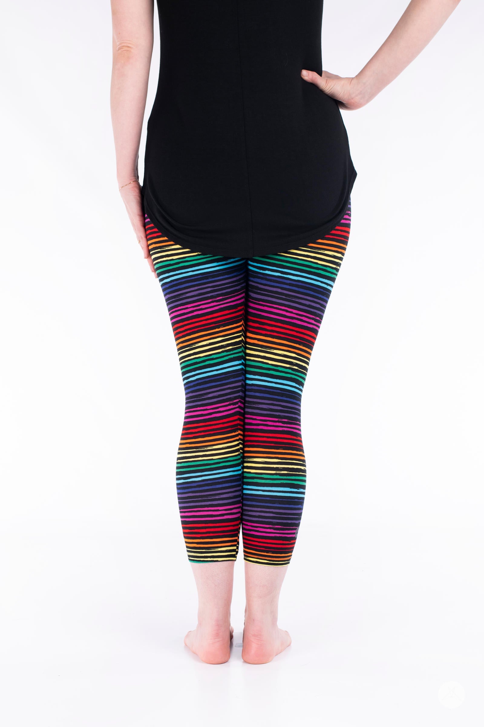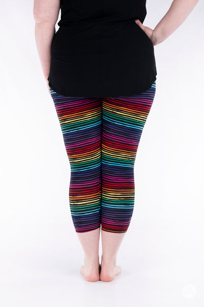 Vous serez au-dessus de l'arc-en-ciel dans Colorful Connection Crops lorsque vous les porterez avec un SweetTops bleu cobalt.Tunique classique, une veste en jean oversize et des sandales spartiates à lanières.