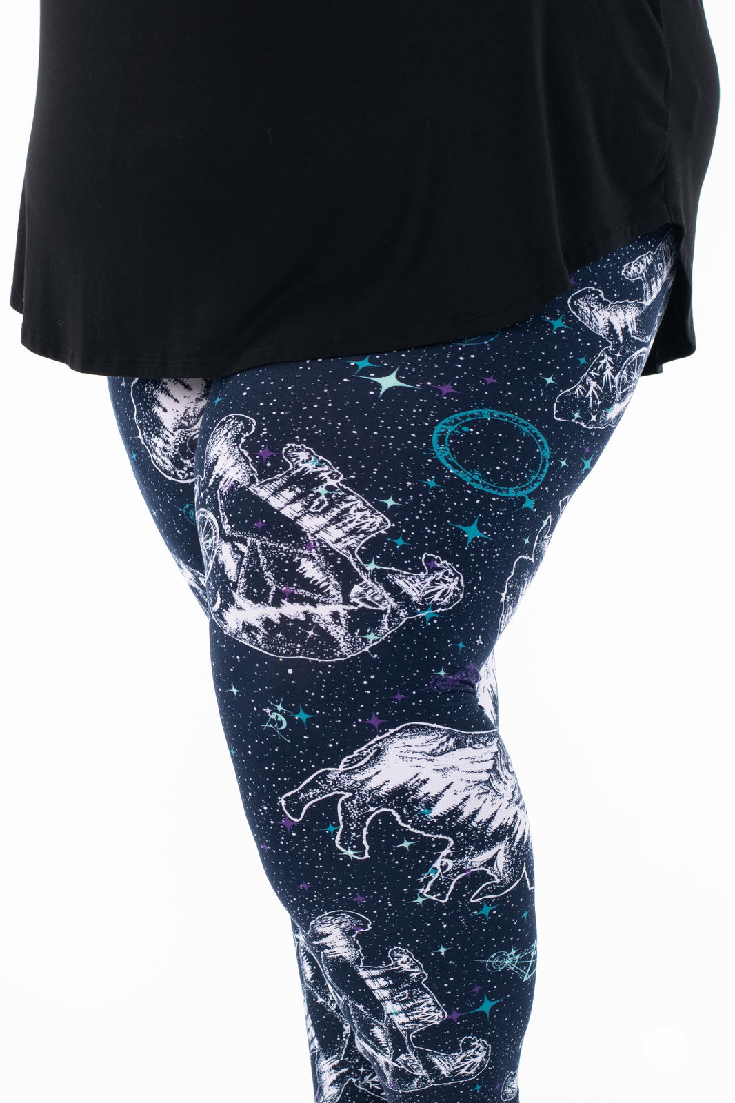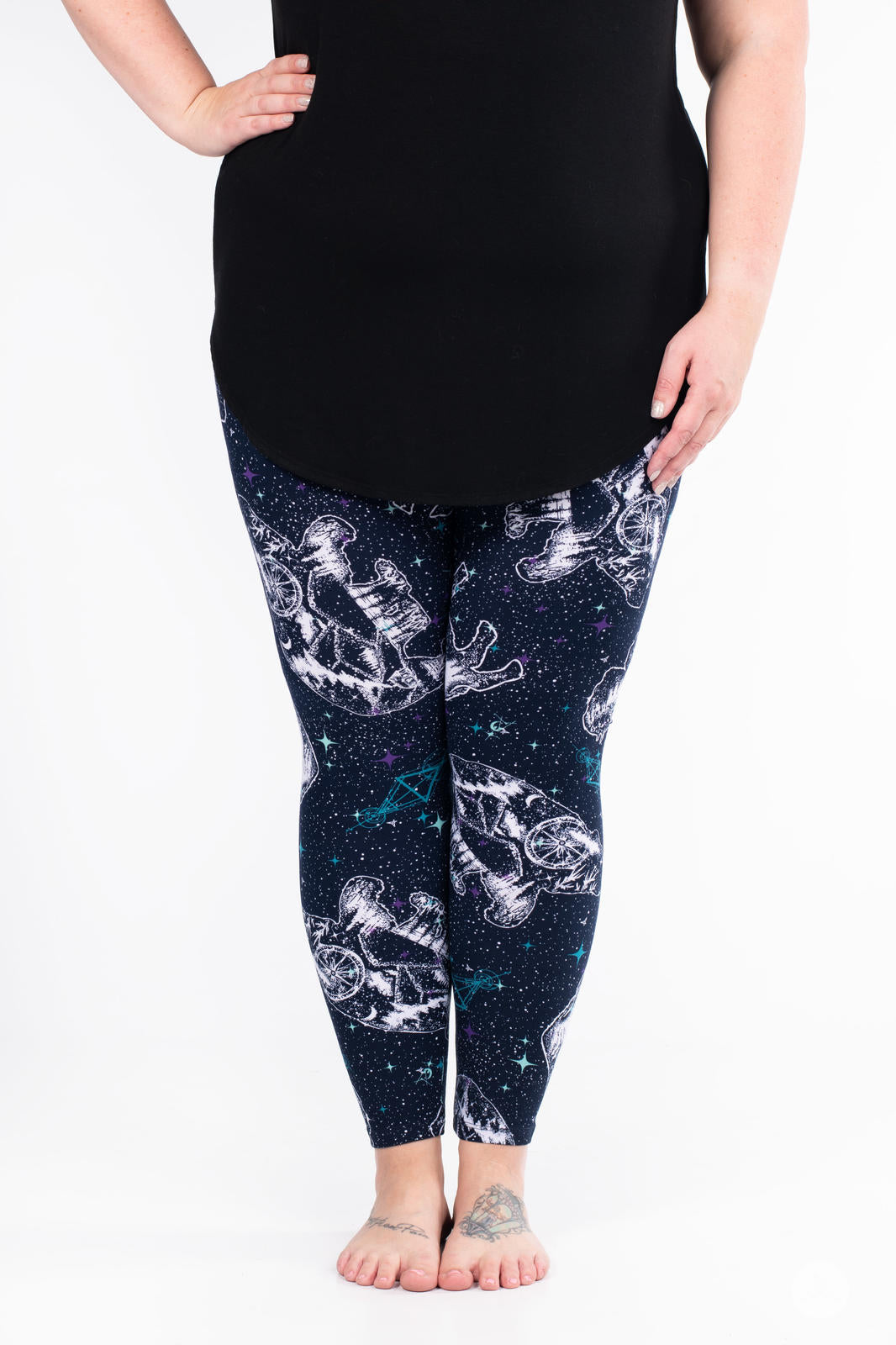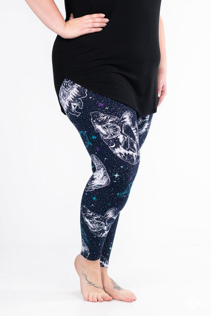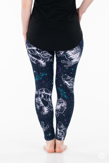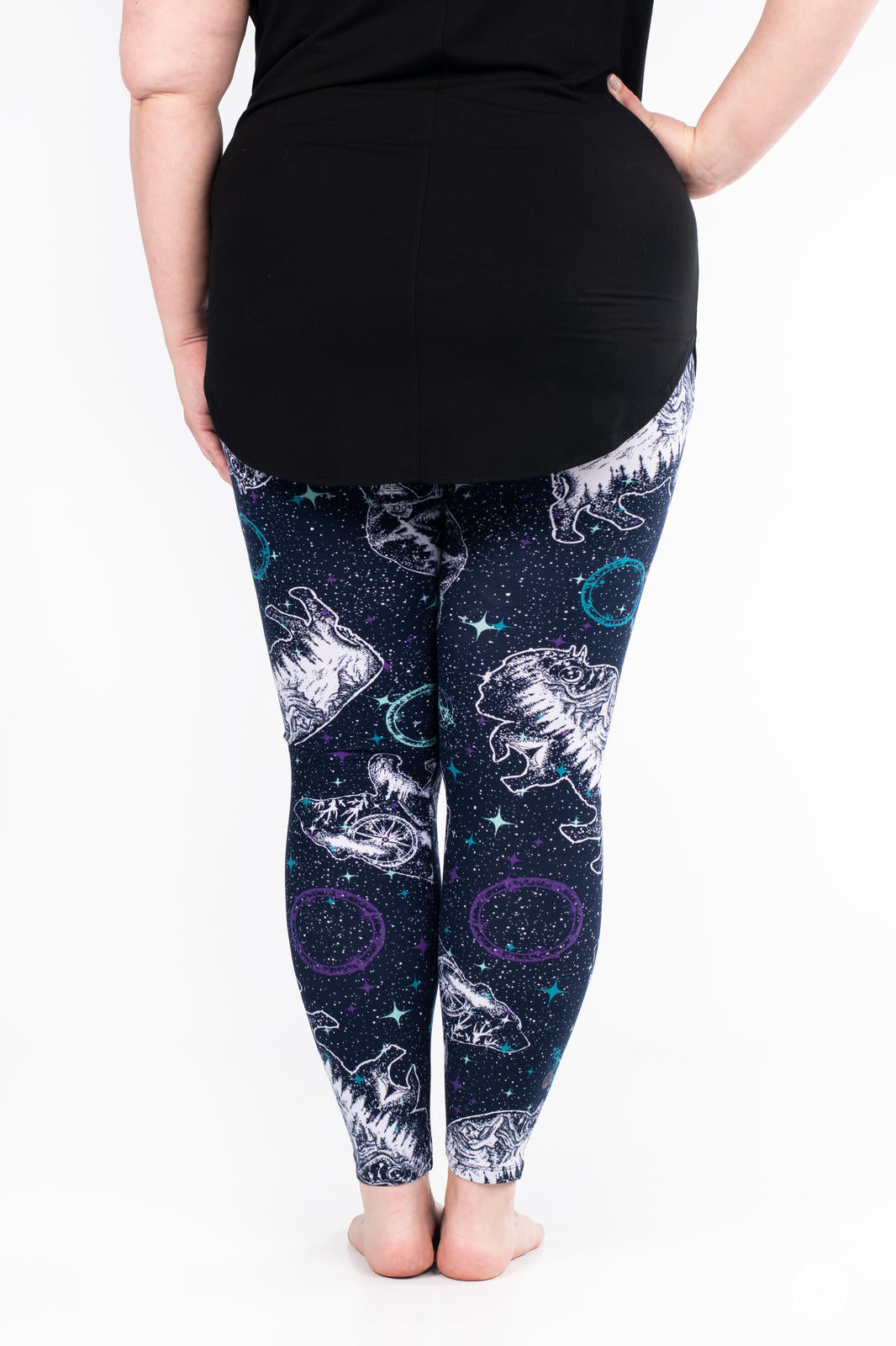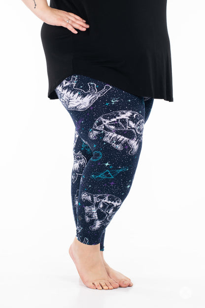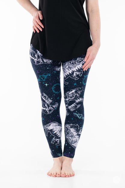 Les leggings Cosmic Wilderness présentent un motif céleste de constellations d'ours et de buffles orné de paysages boisés sereins à l'intérieur de chaque constellation. Sur un magnifique fond bleu foncé, ils se marient parfaitement avec presque tout ce qui se trouve dans votre garde-robe !