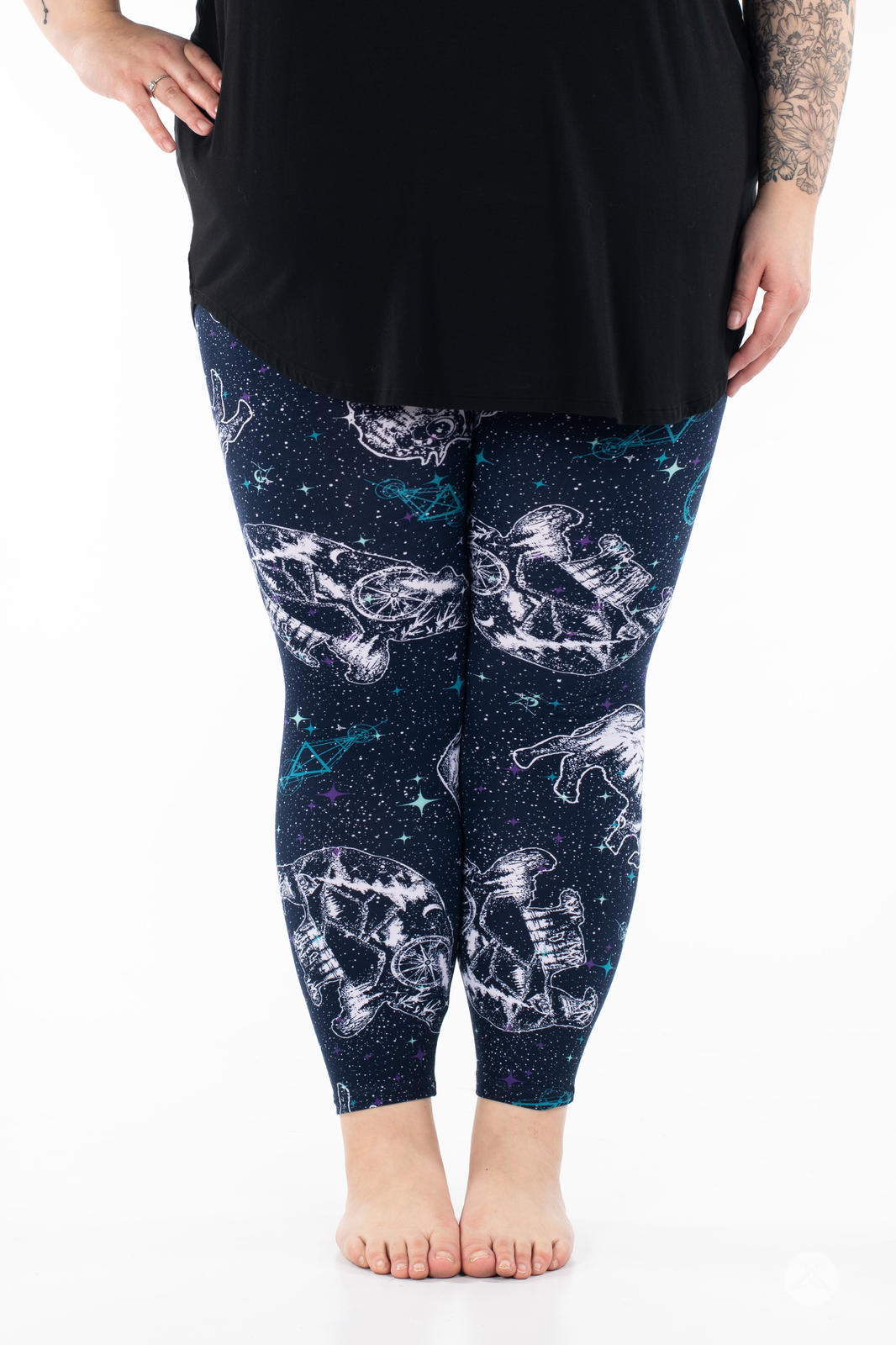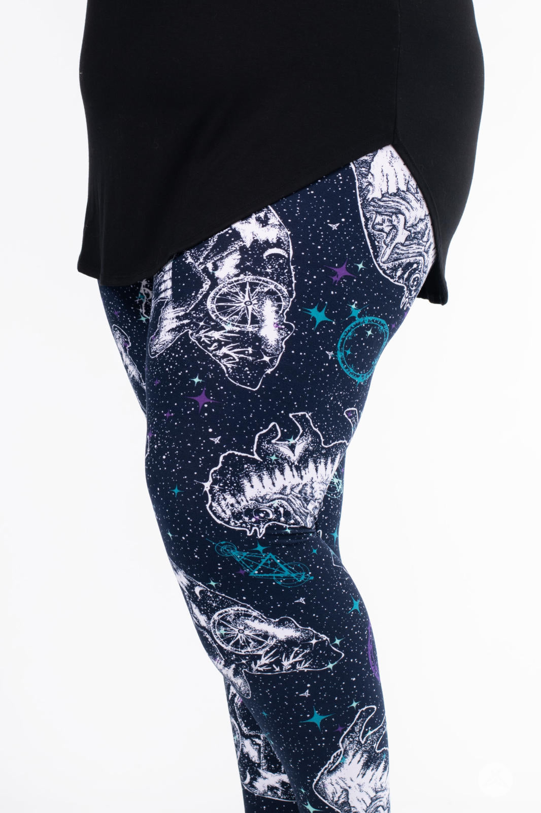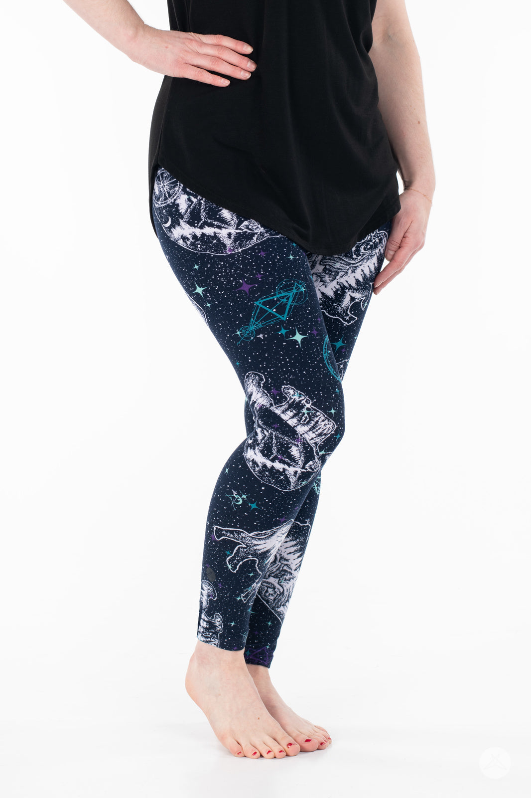 Les leggings Cosmic Wilderness présentent un motif céleste de constellations d'ours et de buffles orné de paysages boisés sereins à l'intérieur de chaque constellation. Sur un magnifique fond bleu foncé, ils se marient parfaitement avec presque tout ce qui se trouve dans votre garde-robe !