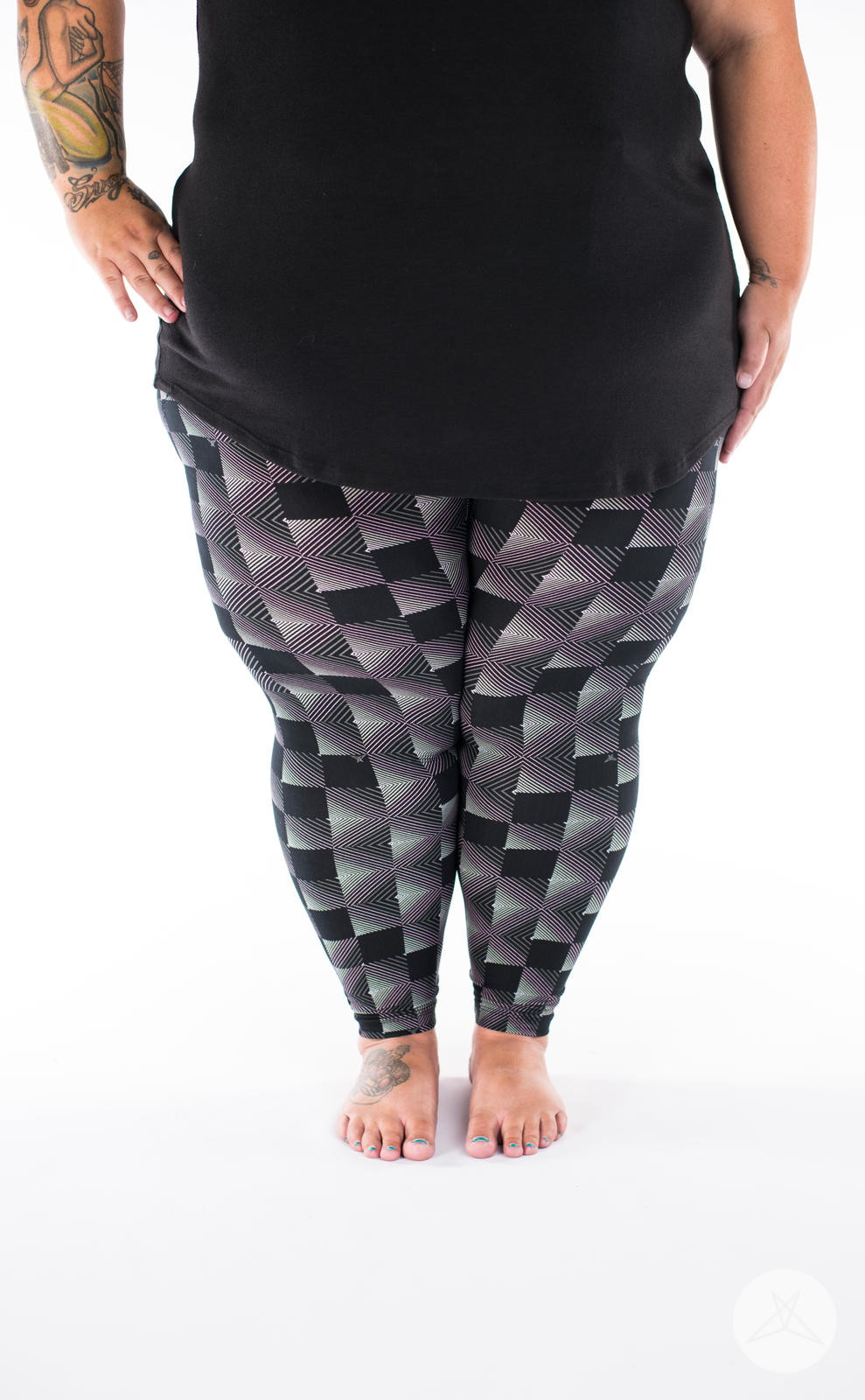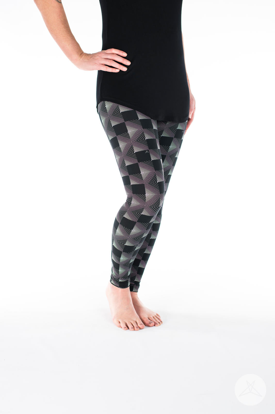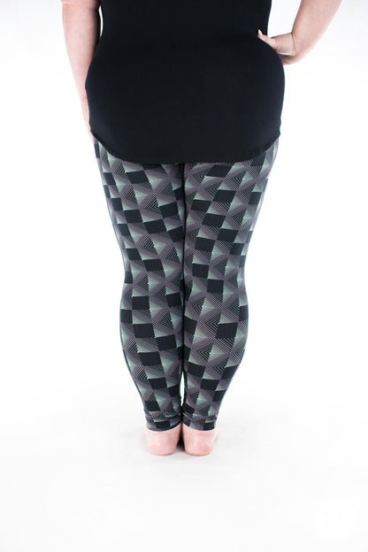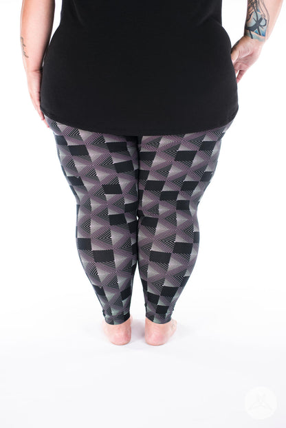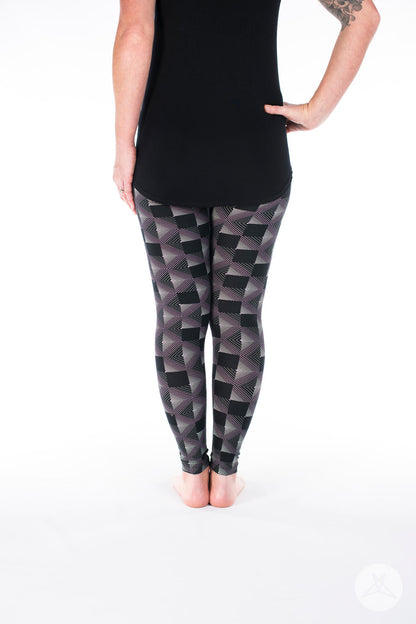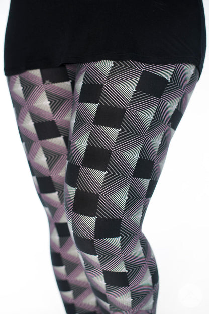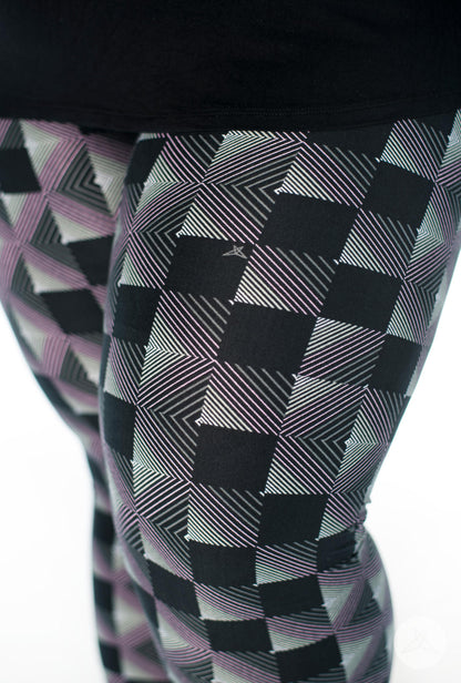 This stunning geometric print features abstract dark black tiles accented with light pinks and shades of grey, giving this print a multi-dimensional vibe.