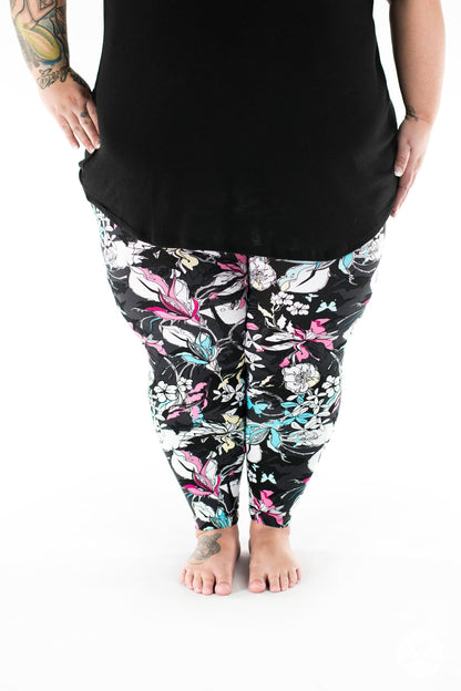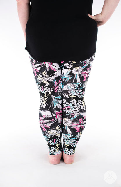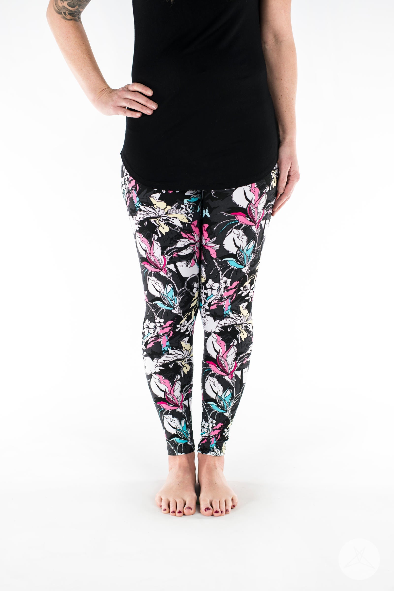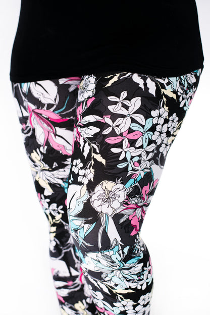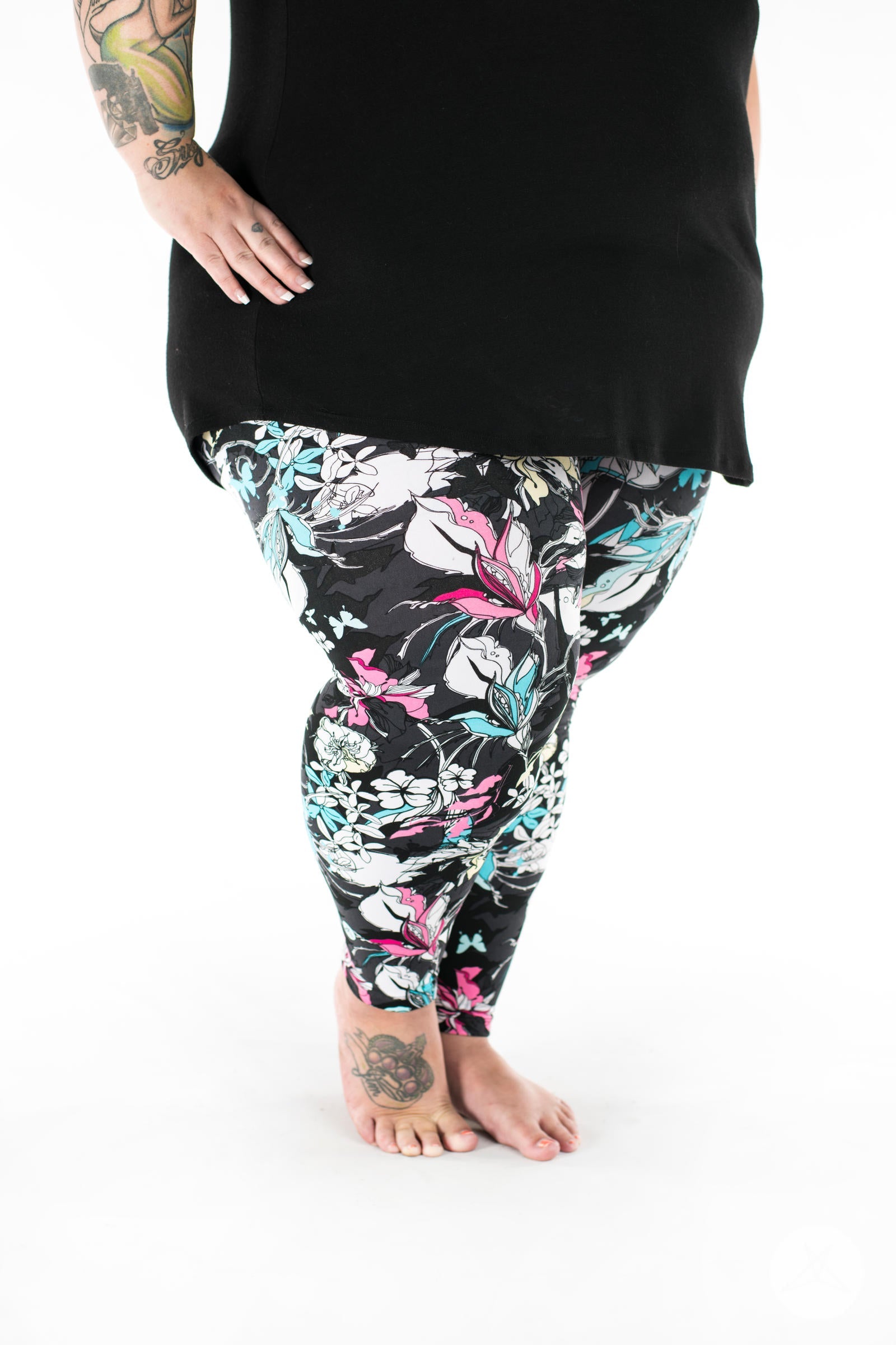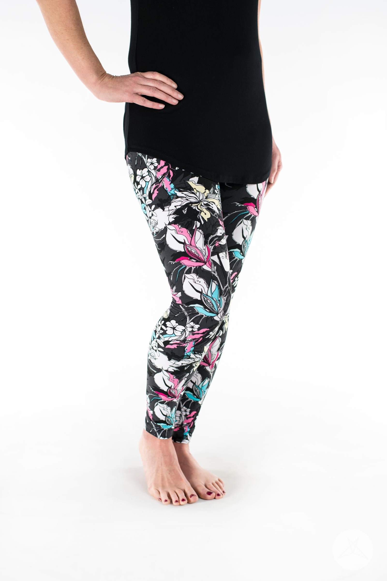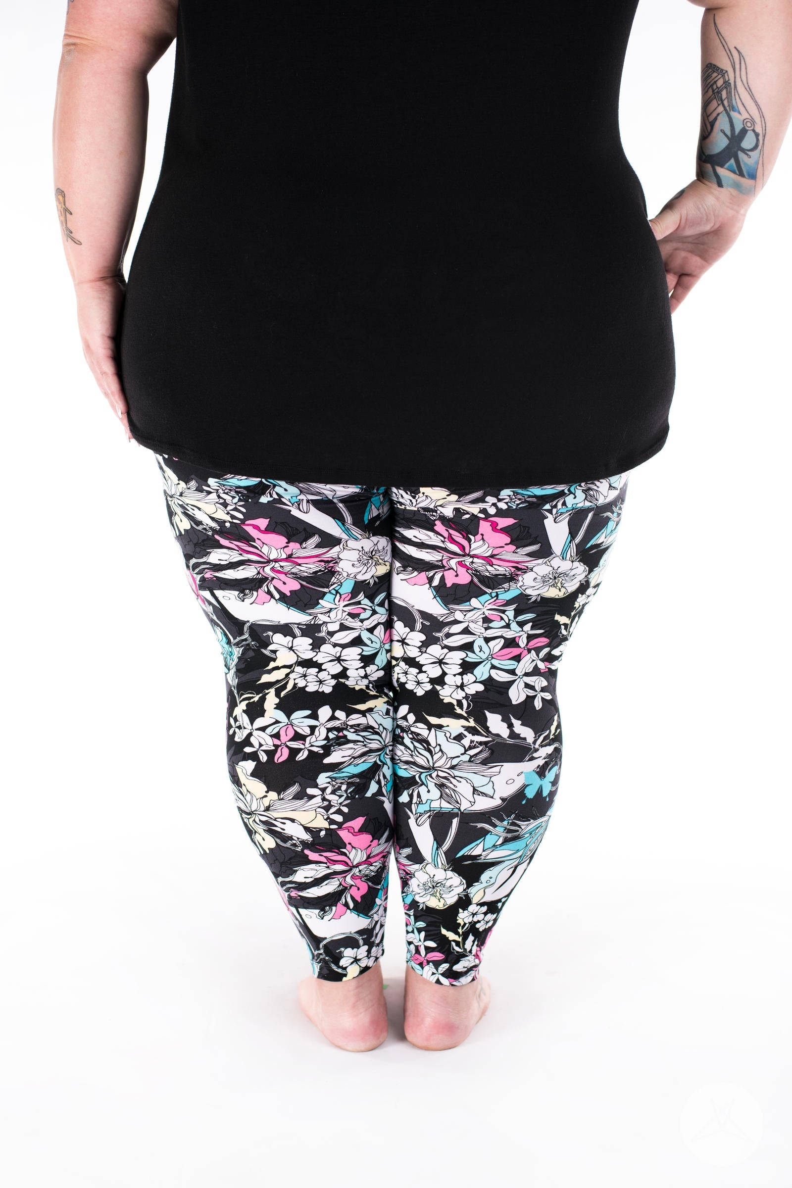 SweetLegs is proud to welcome Fleur Real SweetLegs, a gorgeous addition to our 2019 leggings collection! This stunning garden scene features flowers and butterflies in tones of white, pink, buttercup yellow and blue with accents of charcoal on a black background.