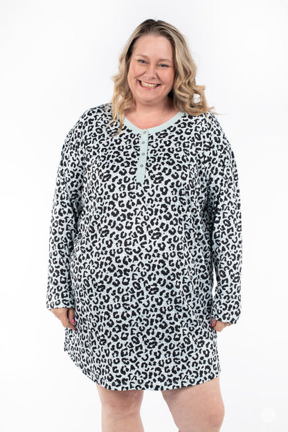 Reposez-vous et rajeunissez-vous avec style avec notre chemise de nuit Henley. Fabriqué dans un tissu jersey lisse et léger avec une touche d'extensibilité pour une coupe luxueuse et confortable. Conçu avec une longueur étendue pour une couverture spacieuse et confortable pour ajouter une touche d'élégance à votre routine nocturne.