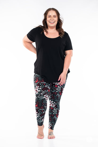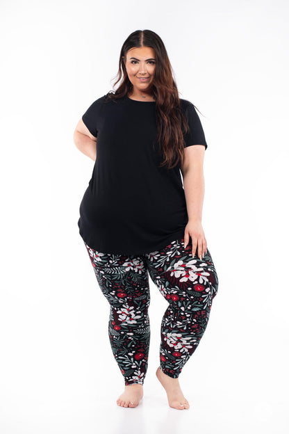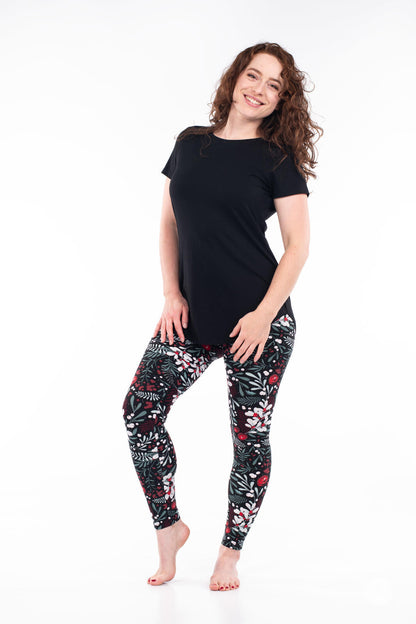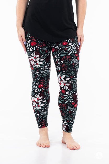 Entrez dans la saison avec Holly Happiness. Ces leggings sont ornés de houx vibrants et d'autres fleurs et verdure hivernales, capturant l'essence de la joie des fêtes. Parfait pour les rassemblements festifs ou les soirées douillettes, Holly Happiness offre confort et style dans un ensemble joyeux.