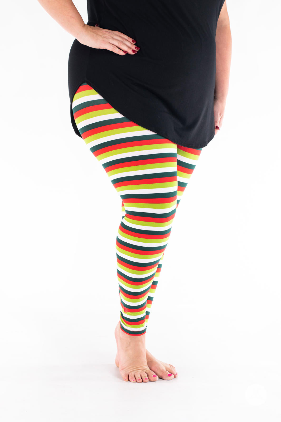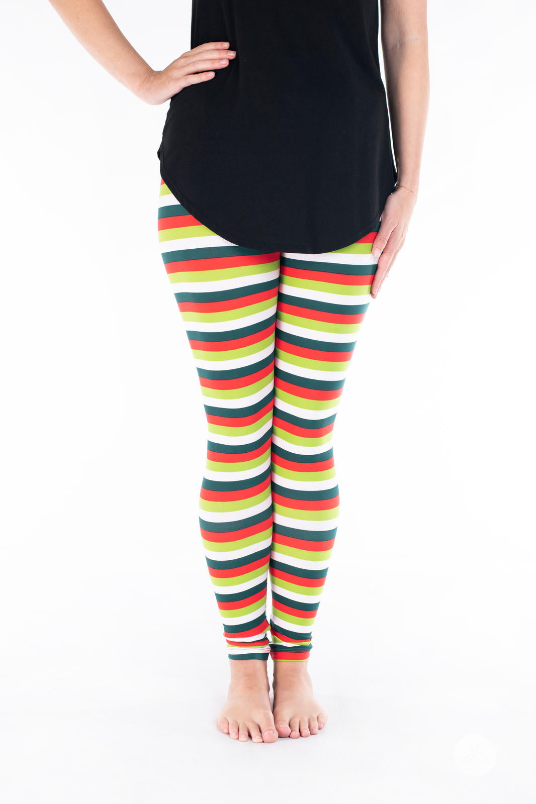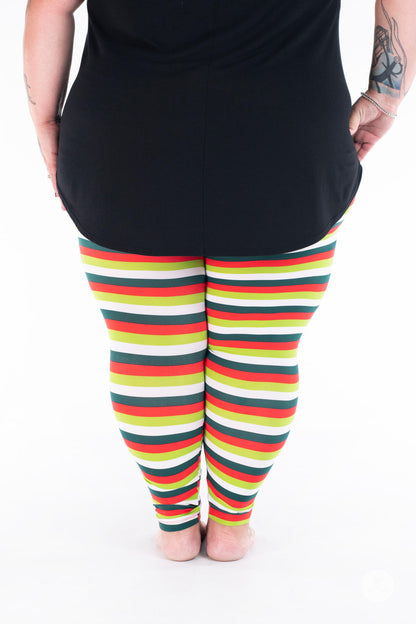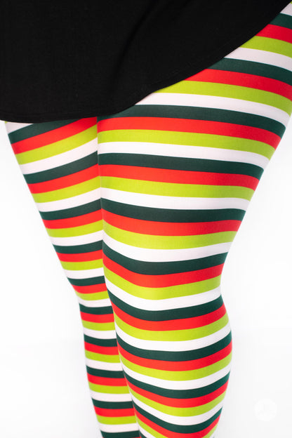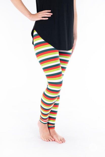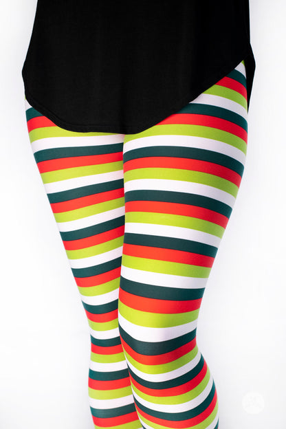 La combinaison de rayures horizontales rouges, blanches, vert foncé et vert citron fait de cet imprimé un incontournable pour la période des fêtes pour tous les âges !