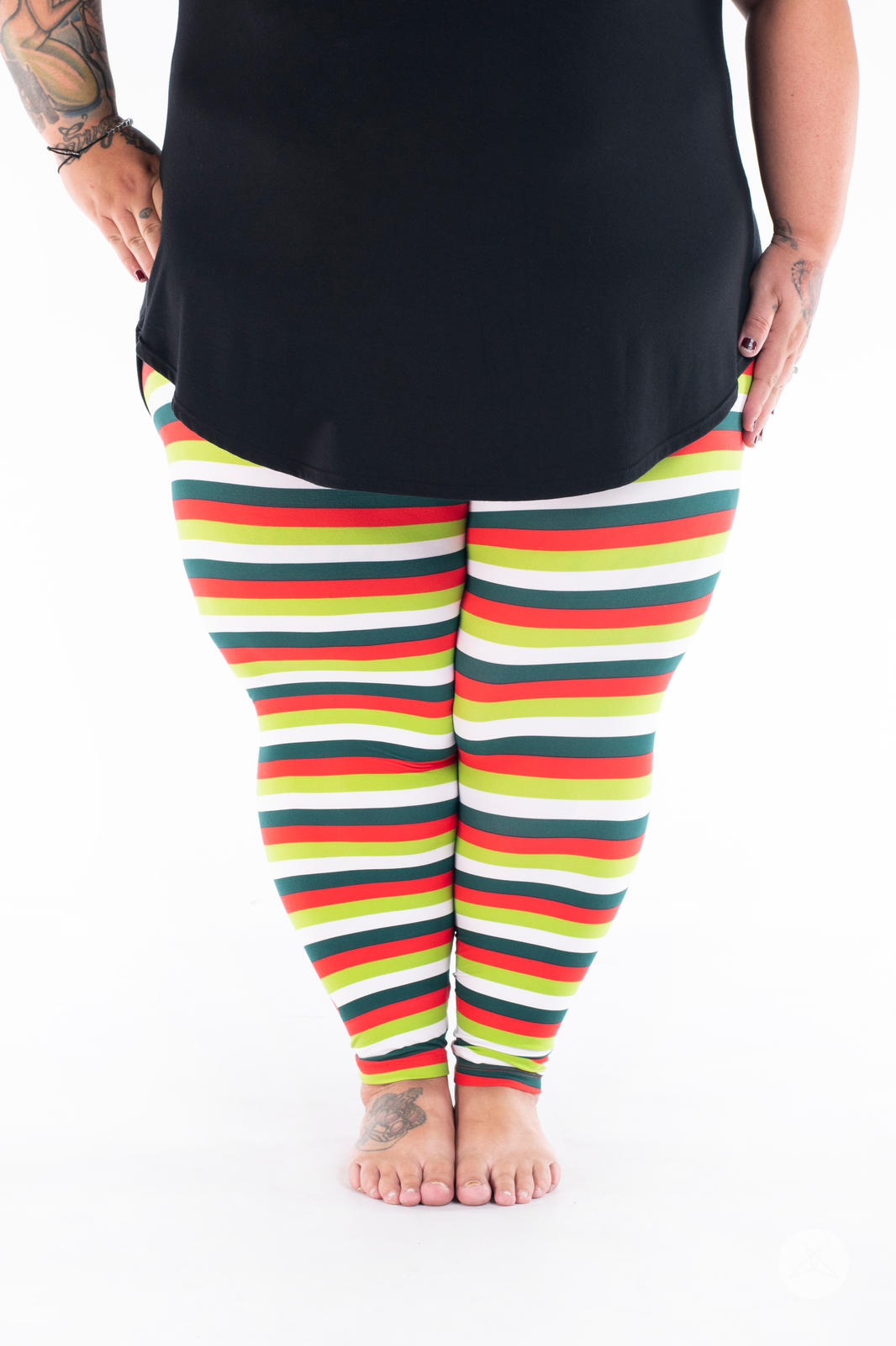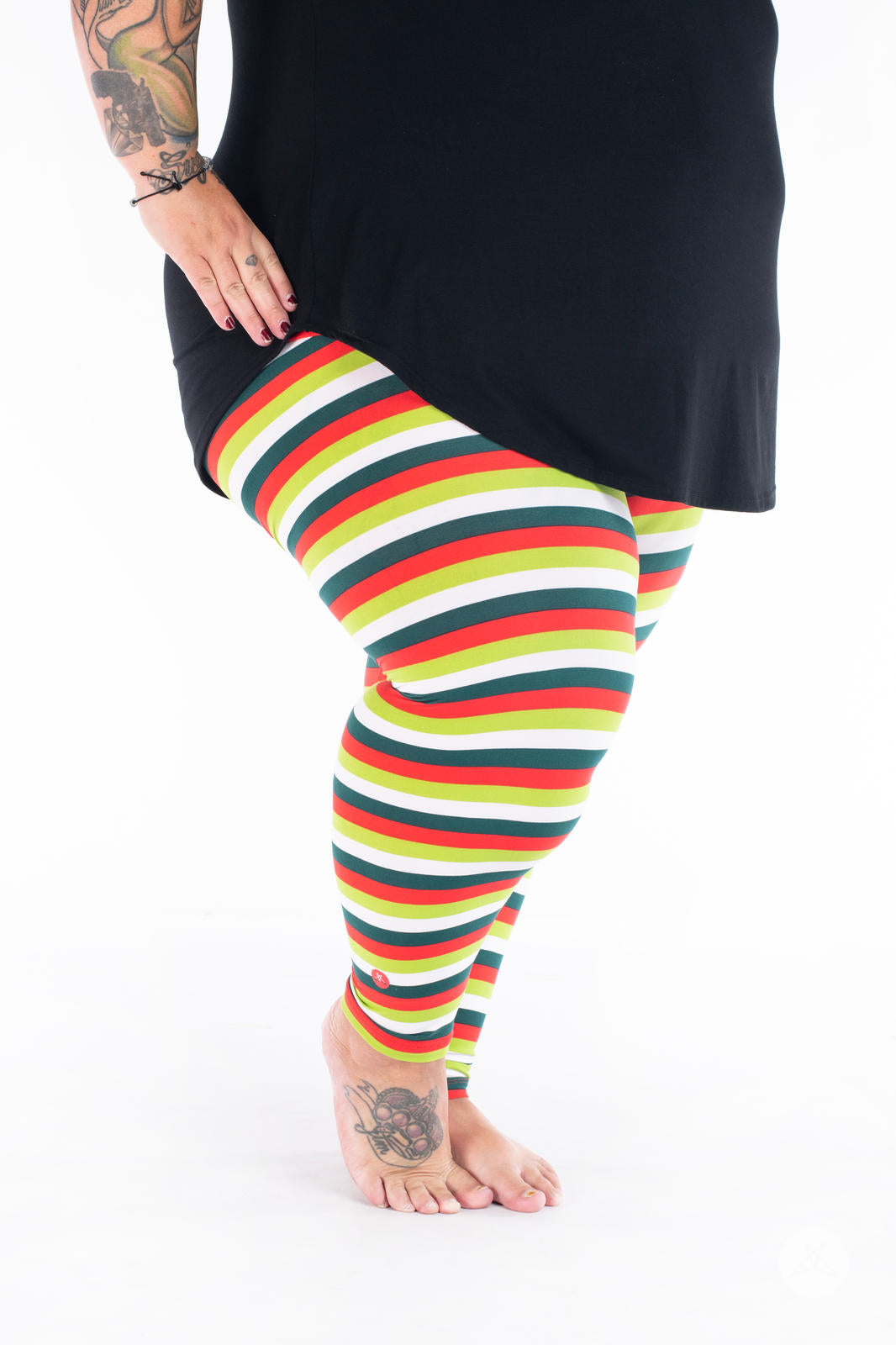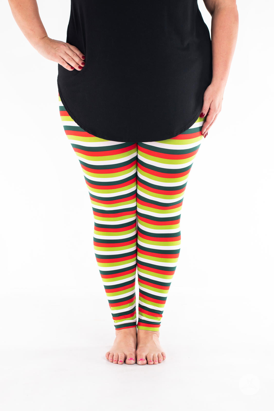 La combinaison de rayures horizontales rouges, blanches, vert foncé et vert citron fait de cet imprimé un incontournable pour la période des fêtes pour tous les âges !