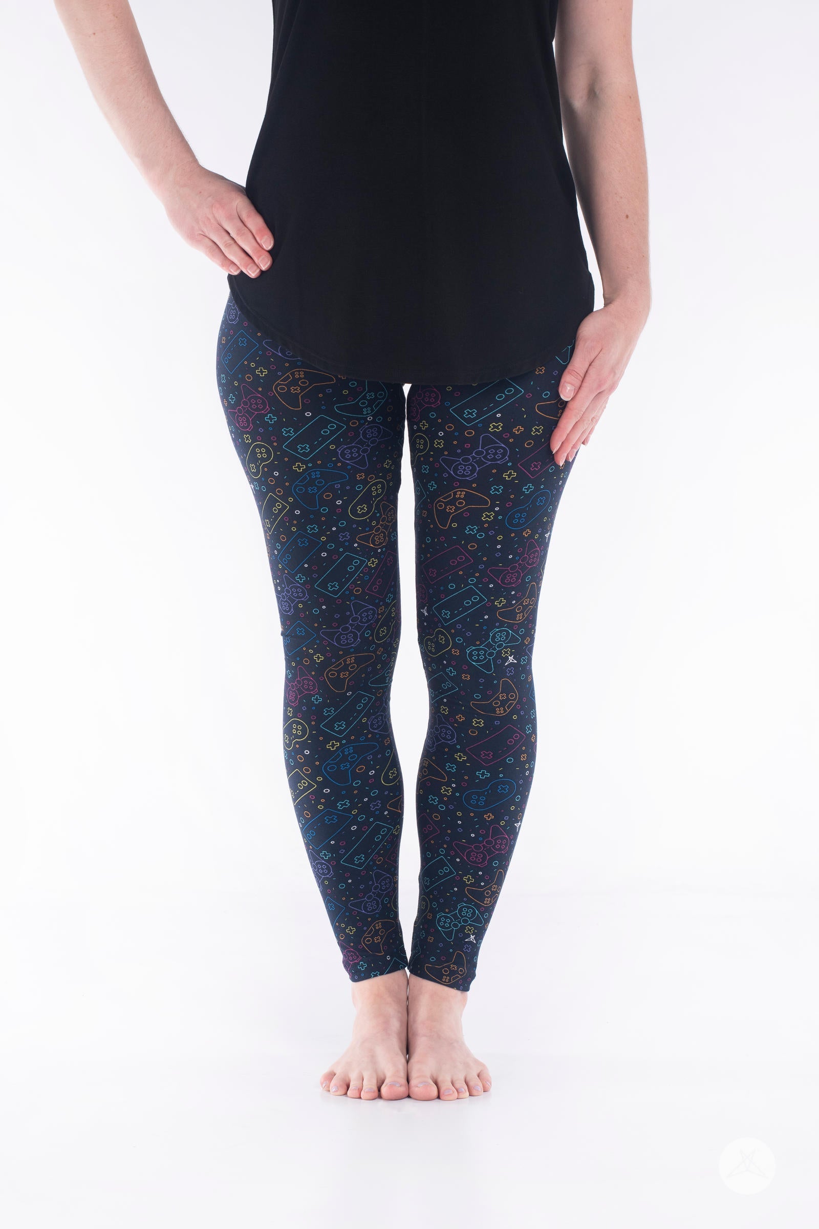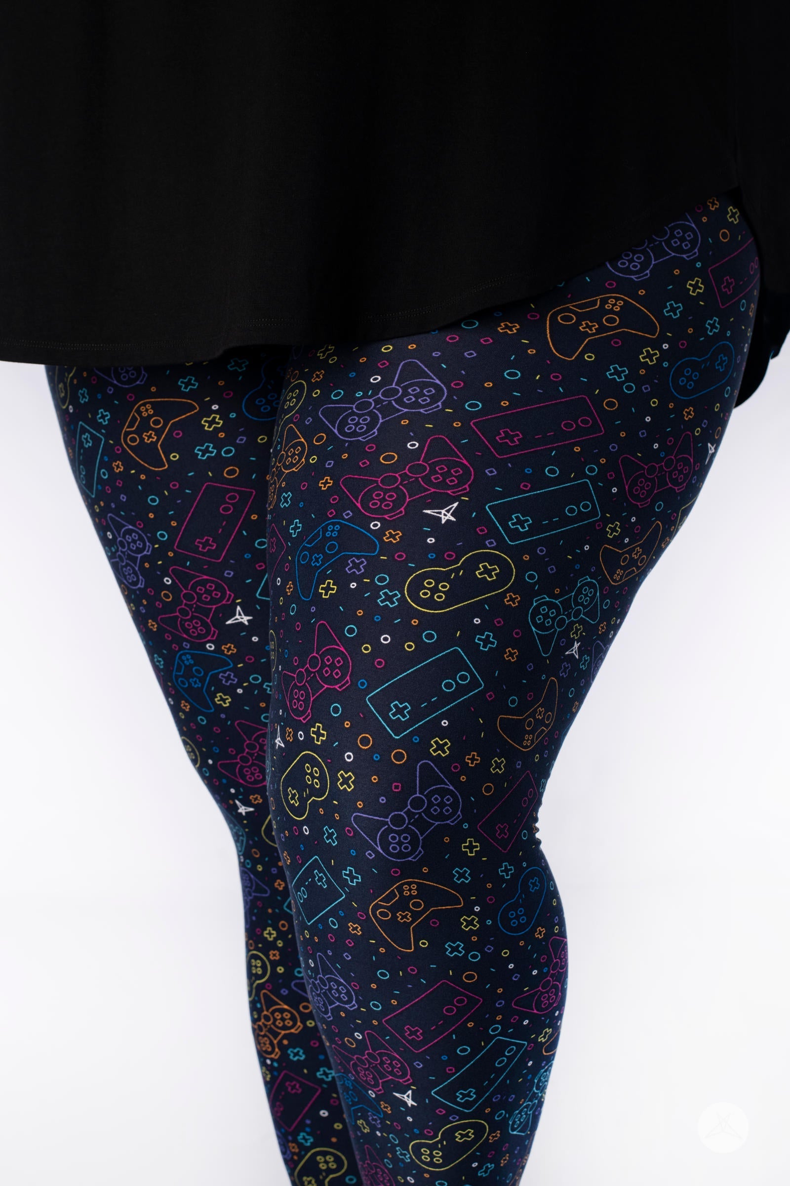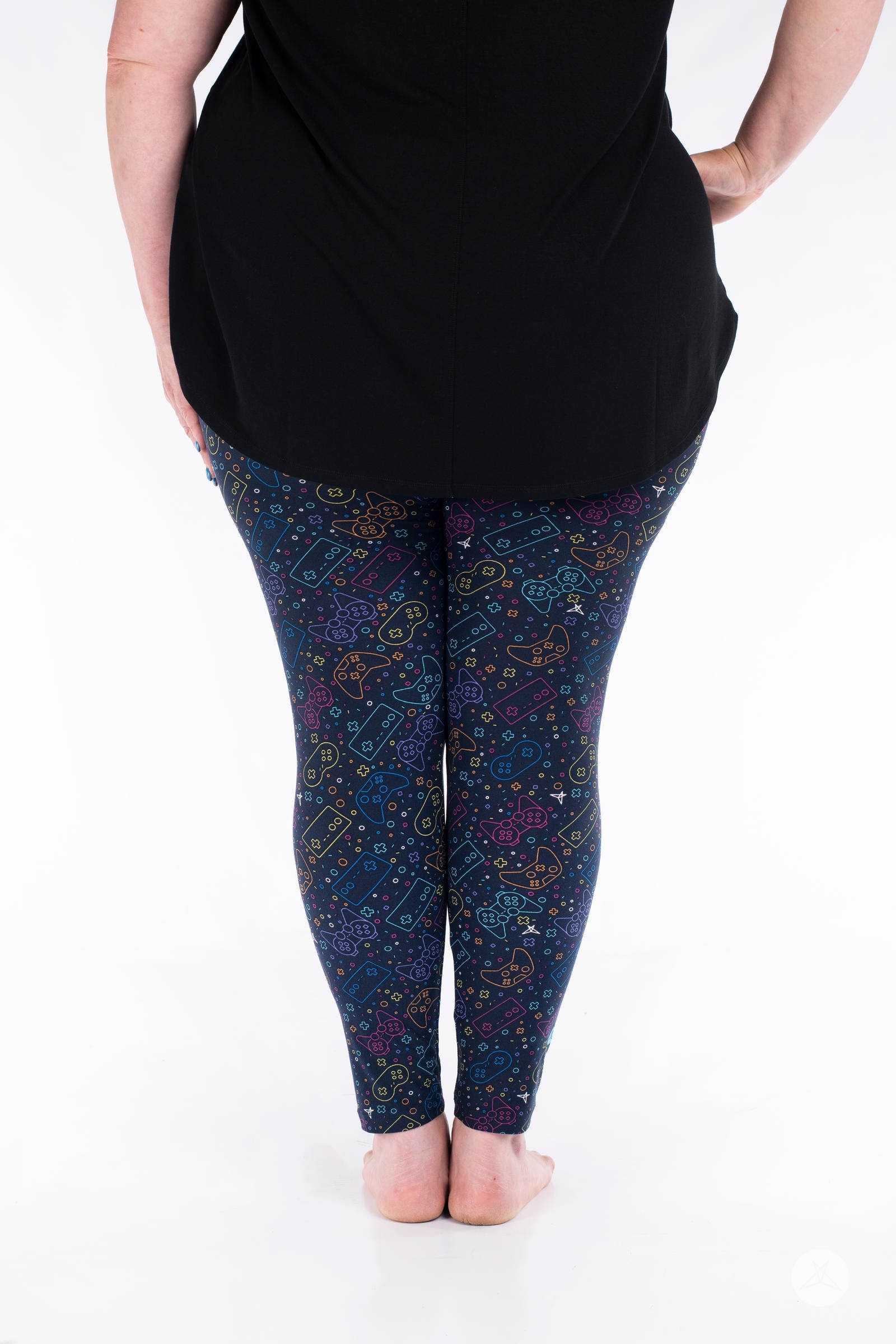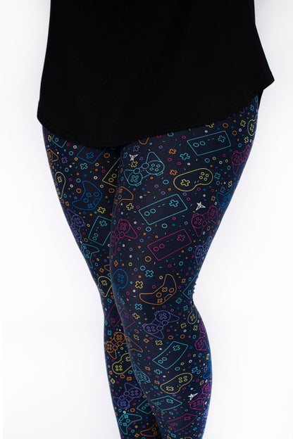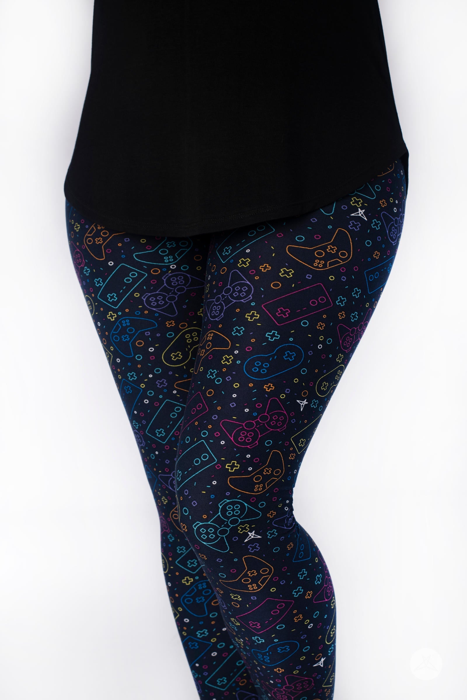 Level Up SweetLegs propose une gamme de contrôleurs de jeu old school sur un fond bleu marine profond.