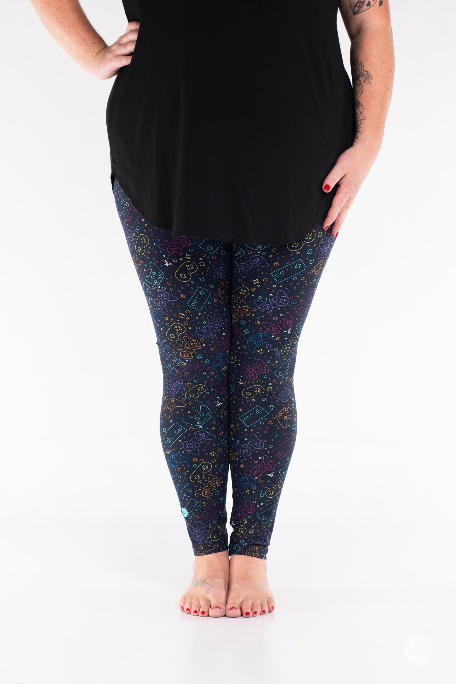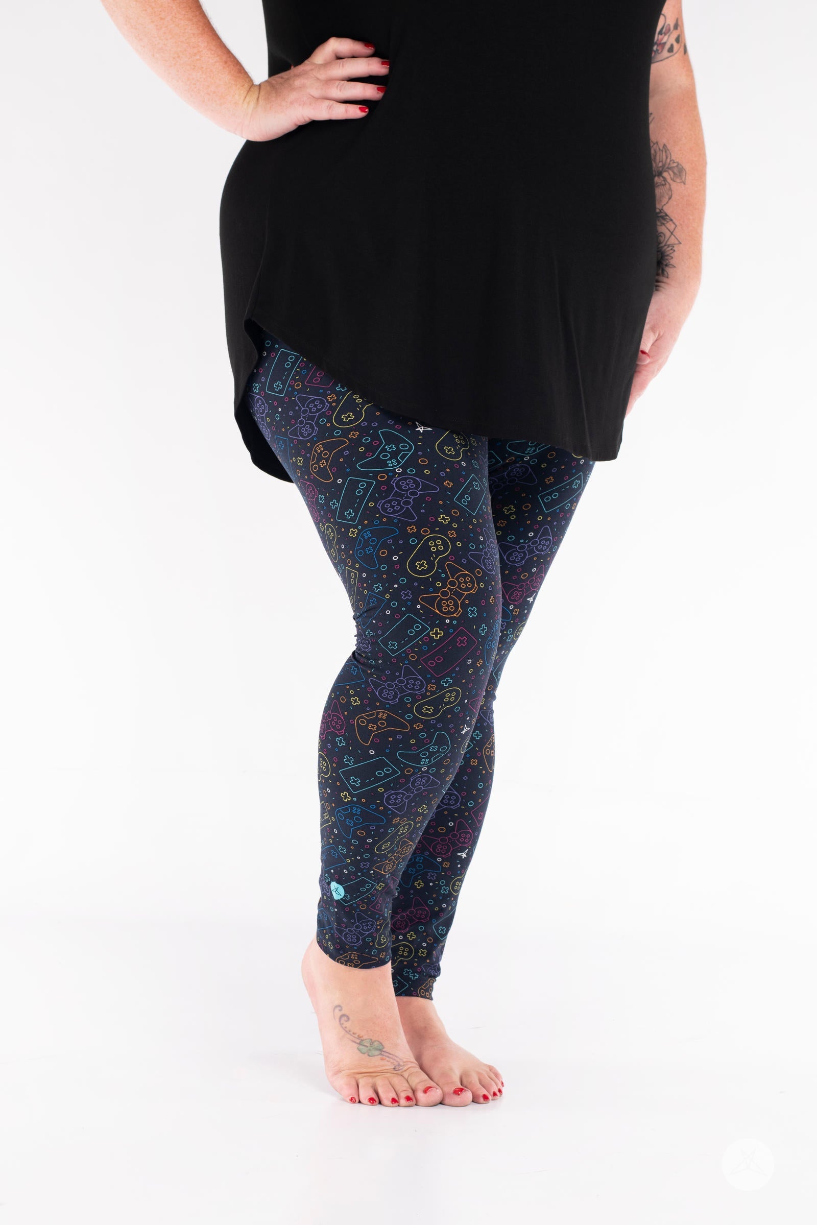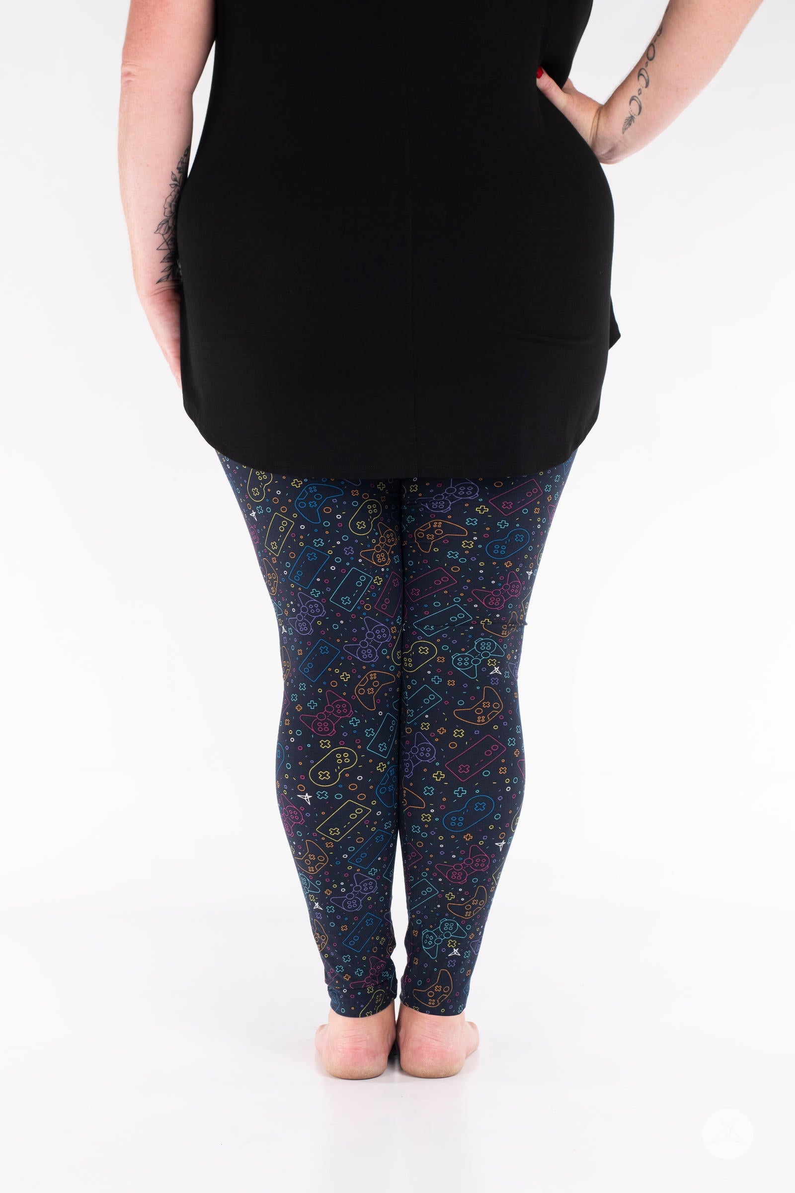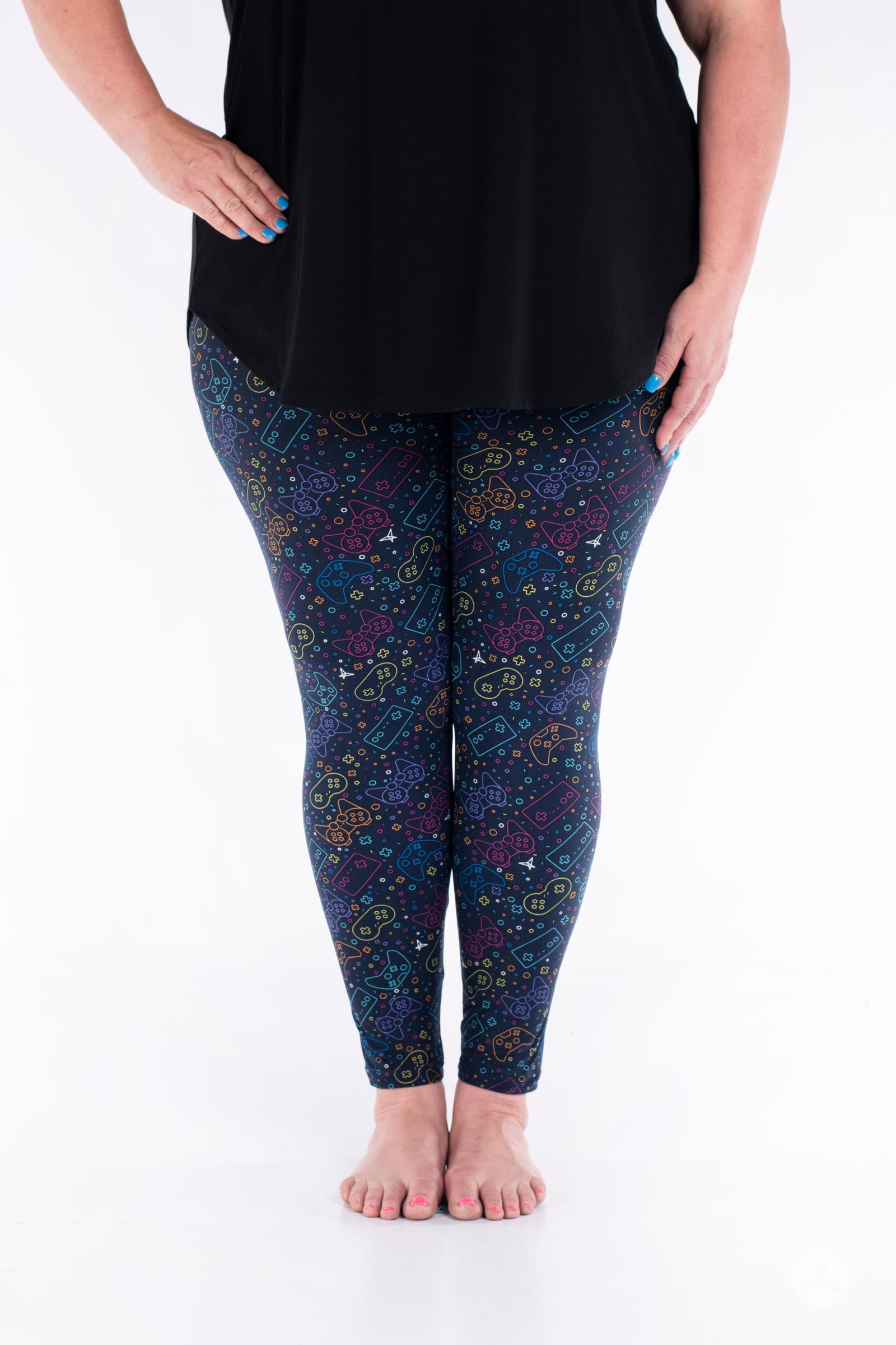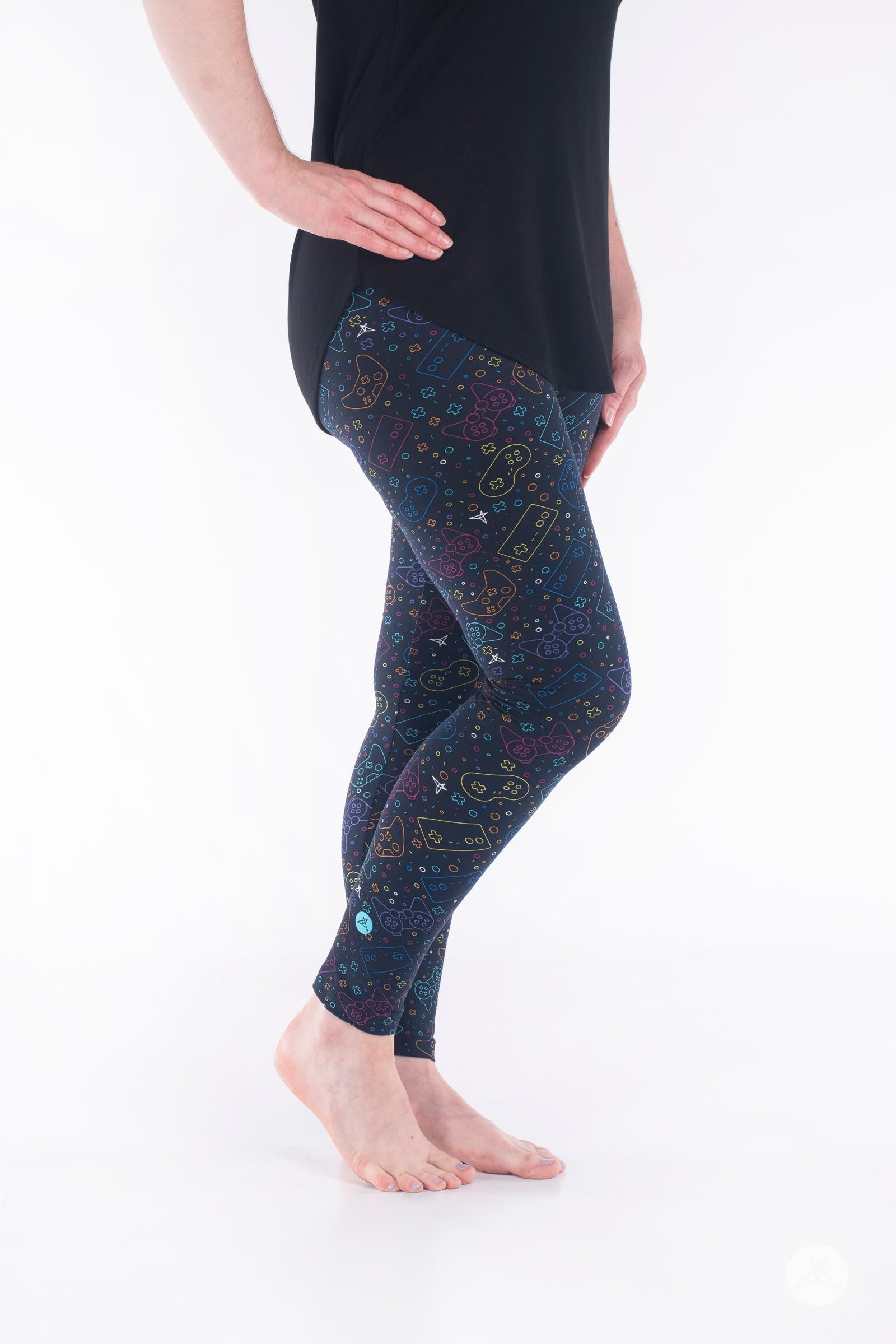 Level Up SweetLegs propose une gamme de contrôleurs de jeu old school sur un fond bleu marine profond.