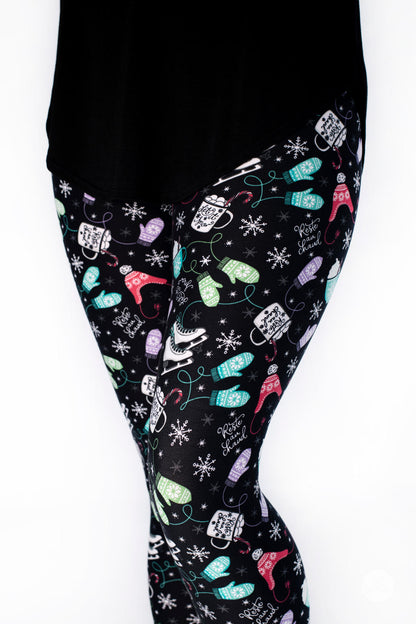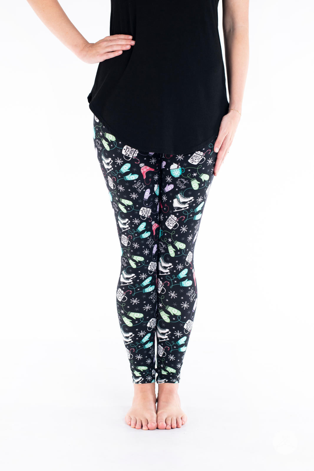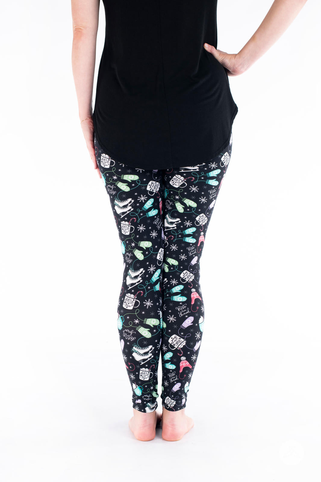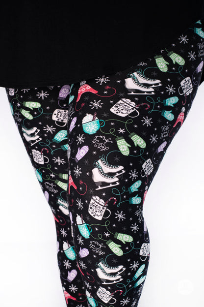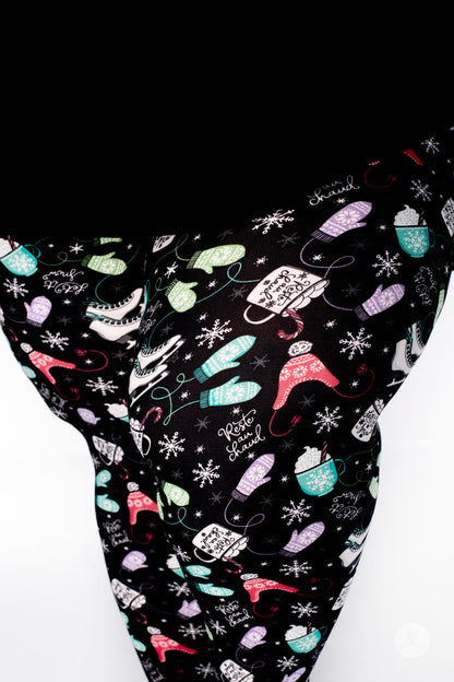 Ce délicieux imprimé hivernal présente tout ce que vous aimez de la saison froide avec des patins à glace, des tasses de cacao, des flocons de neige, des tuques et bien sûr des mitaines !