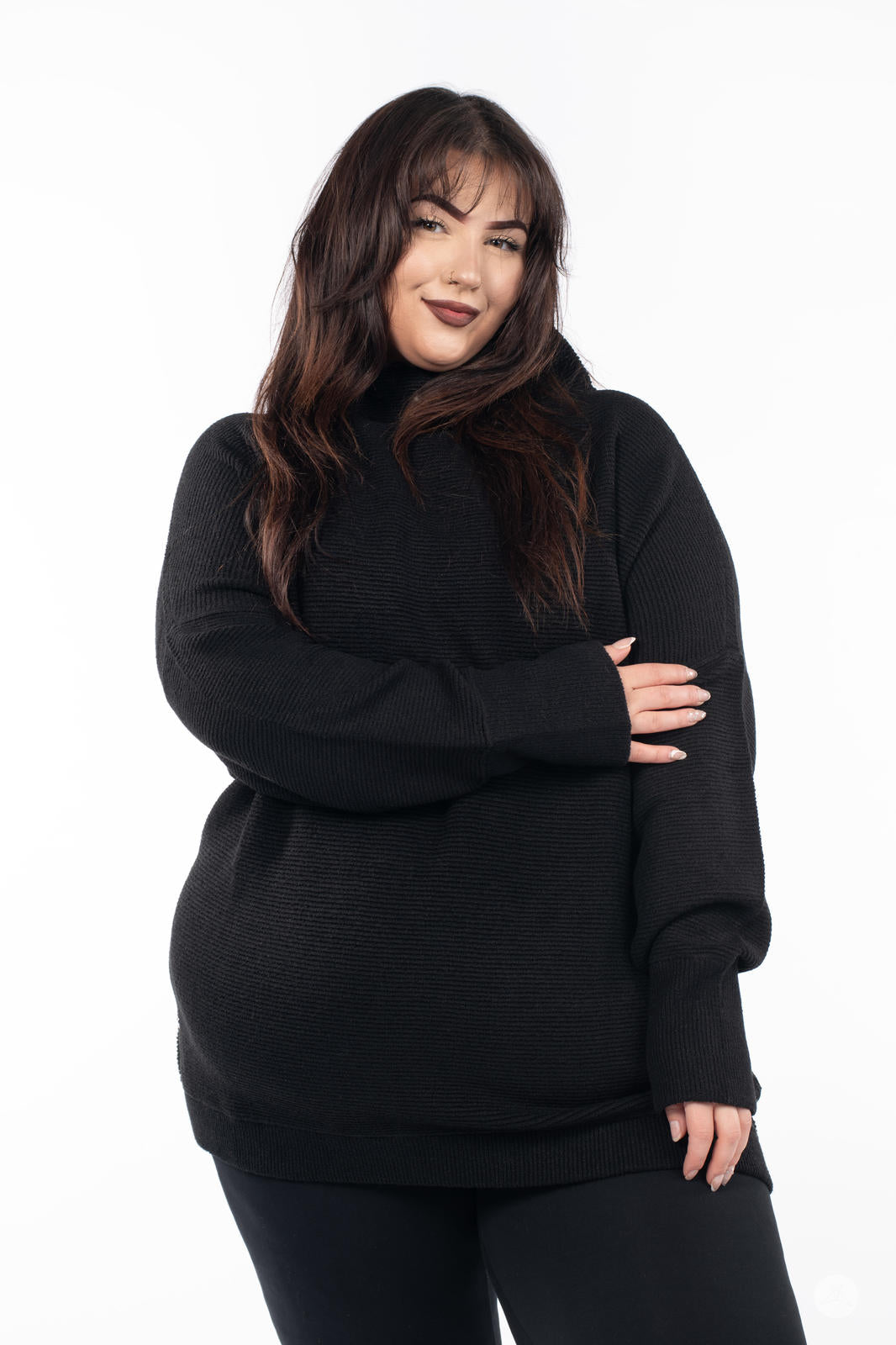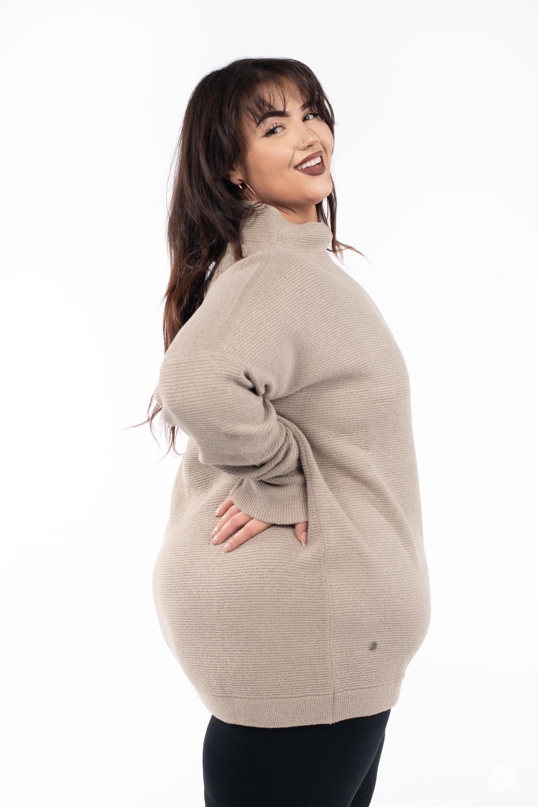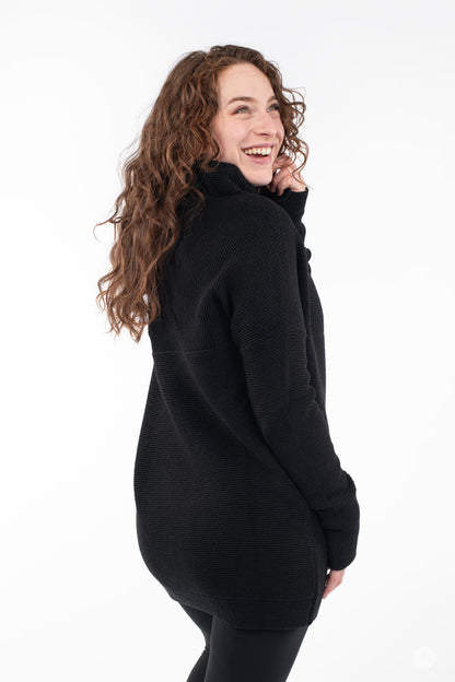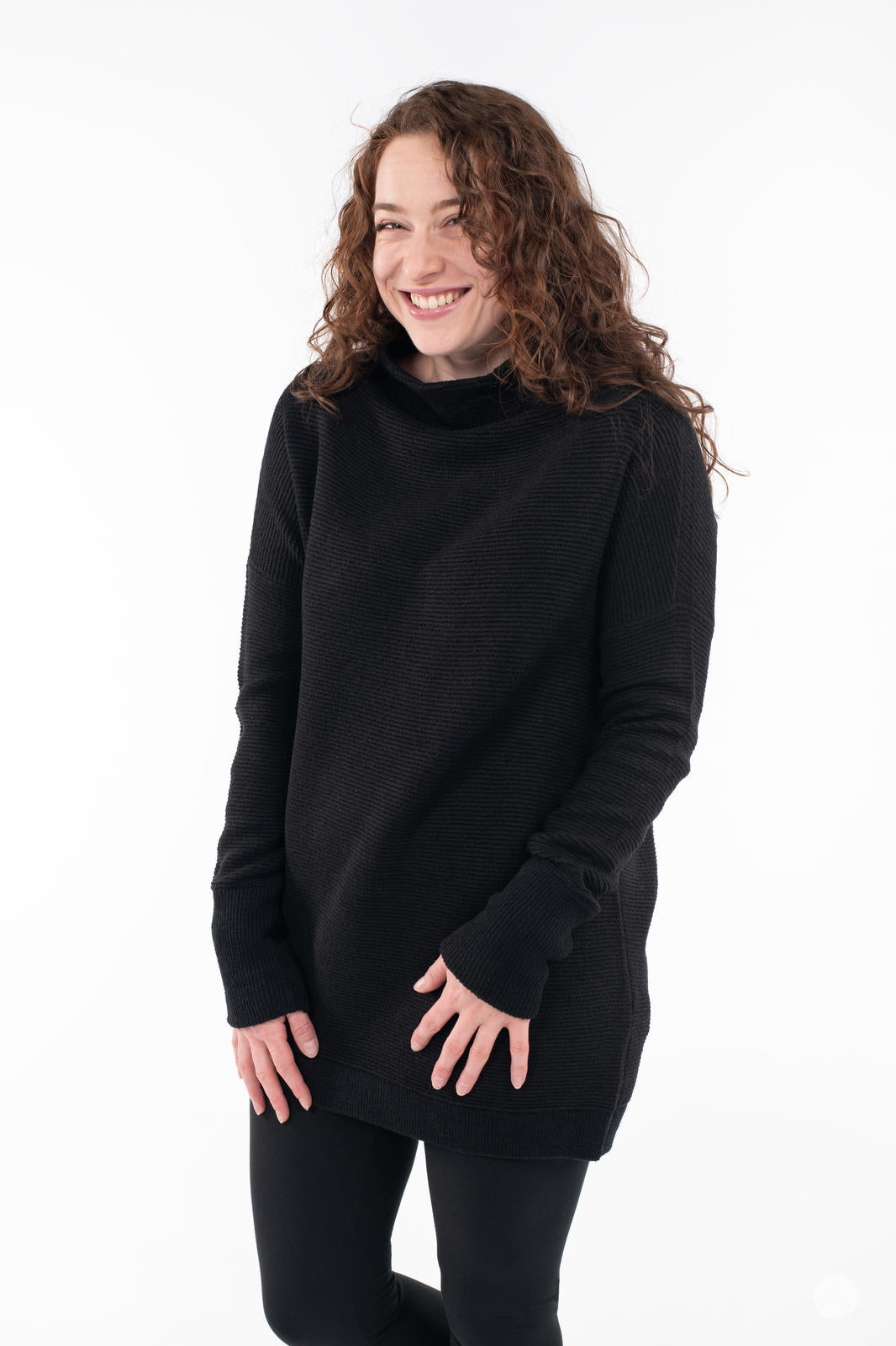 Embrace chilly days in luxurious comfort with the Ottoman Mock Neck Sweater. Crafted from a heavyweight, thicker fabric, this tunic offers warmth and a luxe finish that’s perfect for cold weather. Featuring directional ottoman ribbing and a relaxed fit, this long, cozy pullover pairs well with your favourite leggings or denim. Designed to flatter all body types, this is an essential layer in everyone’s wardrobe.